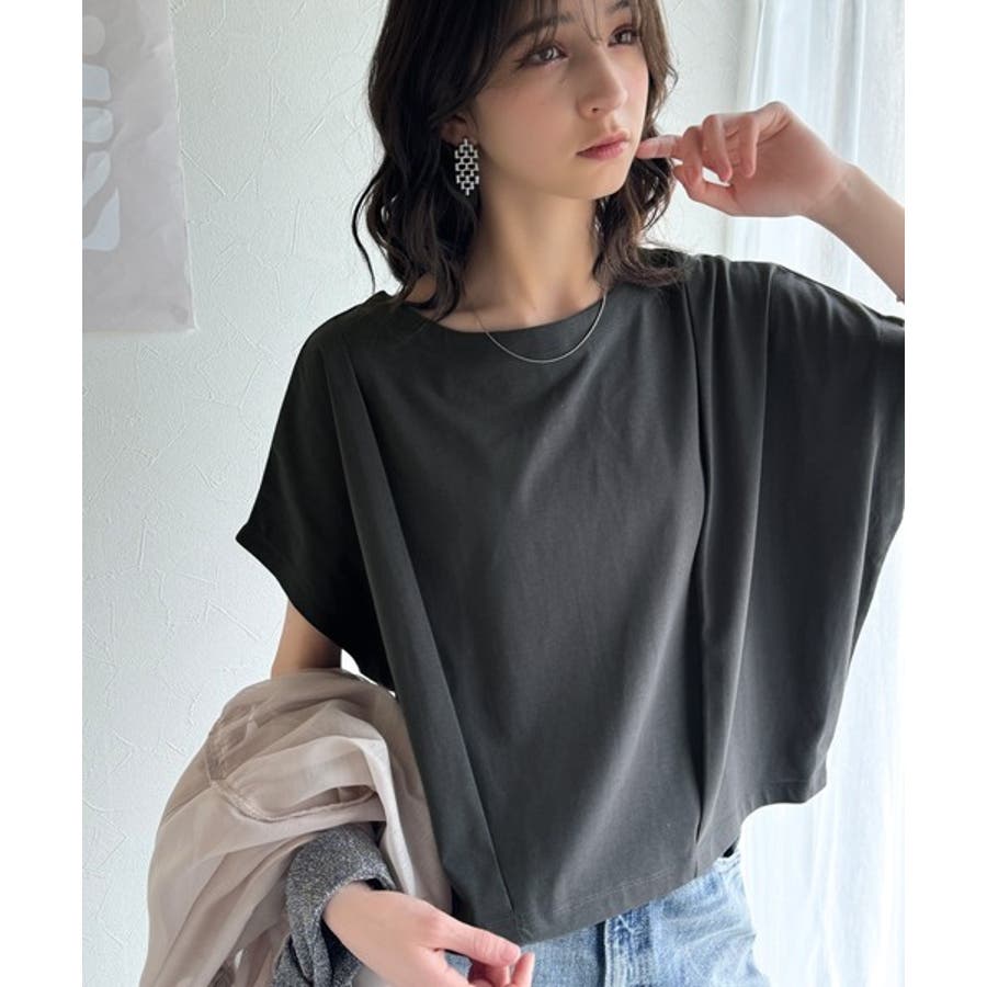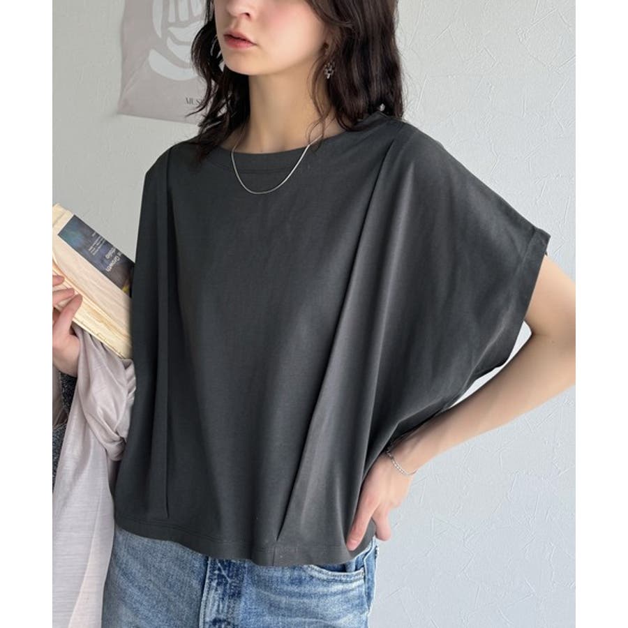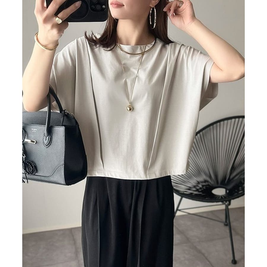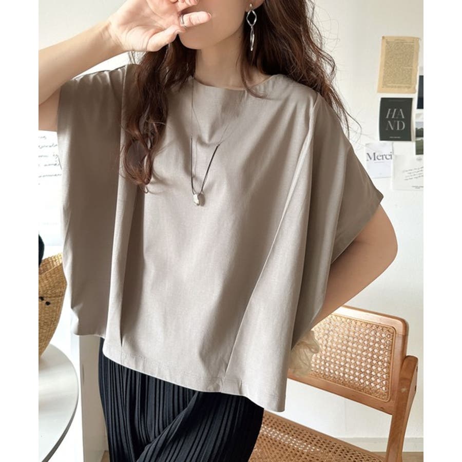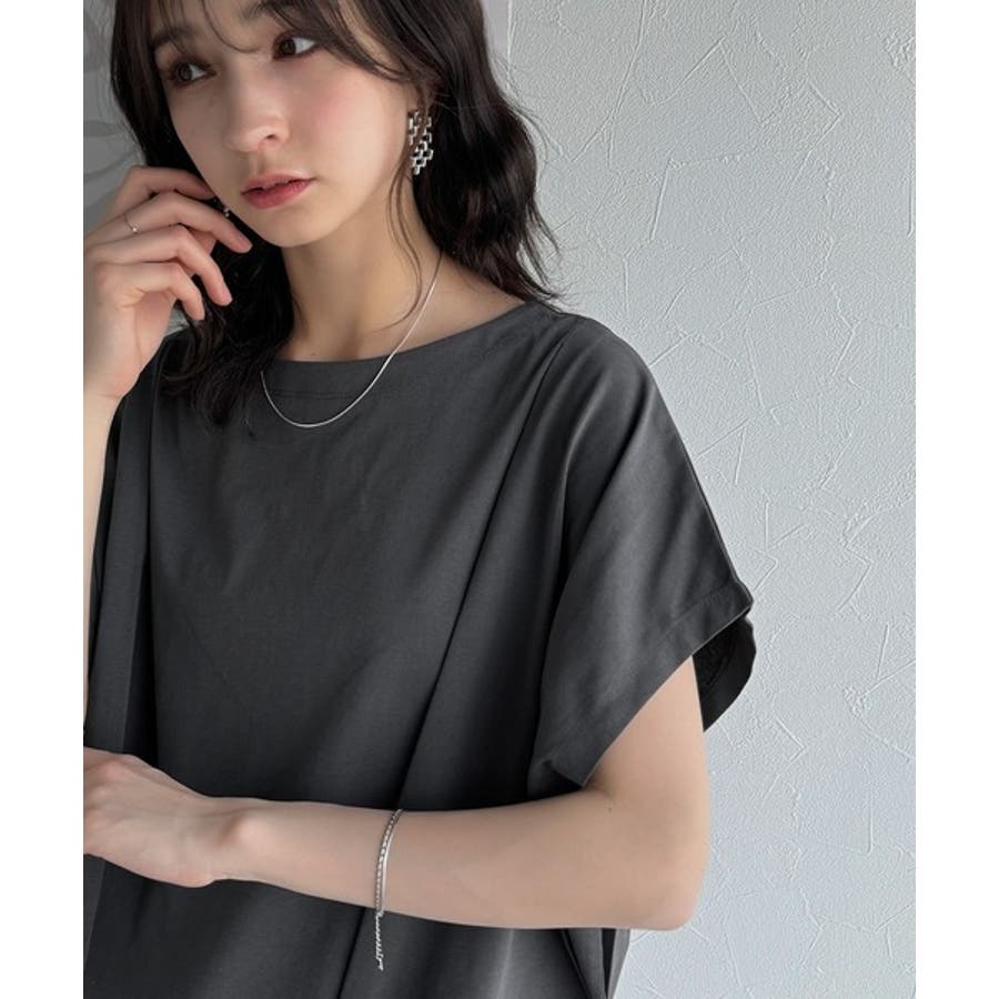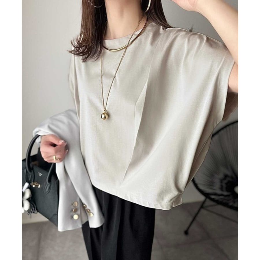 ひんやり素材で涼しく快適に。こなれタックデザインの半袖フレンチスリーブカットソー…