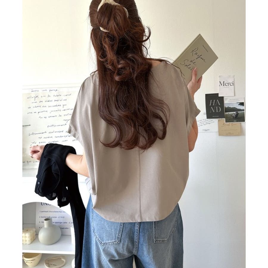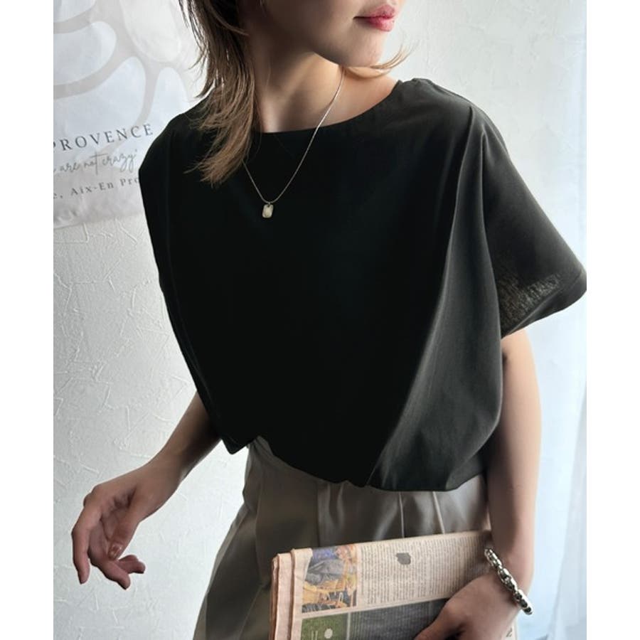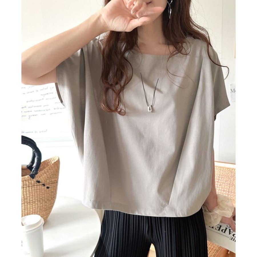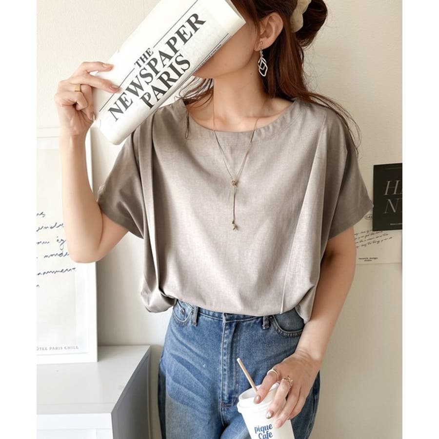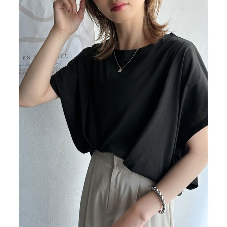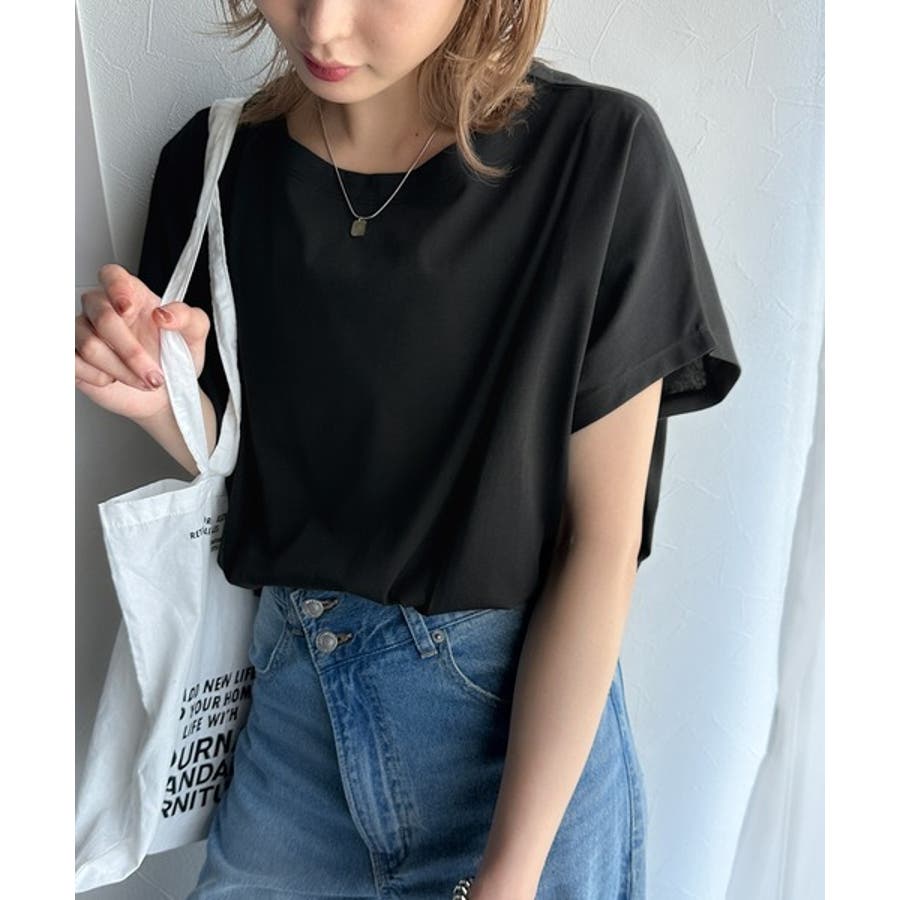 ひんやり素材で涼しく快適に。こなれタックデザインの半袖フレンチスリーブカットソー…