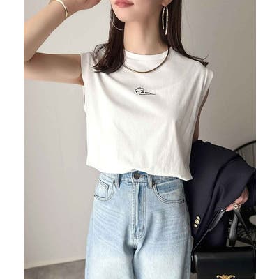 接触冷感♪大人カジュアルを格上げ!胸元ワンポイント刺繍ノースリーブトップ
