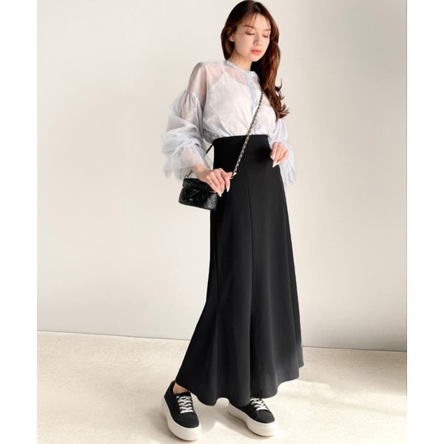 美ライン。カットジョーゼットハイウエストマーメイドロングスカート