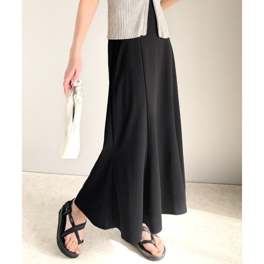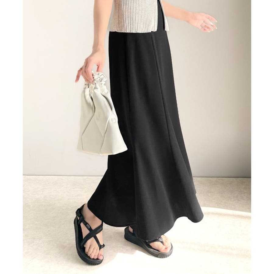 マキシ丈のデザインは足元を長く見せる効果があり、落ち感があることで