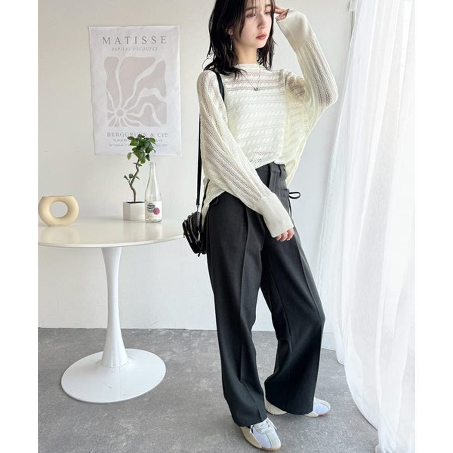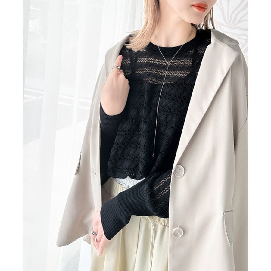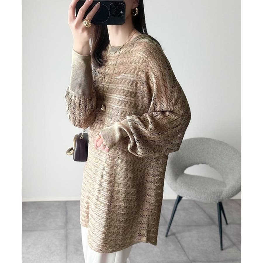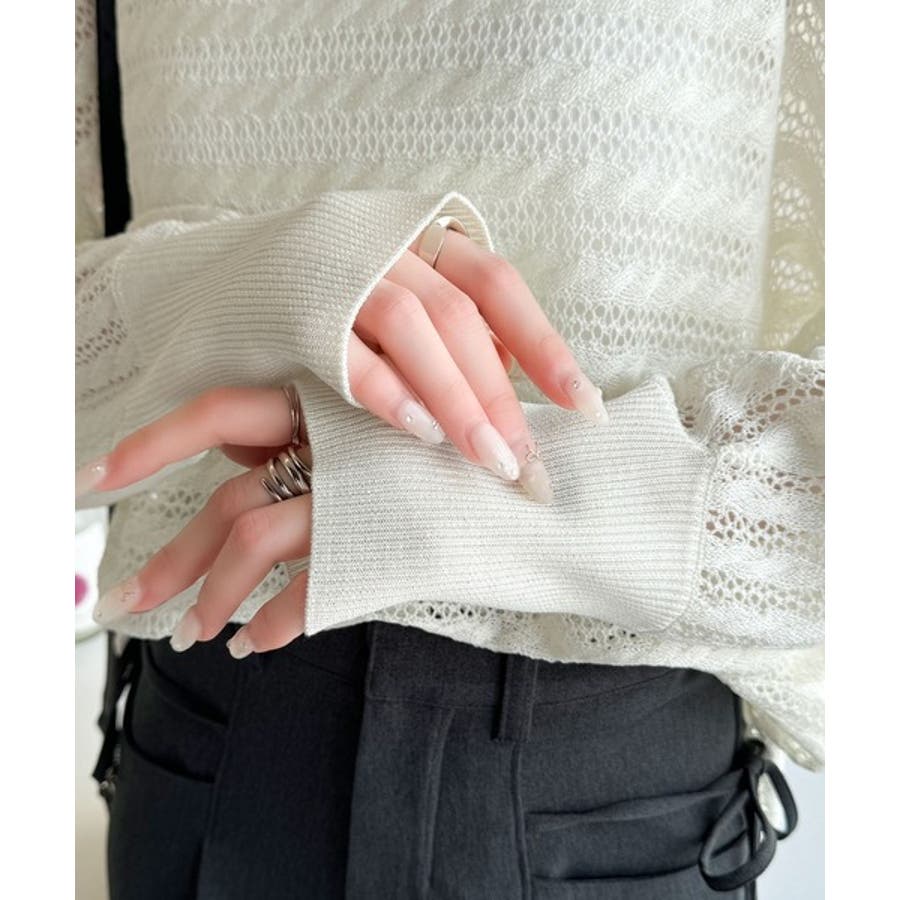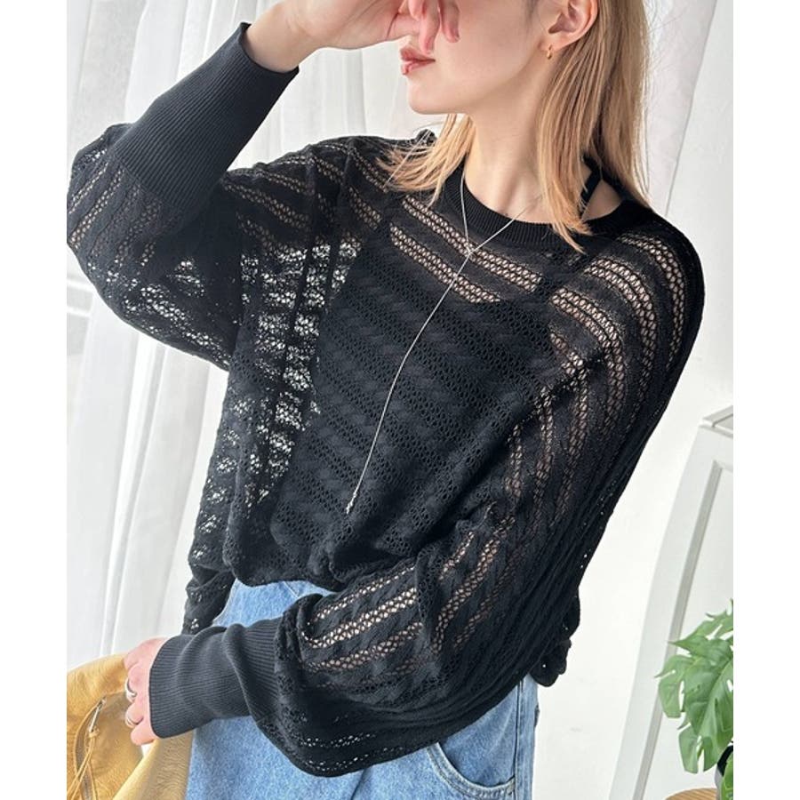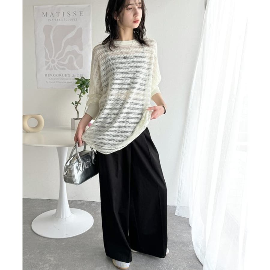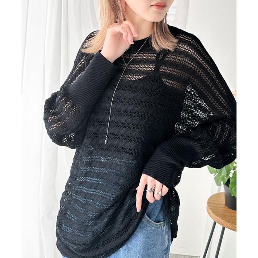 春夏シーズンにぴったりな透かし編み横使いケーブル柄ニットプルオーバー。