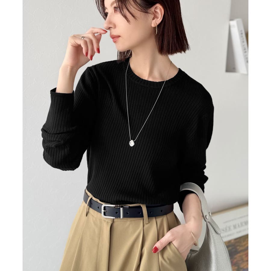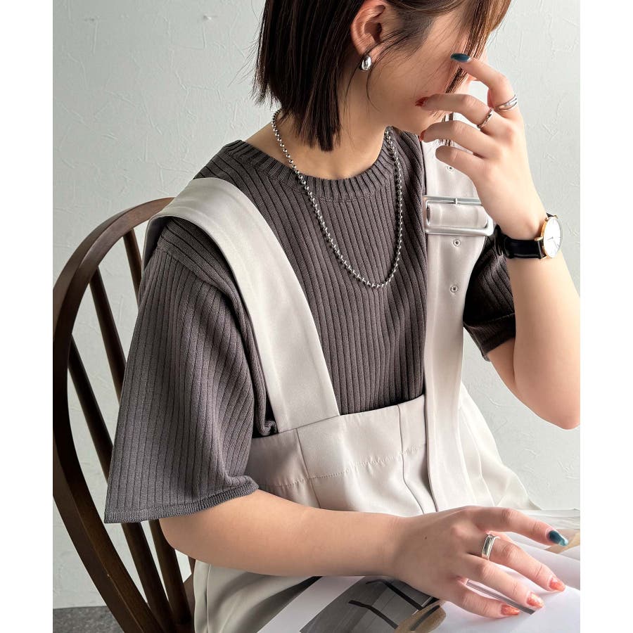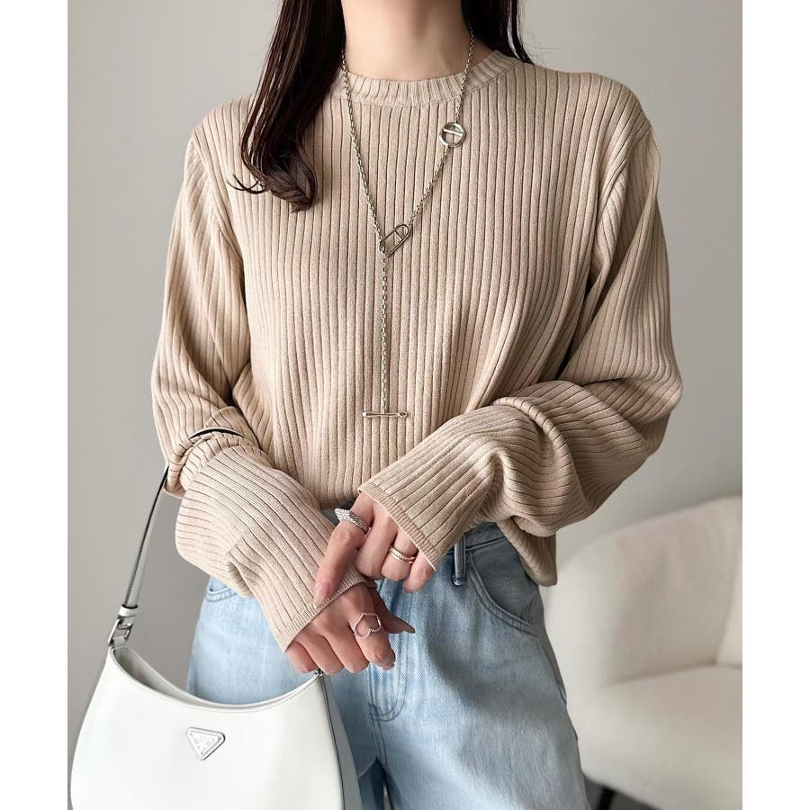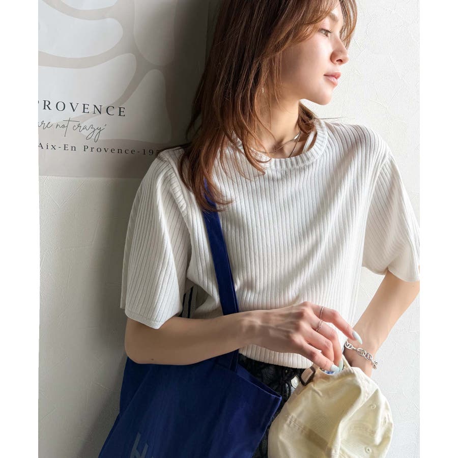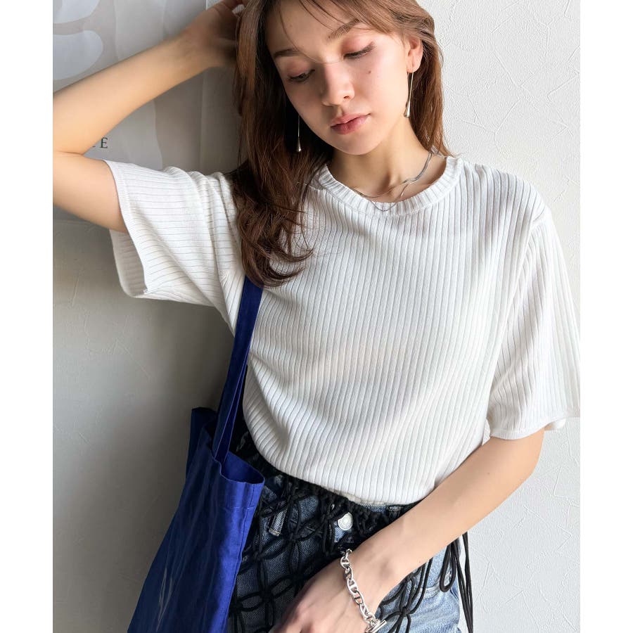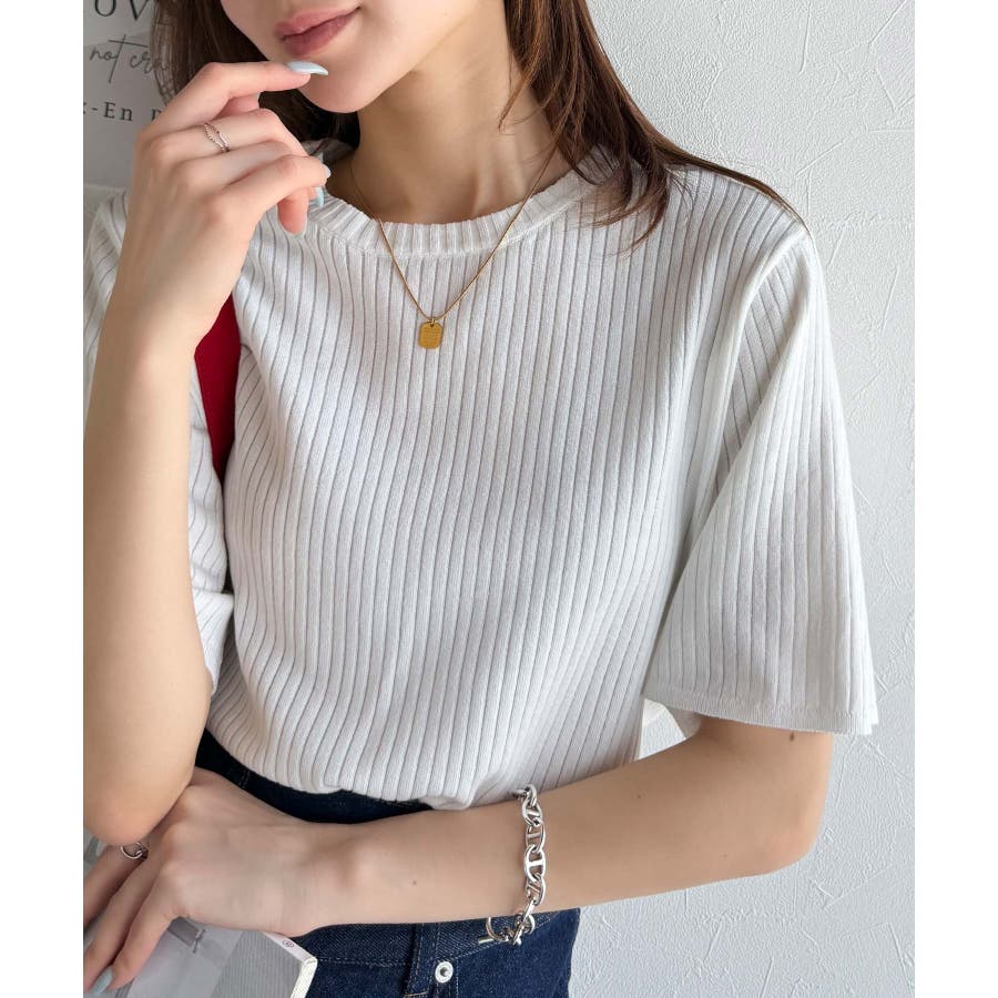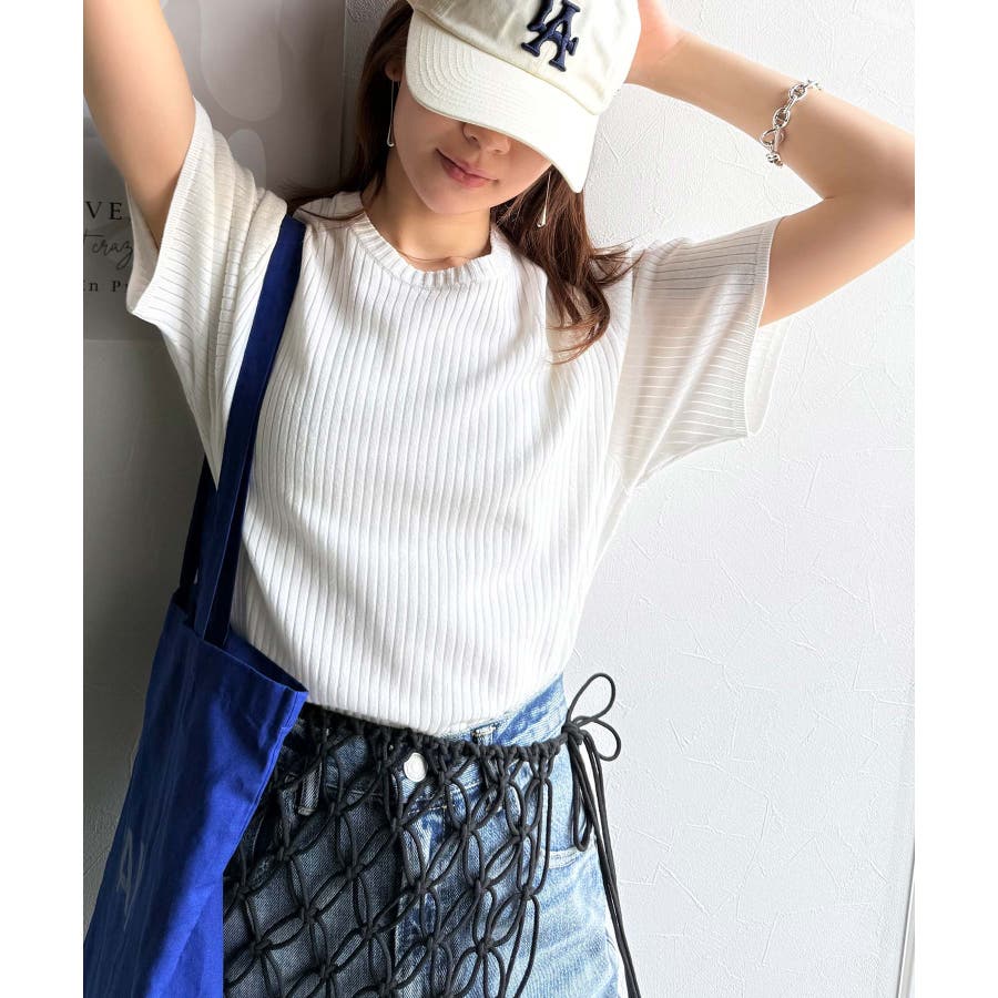 サラッと1枚で着られるサマーリブニット。
