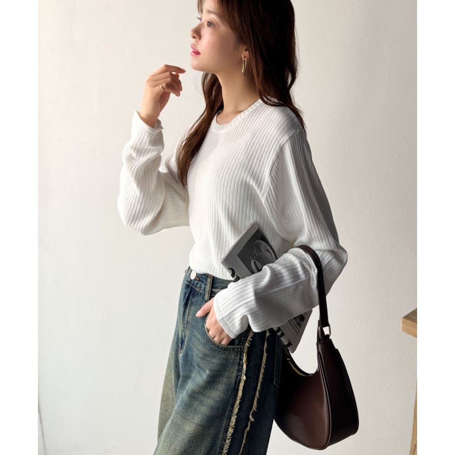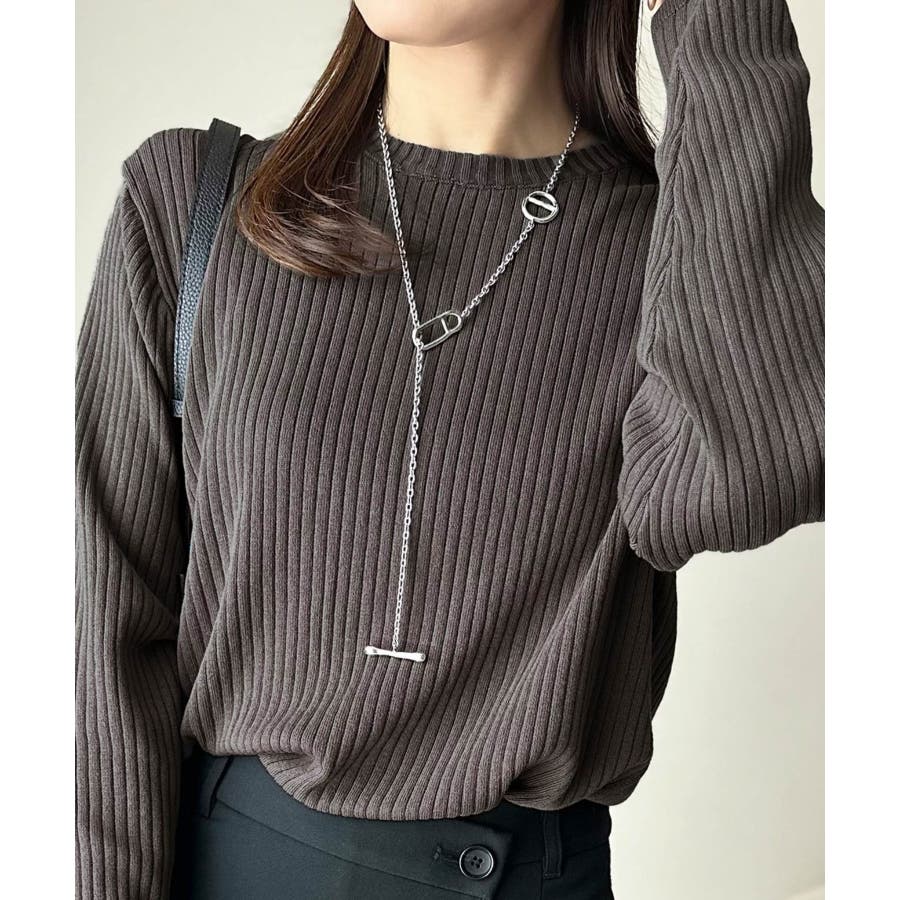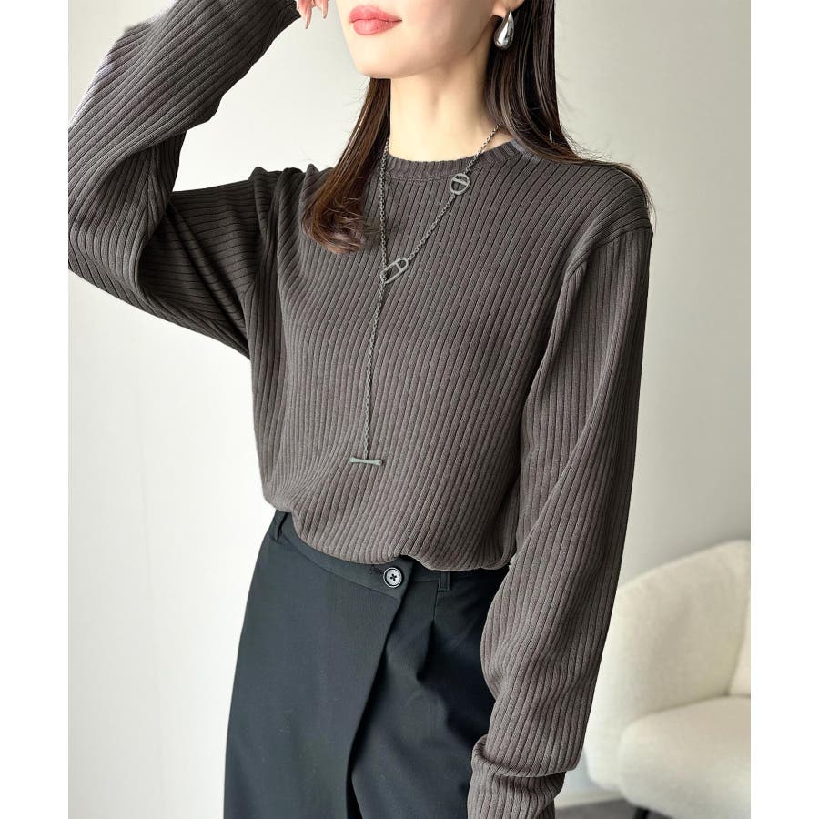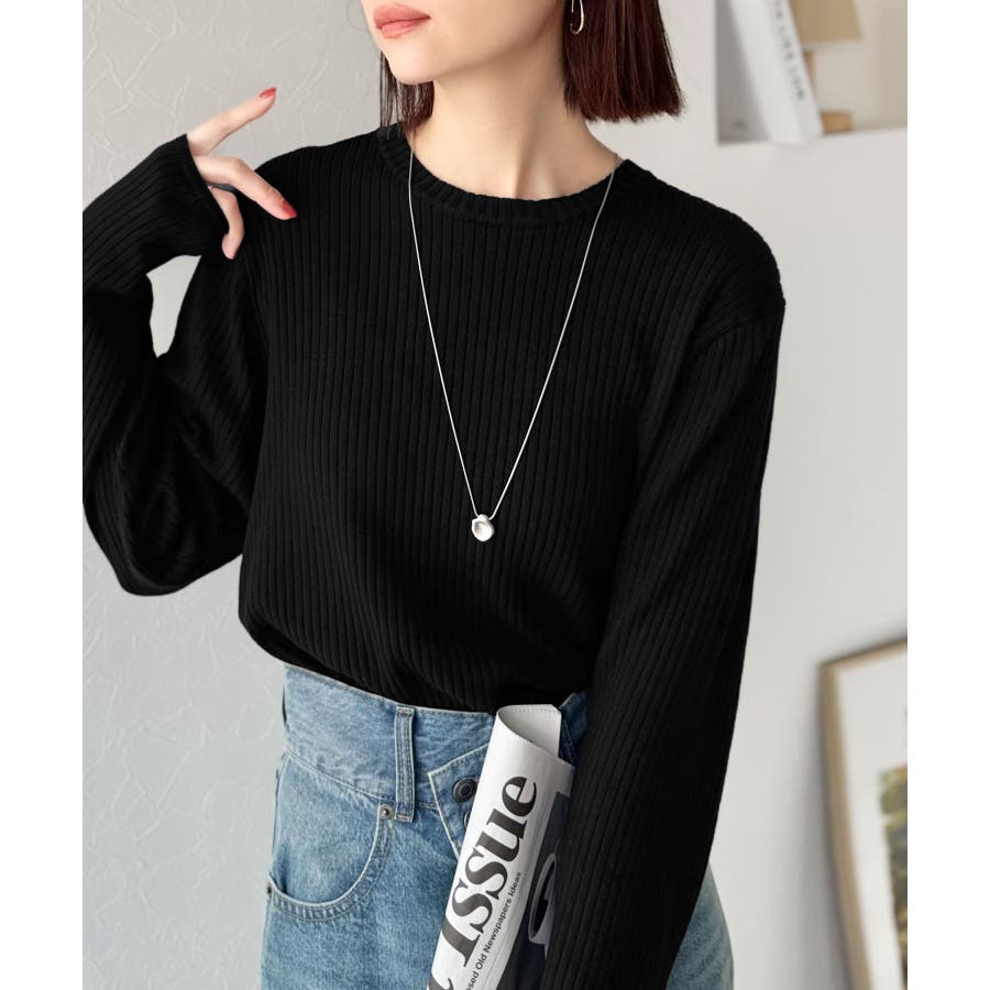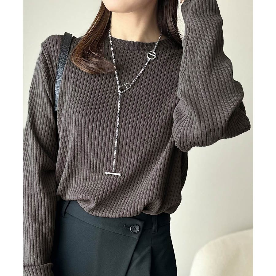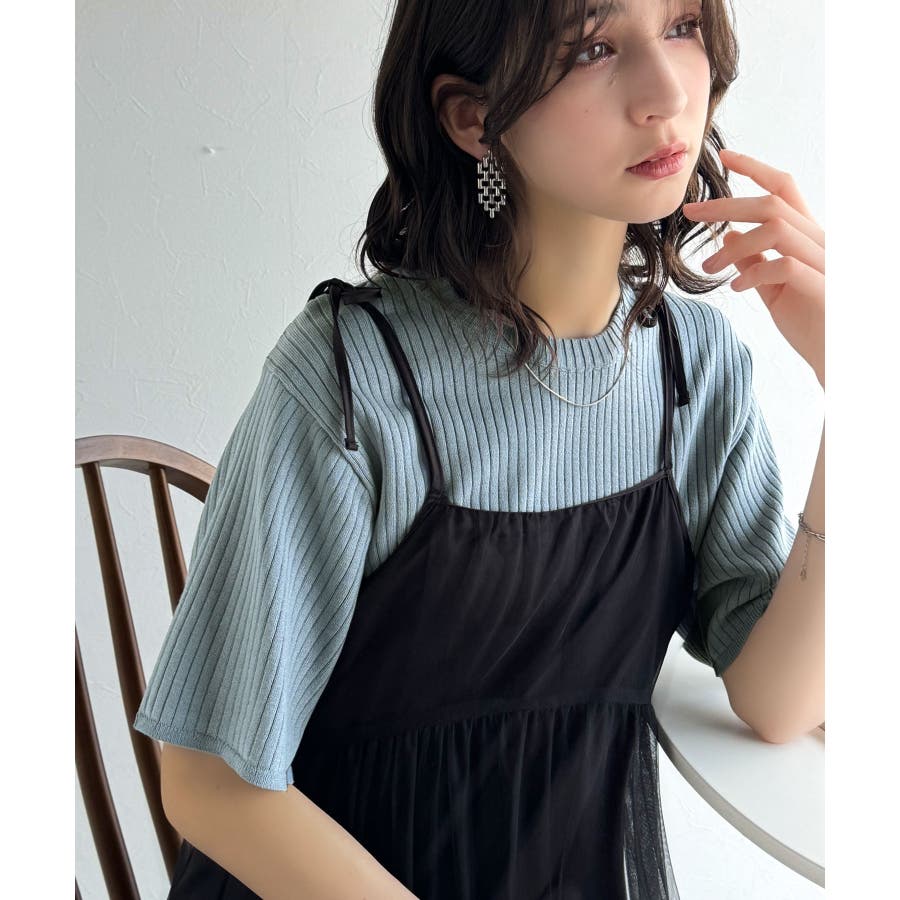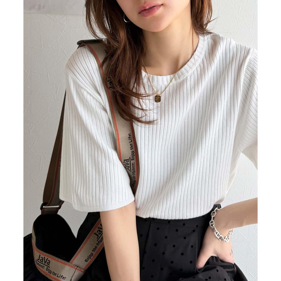 サラッと1枚で着られるサマーリブニット。