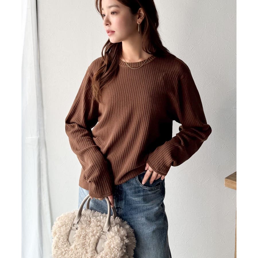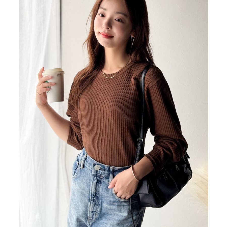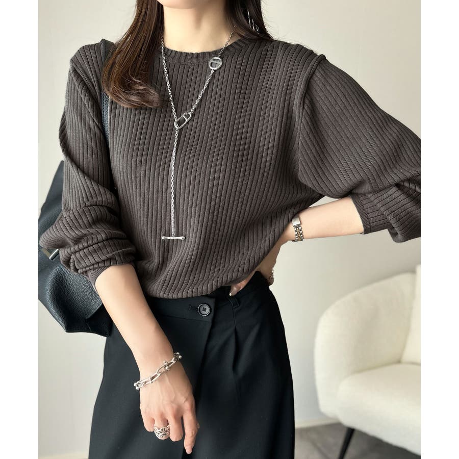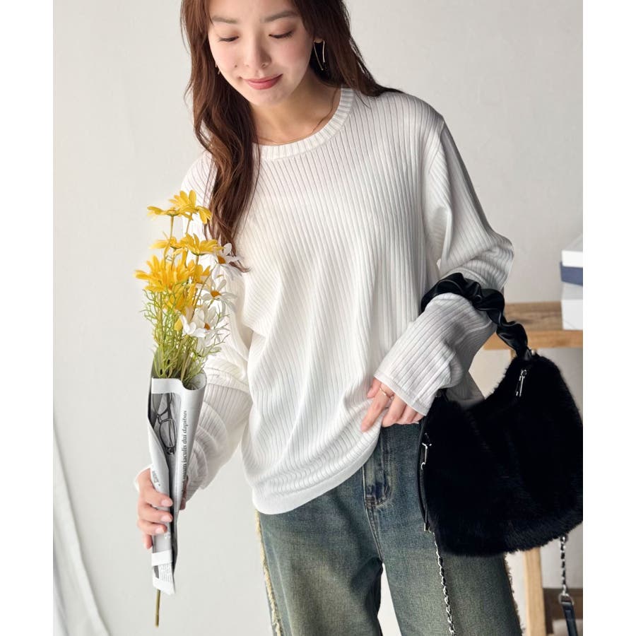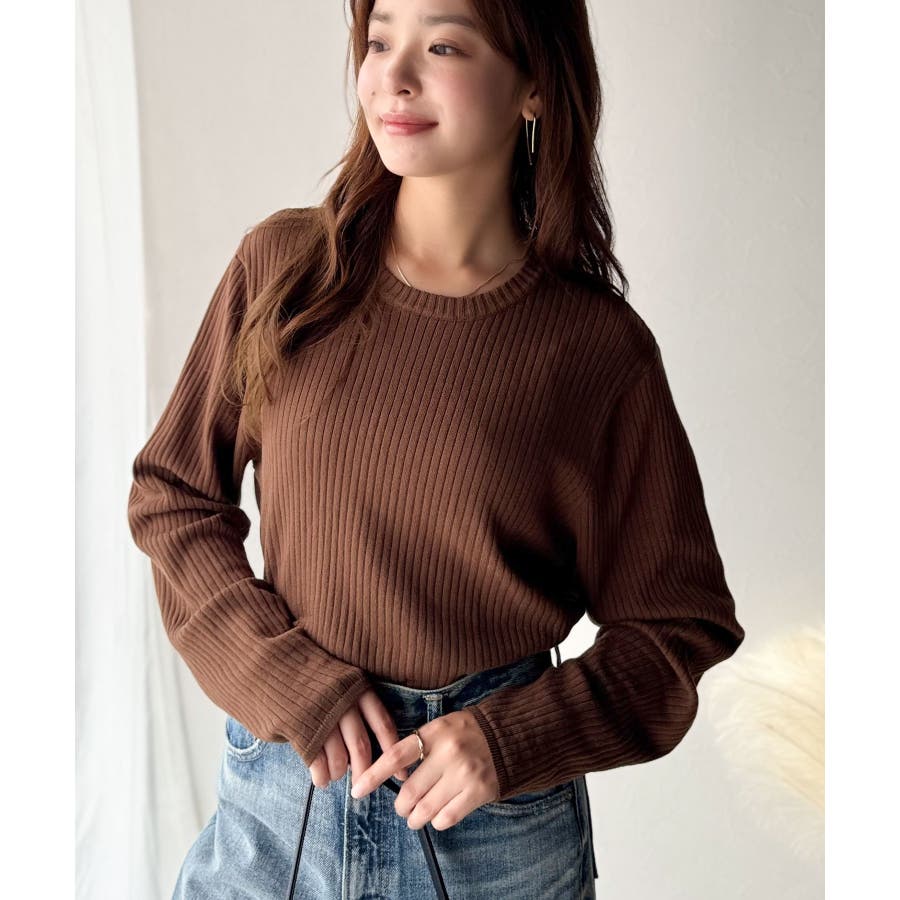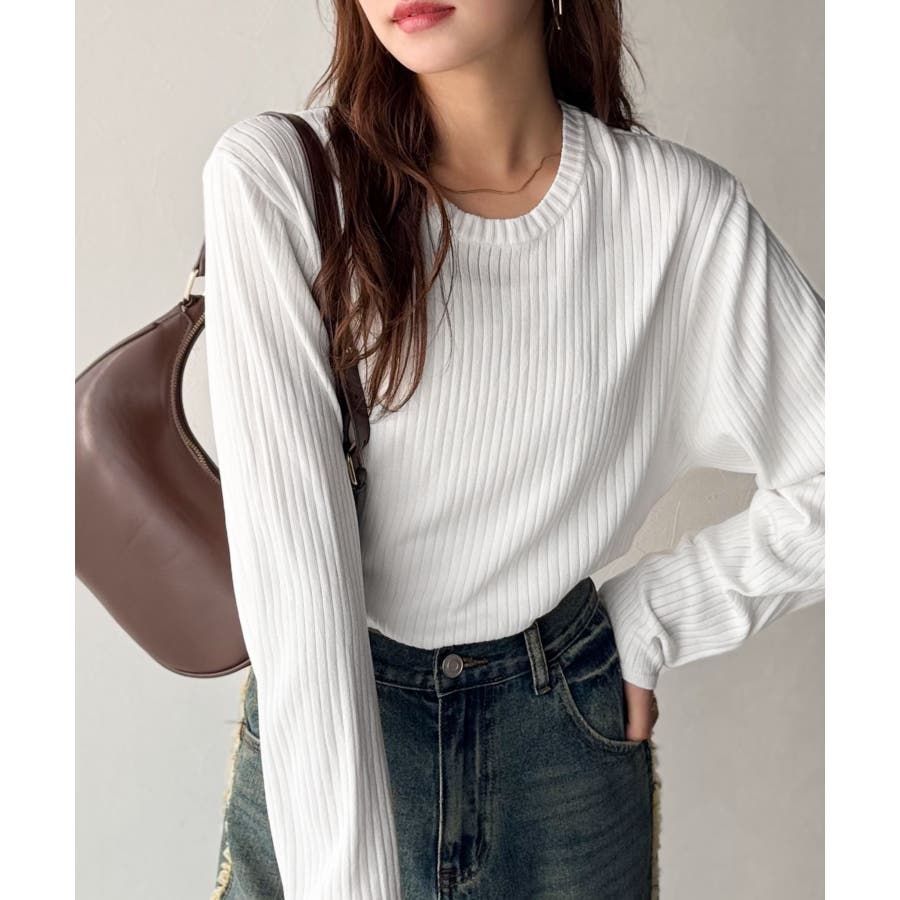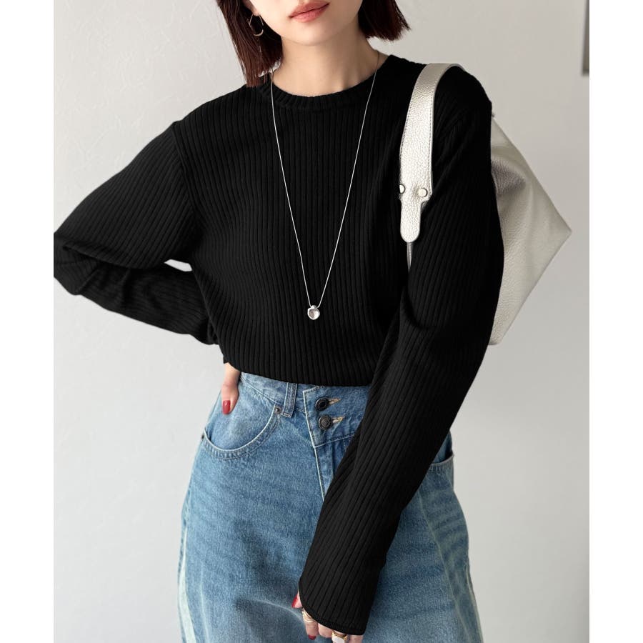 サラッと1枚で着られるサマーリブニット。