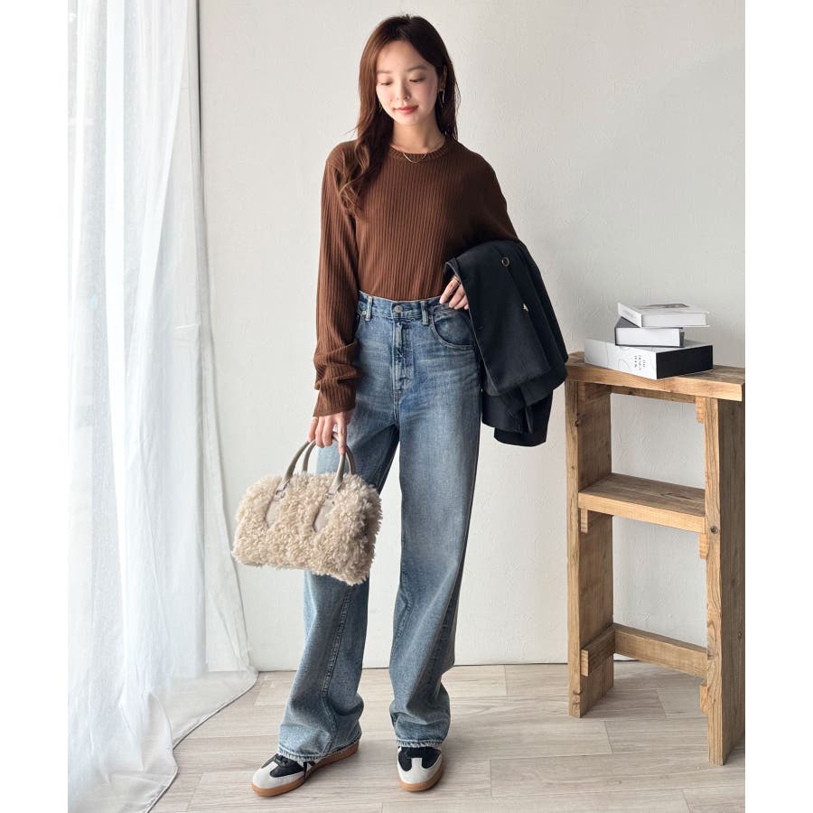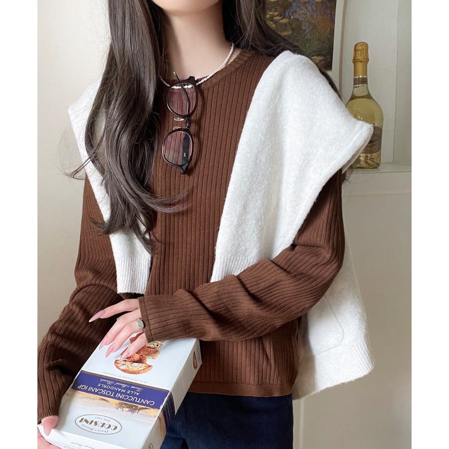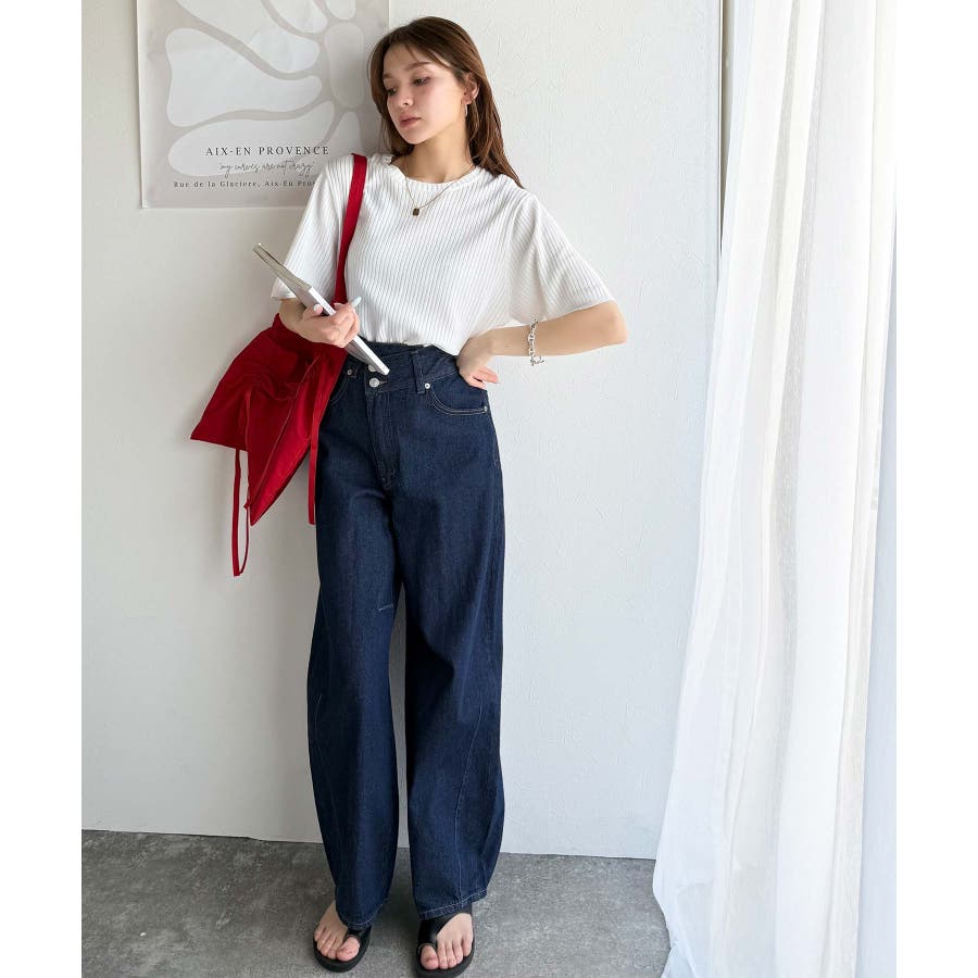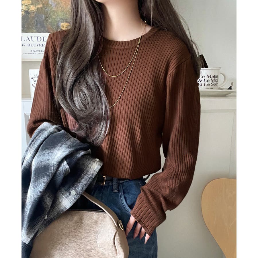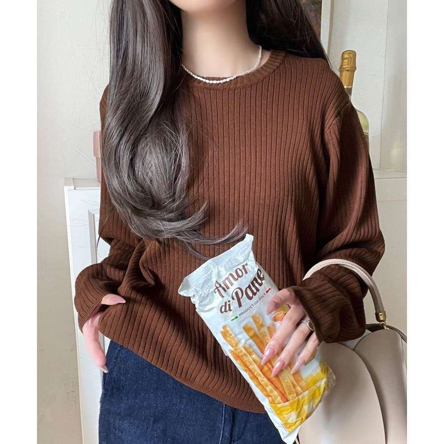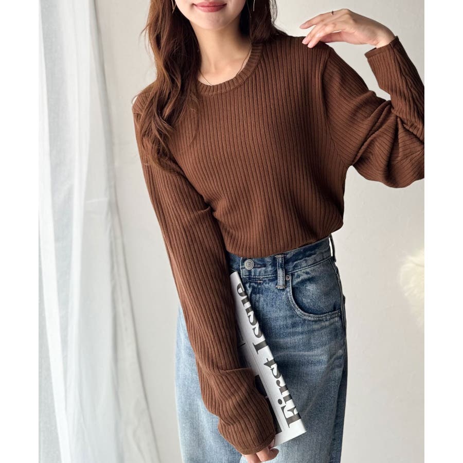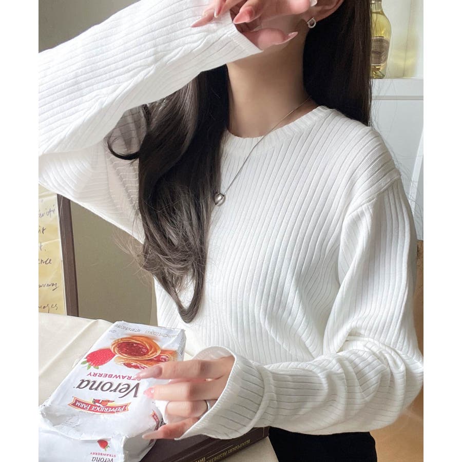 サラッと1枚で着られるサマーリブニット。