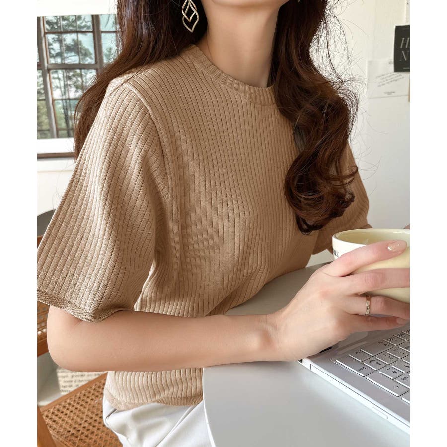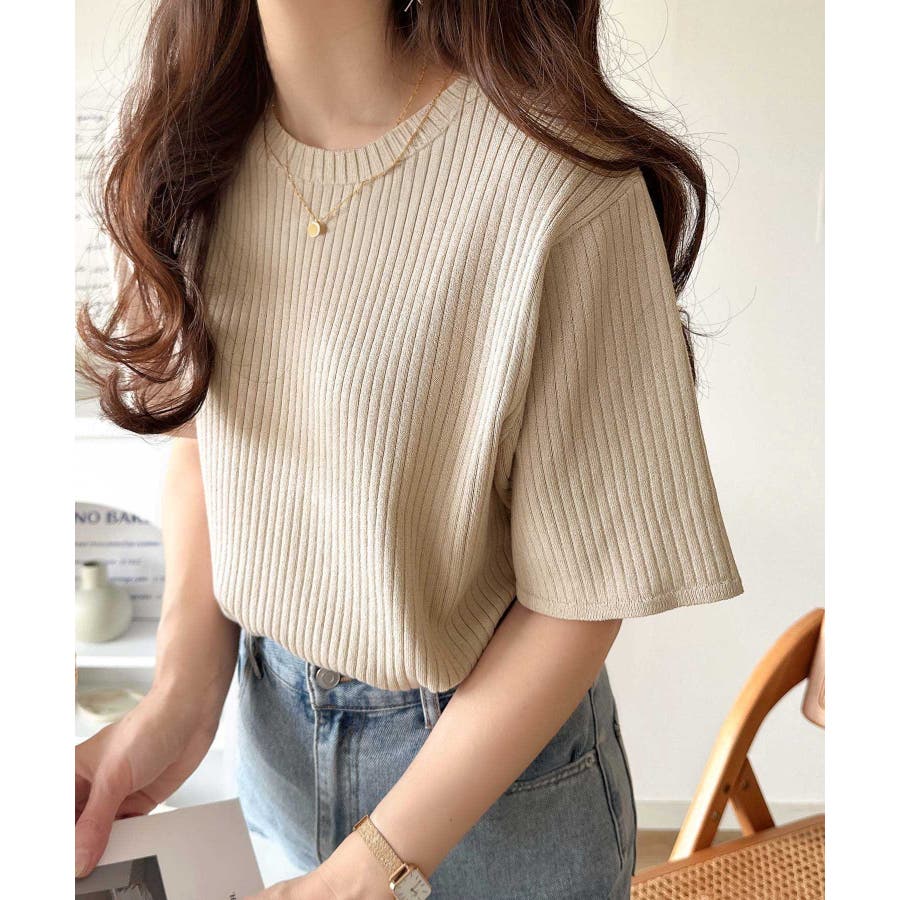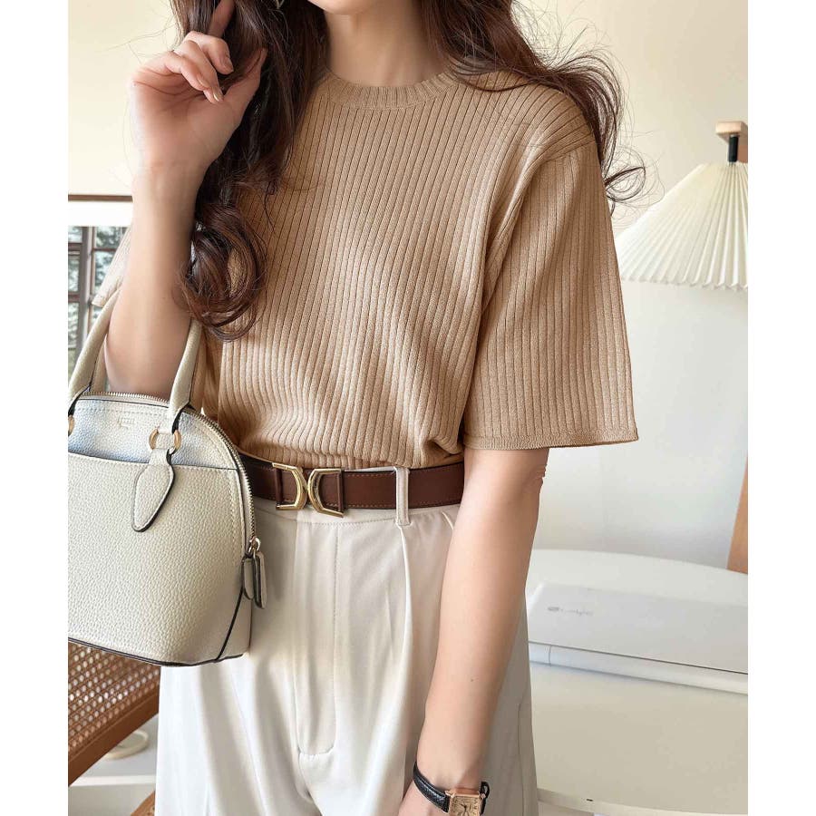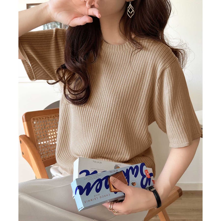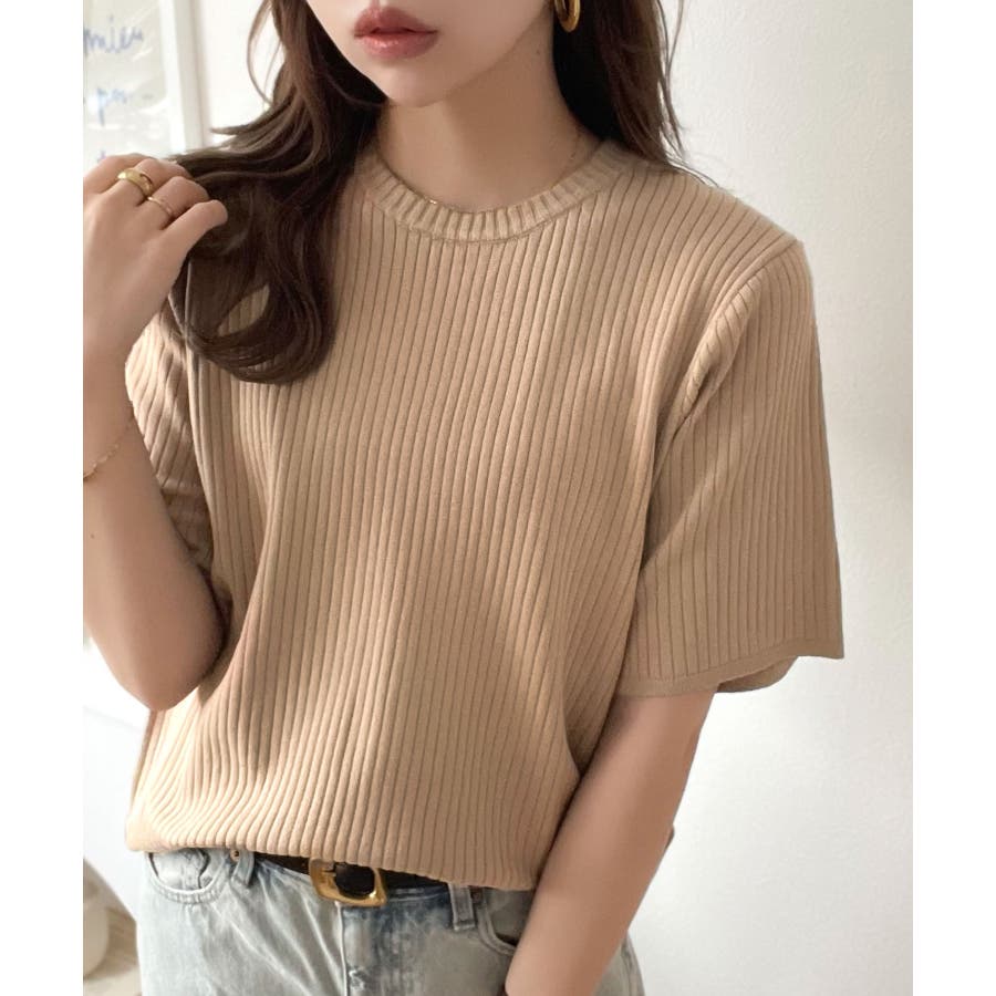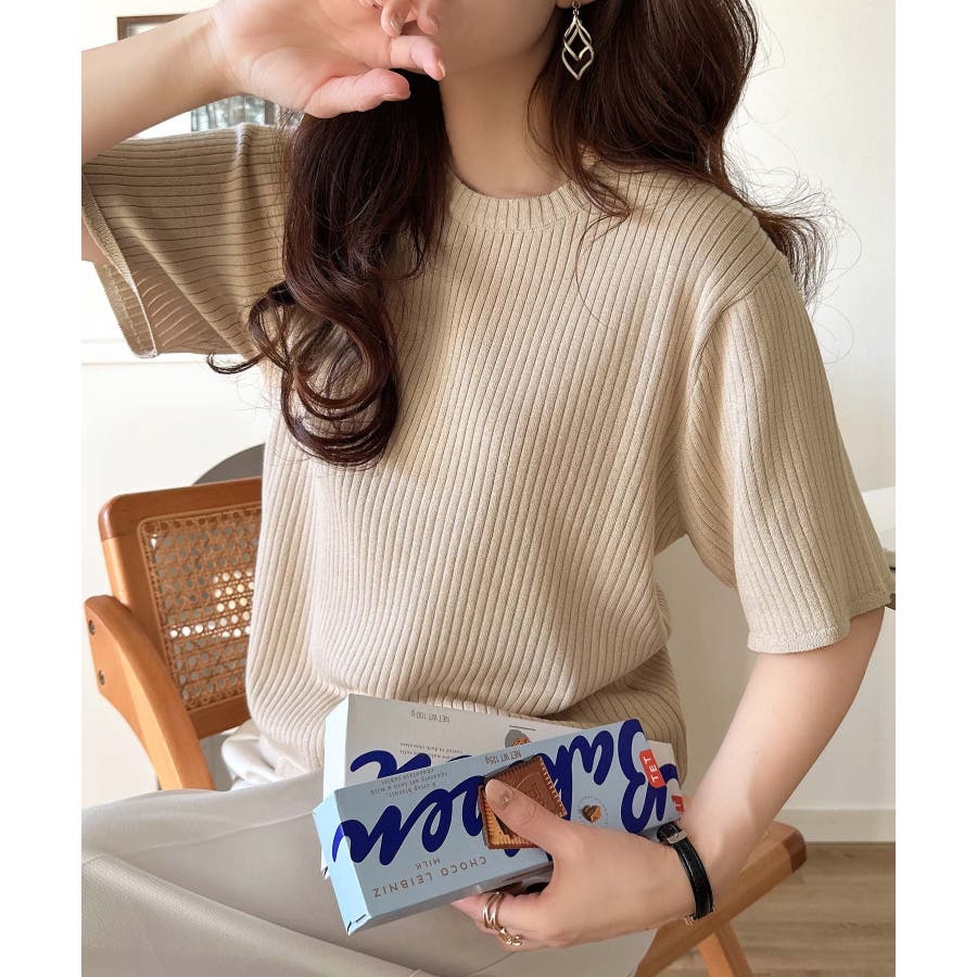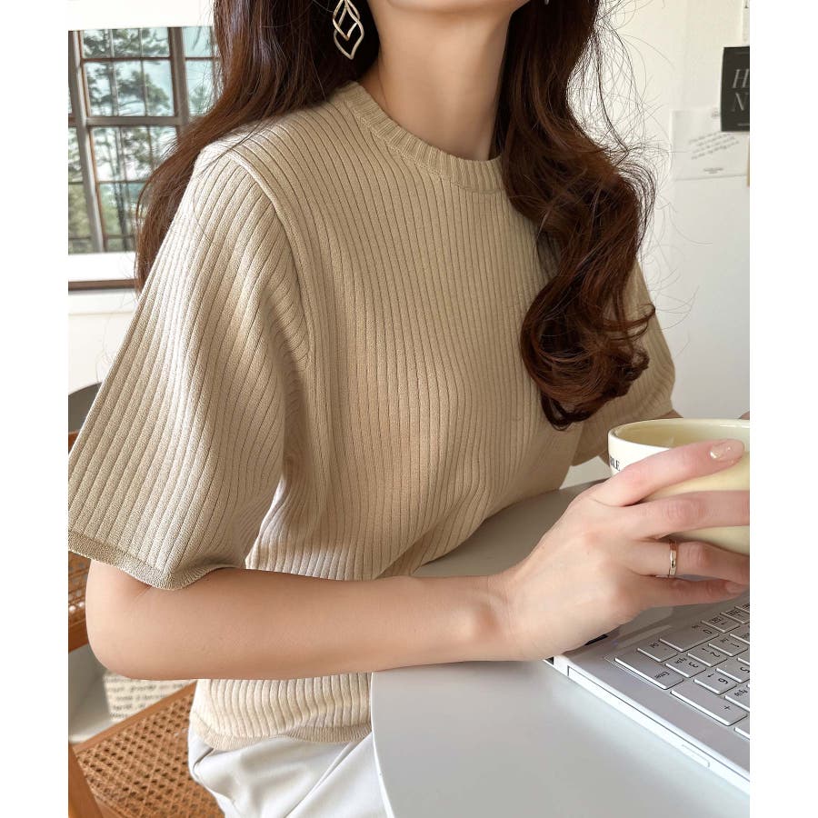 着映えトップス。シンプルサマーリブニット(半袖)