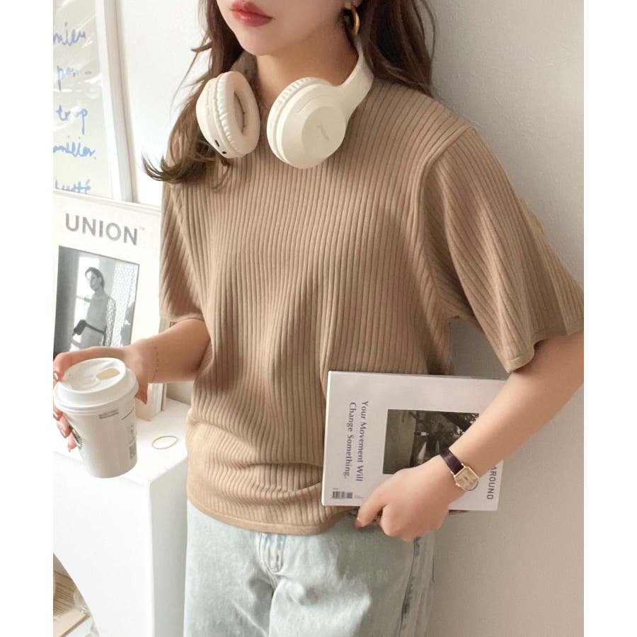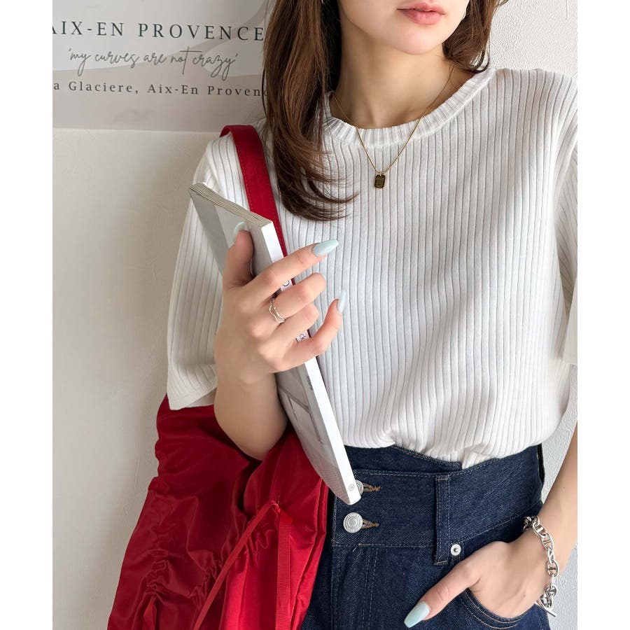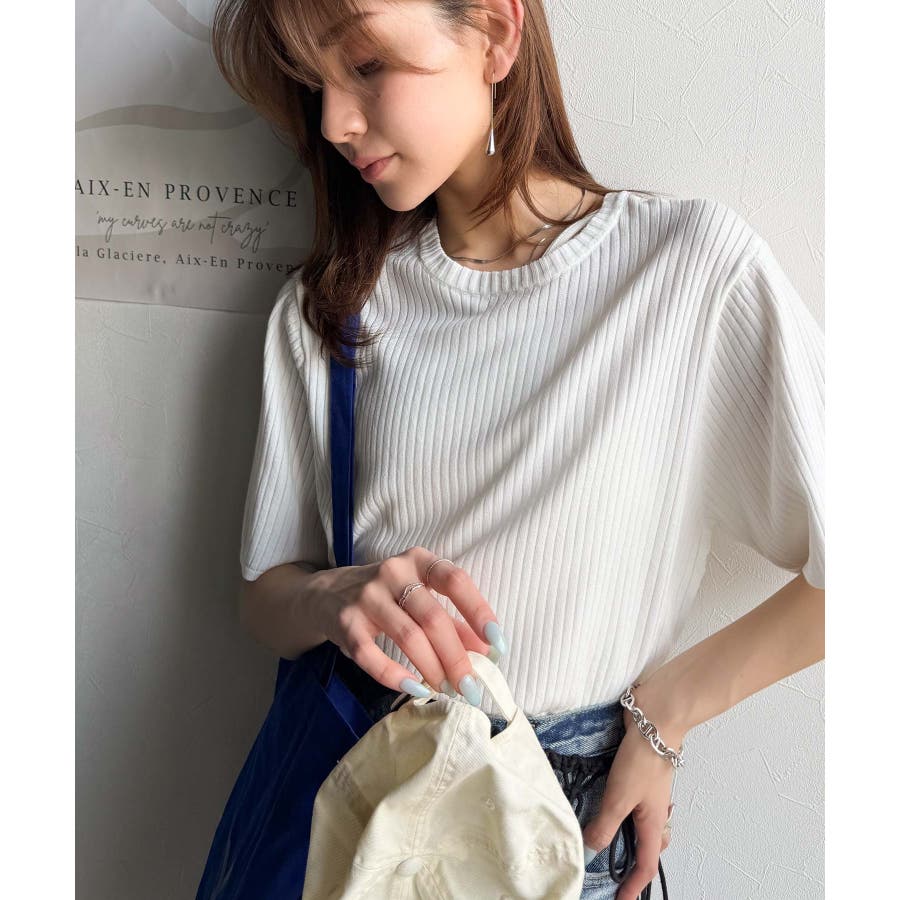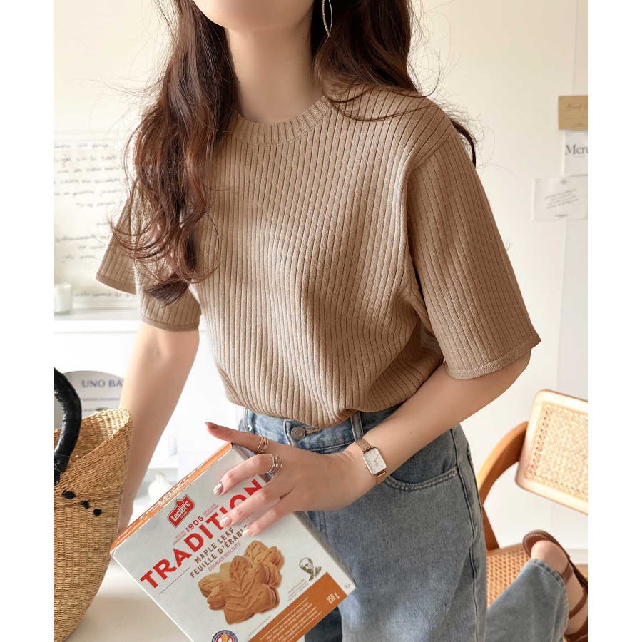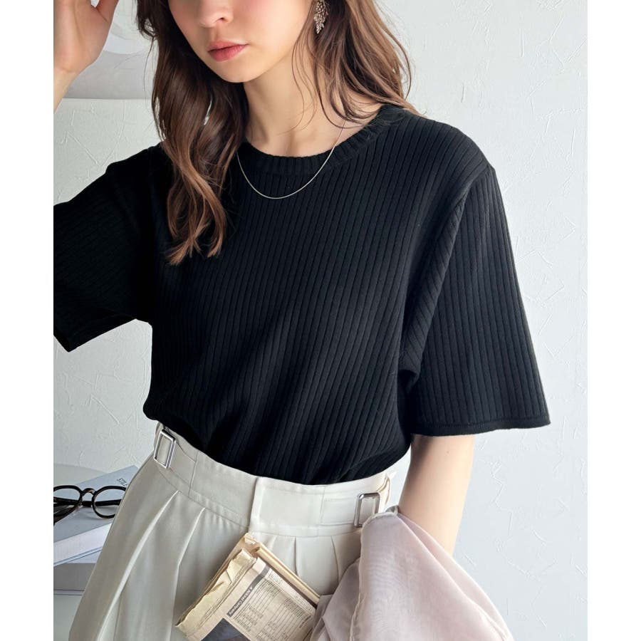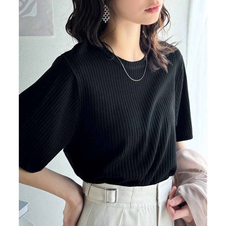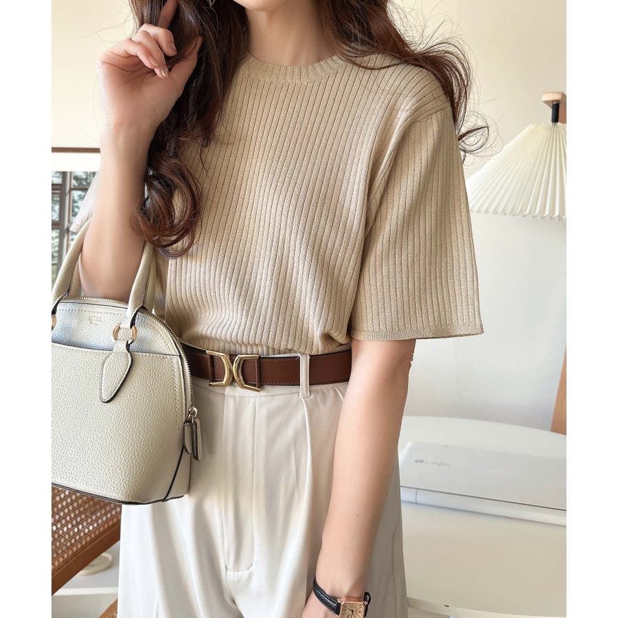 着映えトップス。シンプルサマーリブニット(半袖)