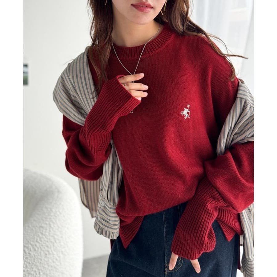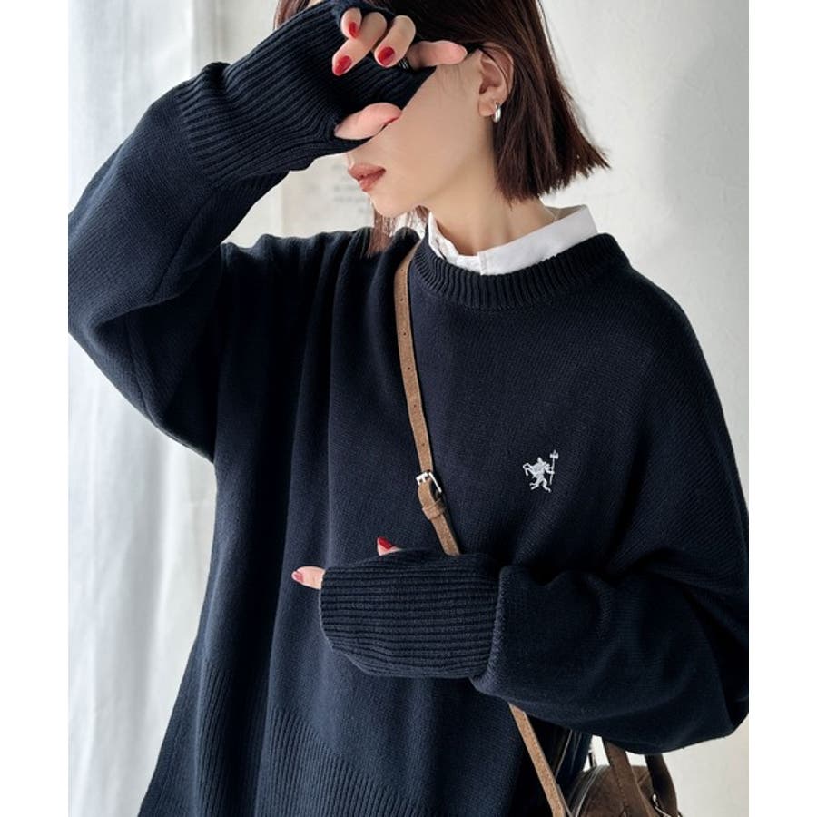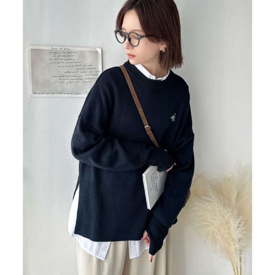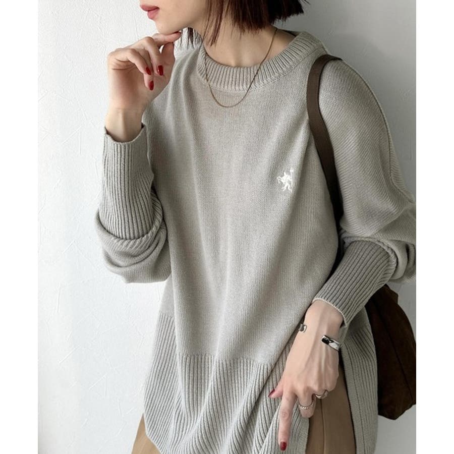 さらり抜け感ある着こなしが叶う。胸刺繍サムホール付きシンプルニット