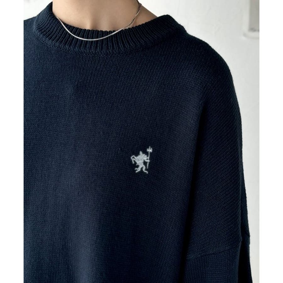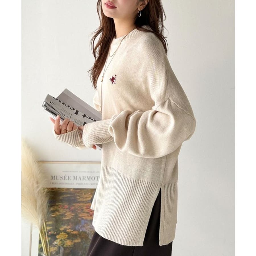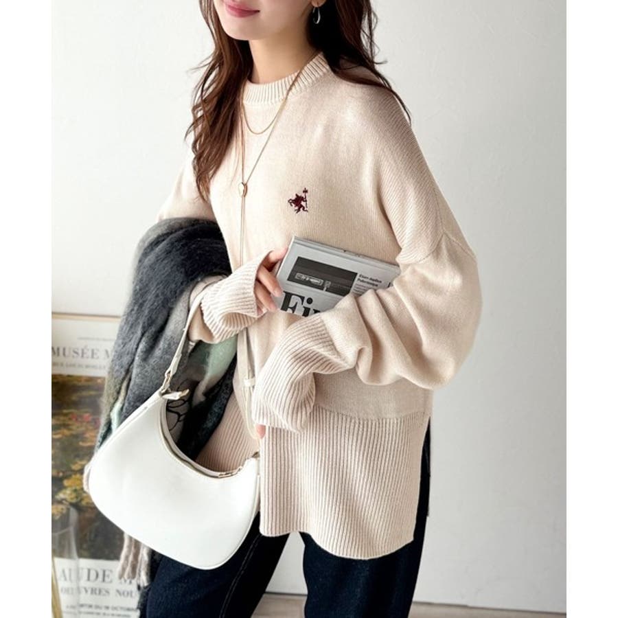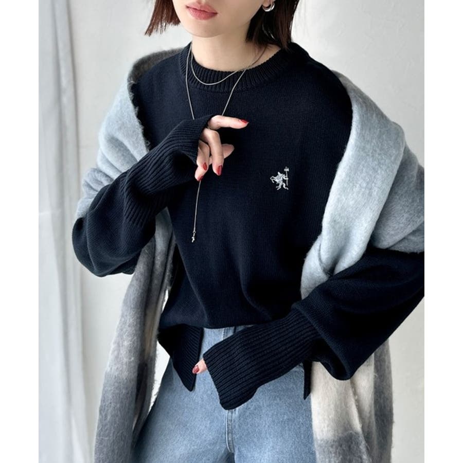 さらり抜け感ある着こなしが叶う。胸刺繍サムホール付きシンプルニット