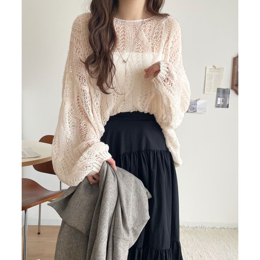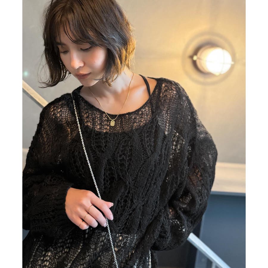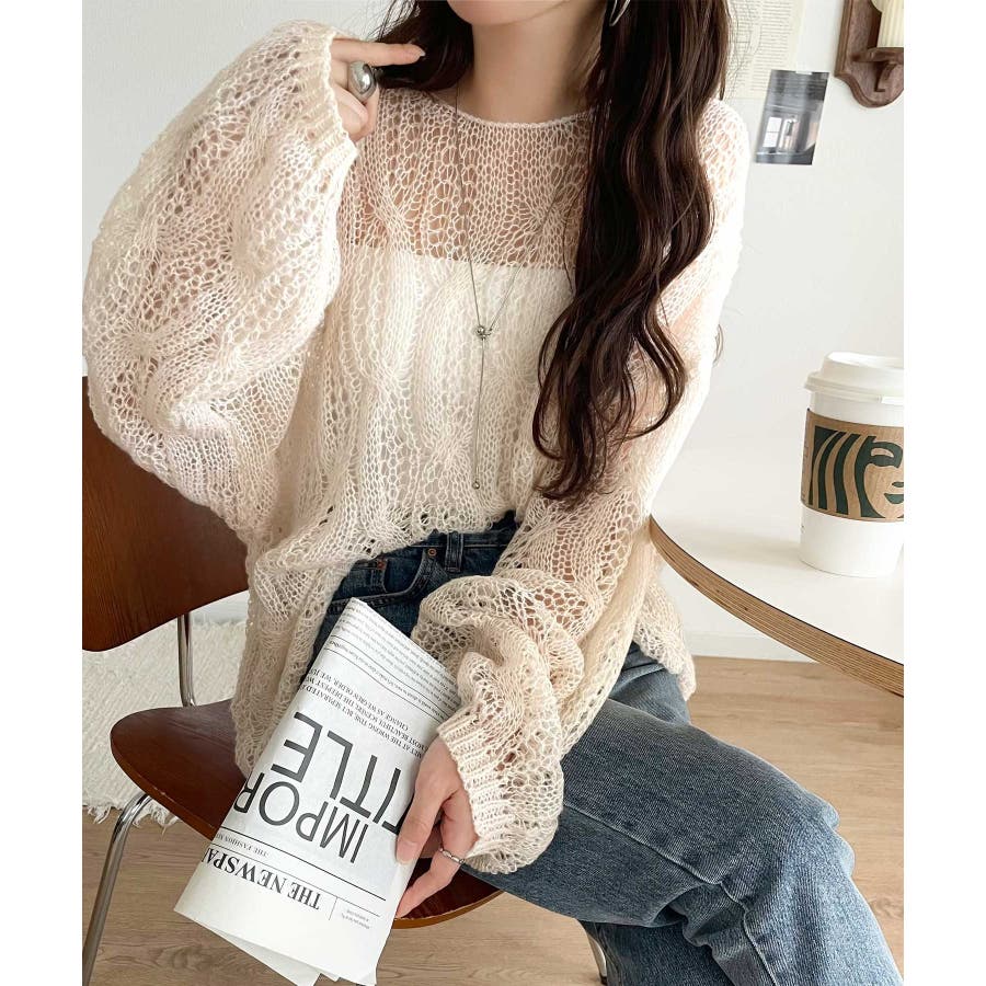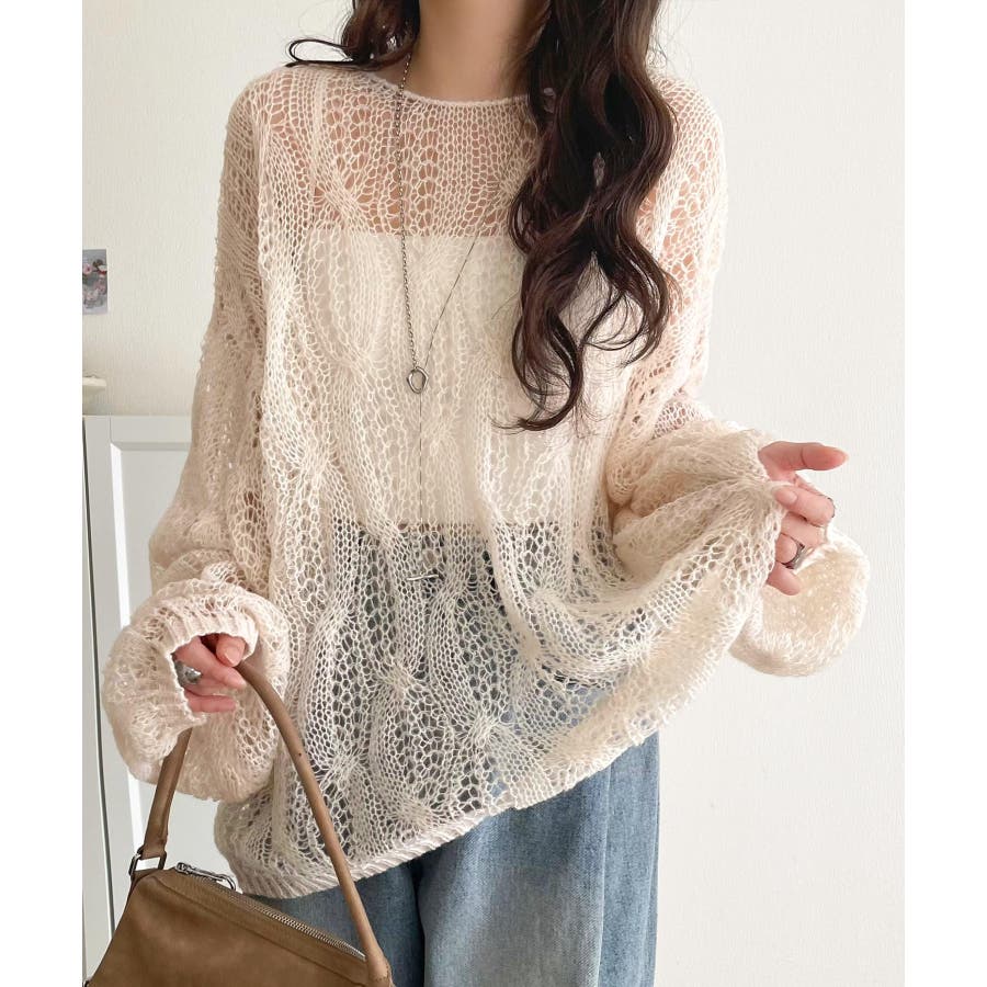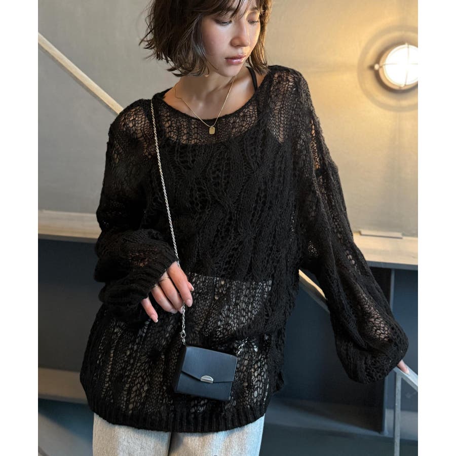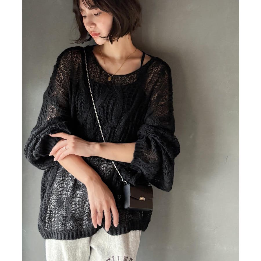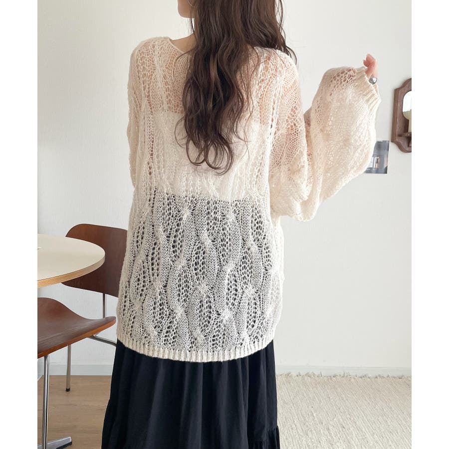 透かし編みのケーブルデザインが特徴のオーバーサイズニット。