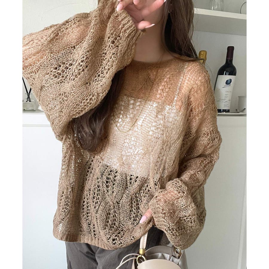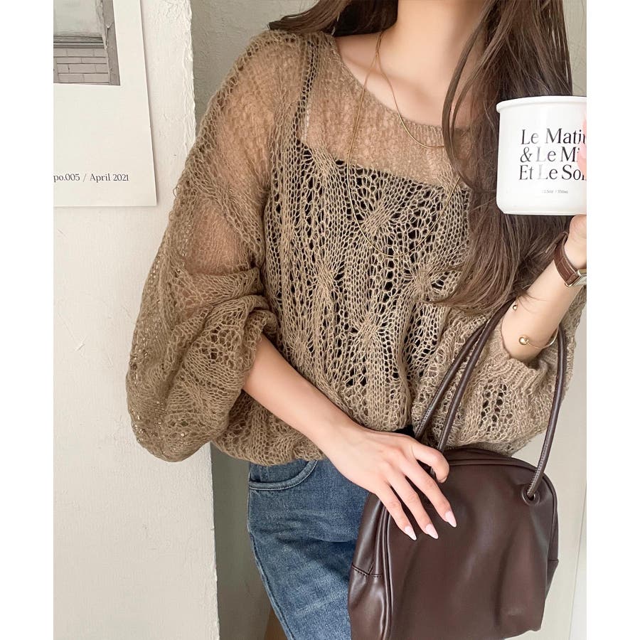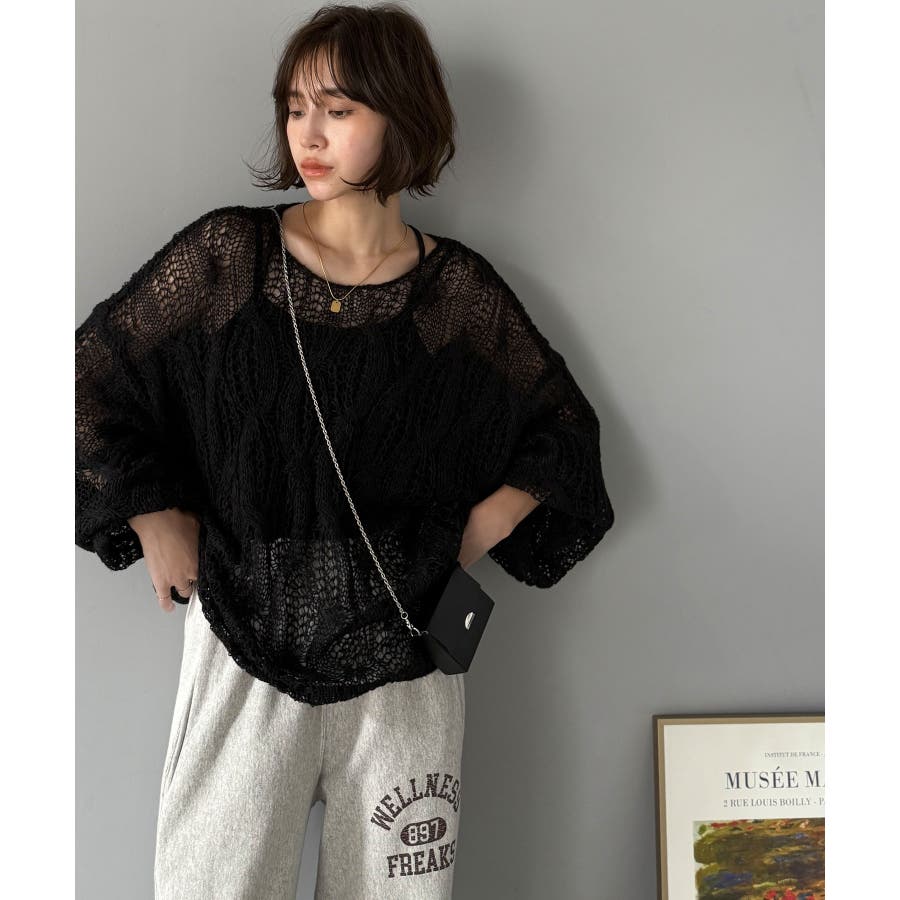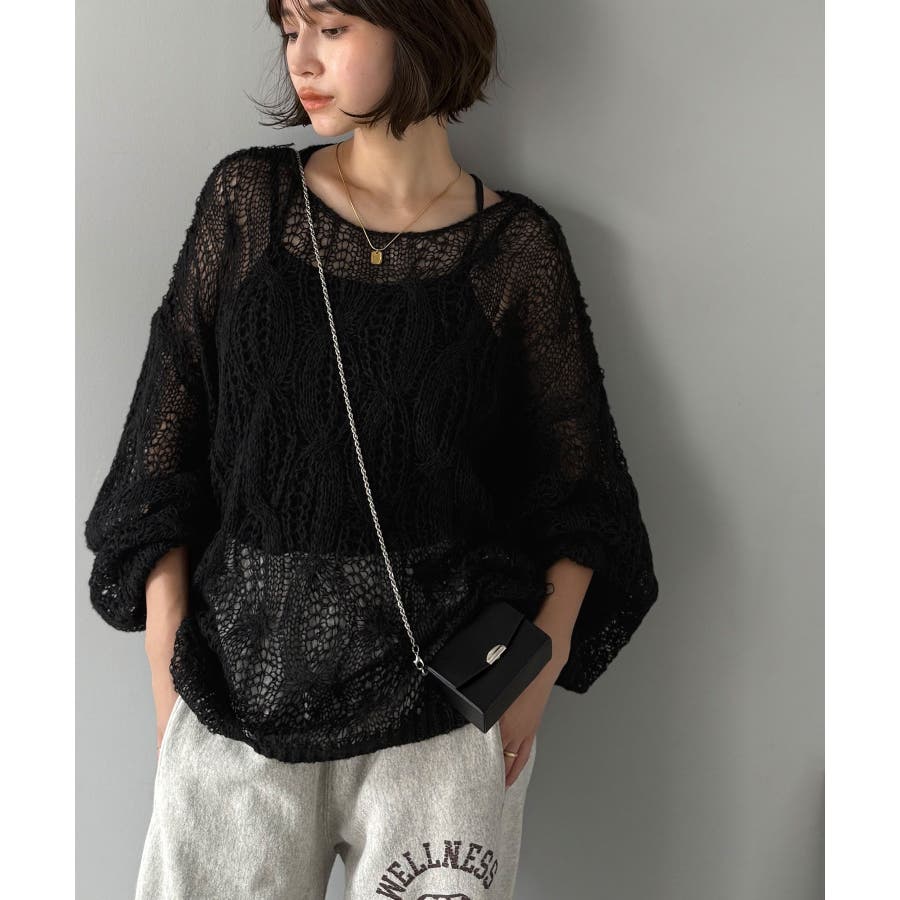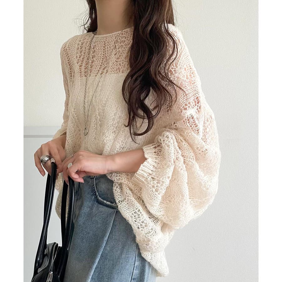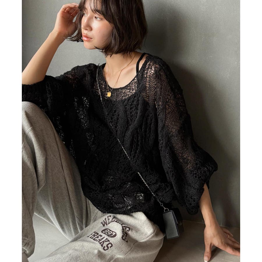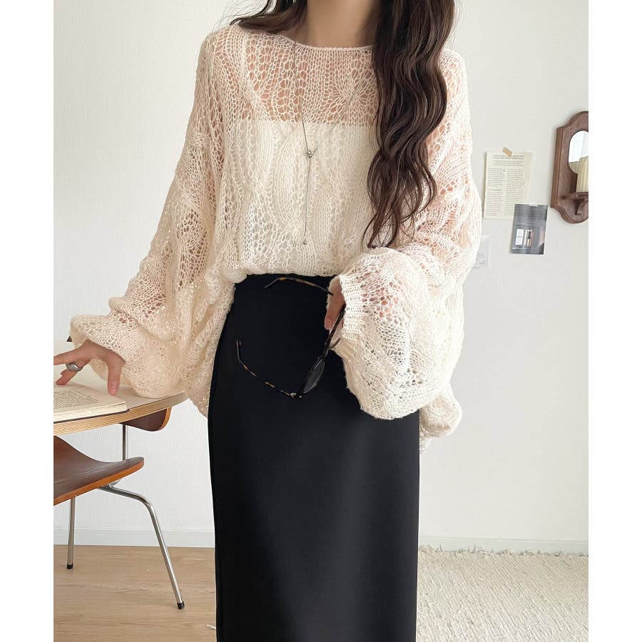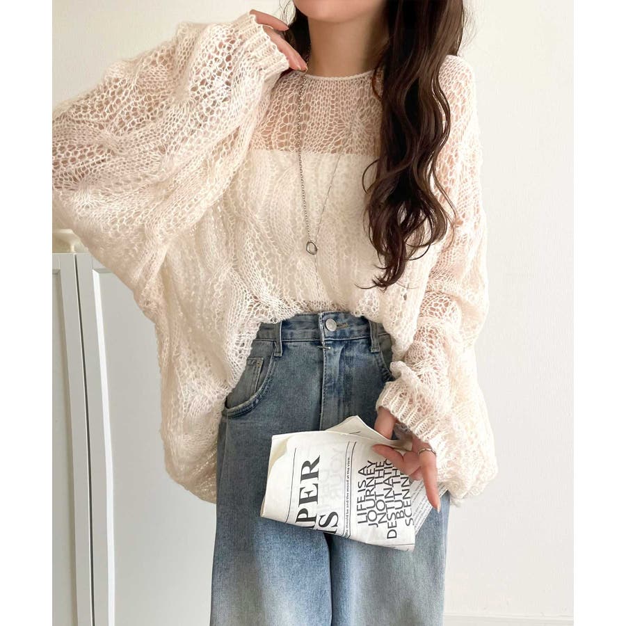 透かし編みのケーブルデザインが特徴のオーバーサイズニット。
