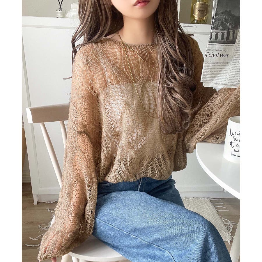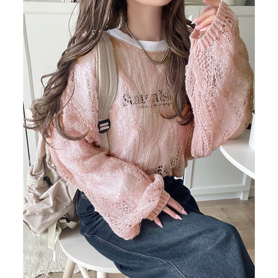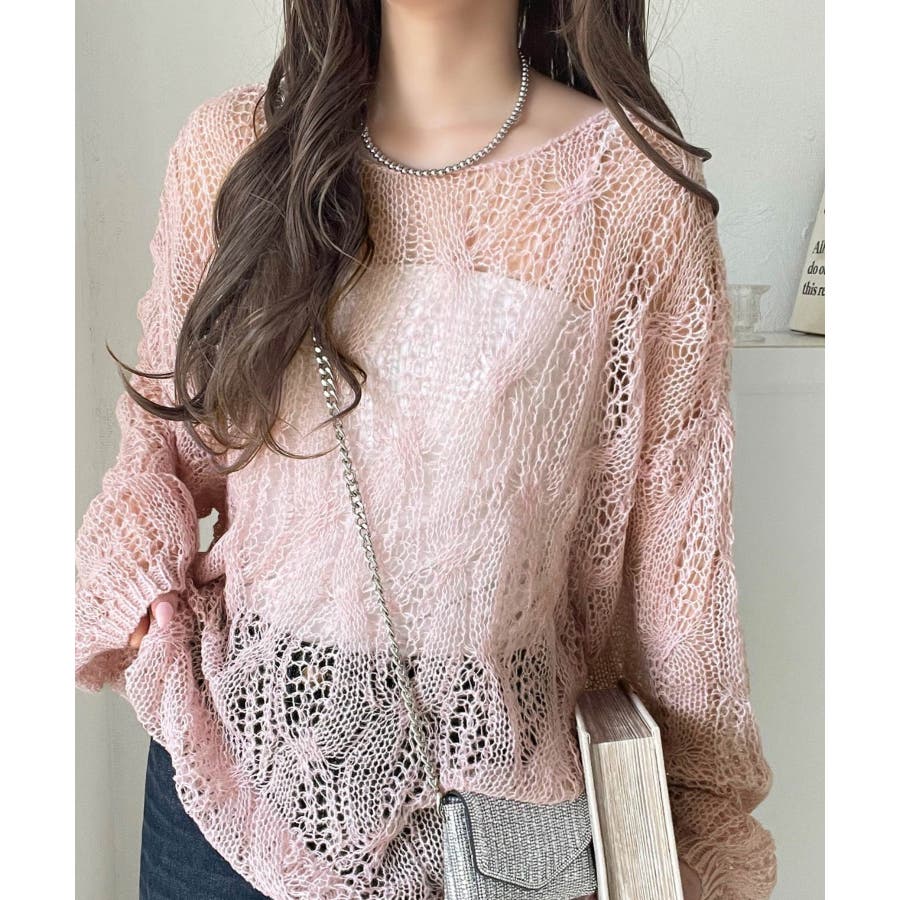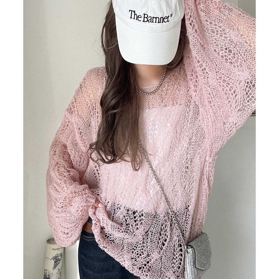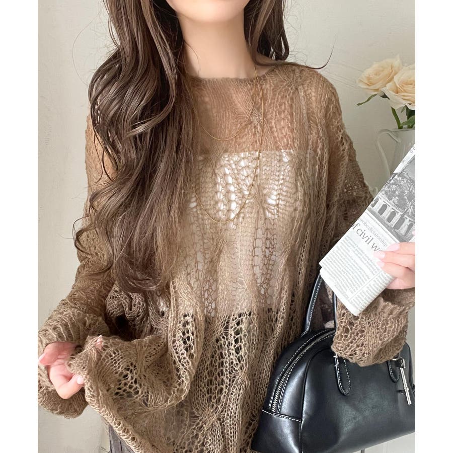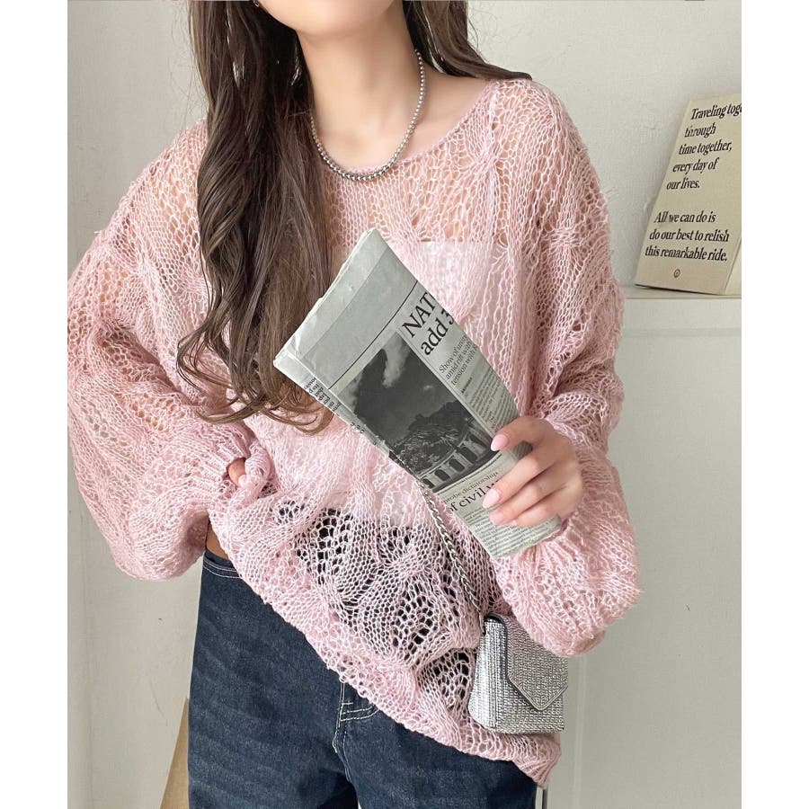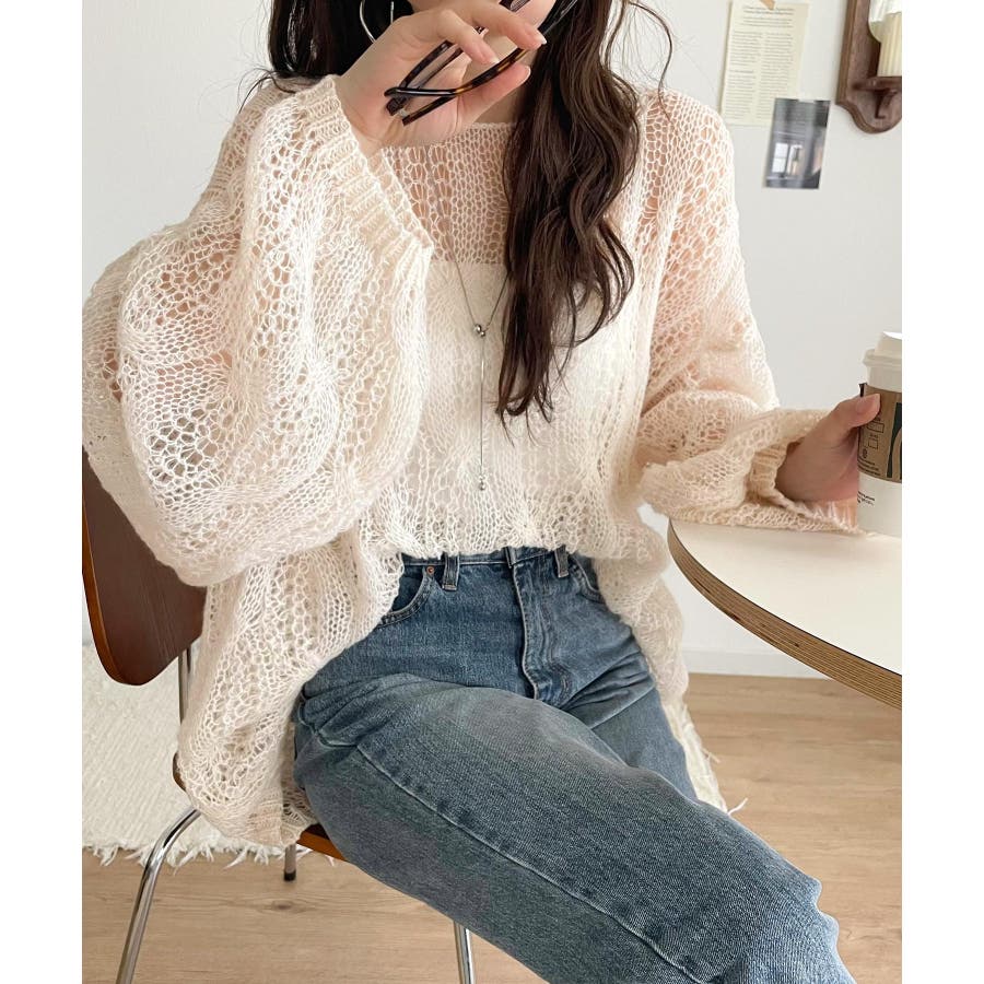 透かし編みのケーブルデザインが特徴のオーバーサイズニット。