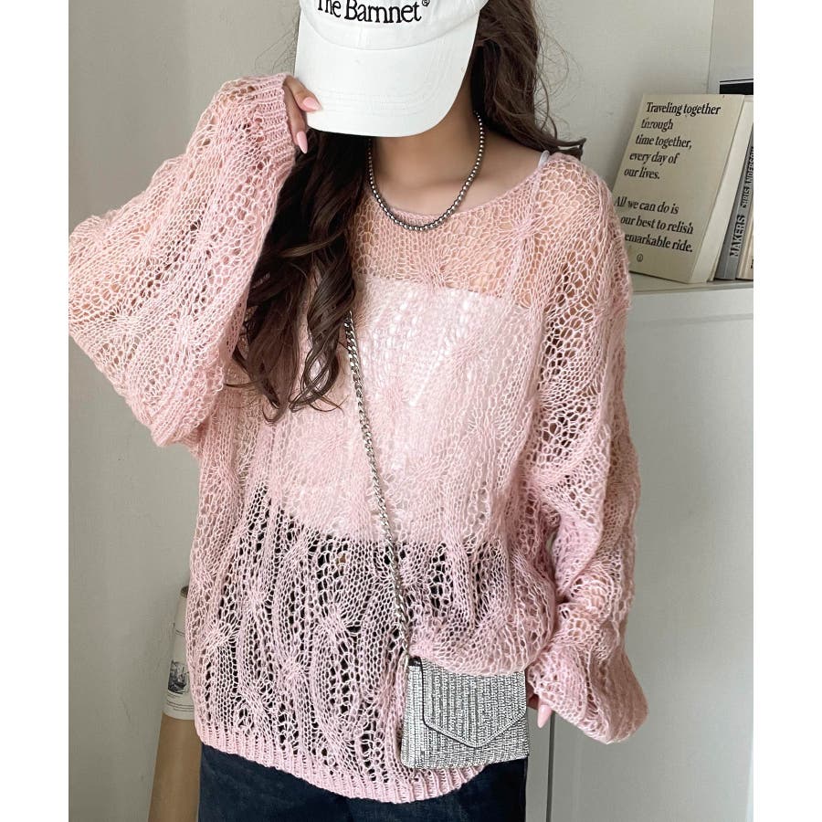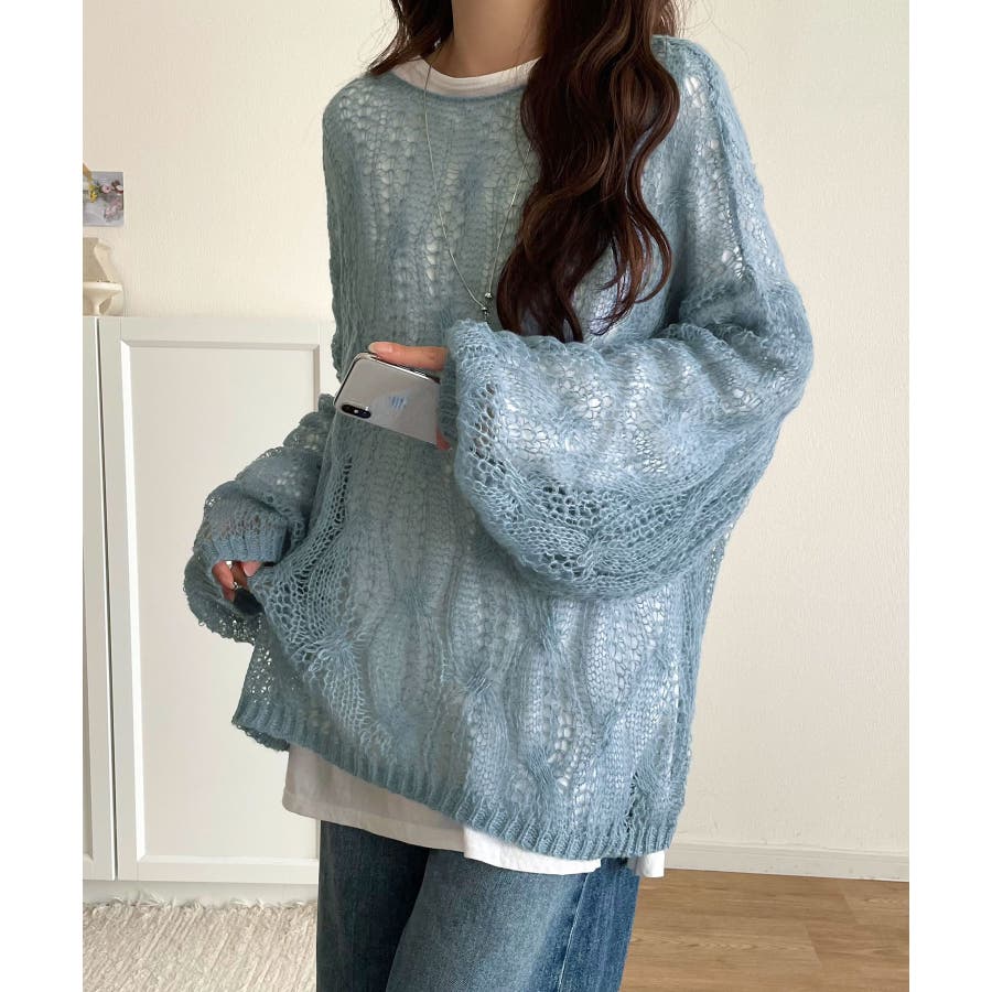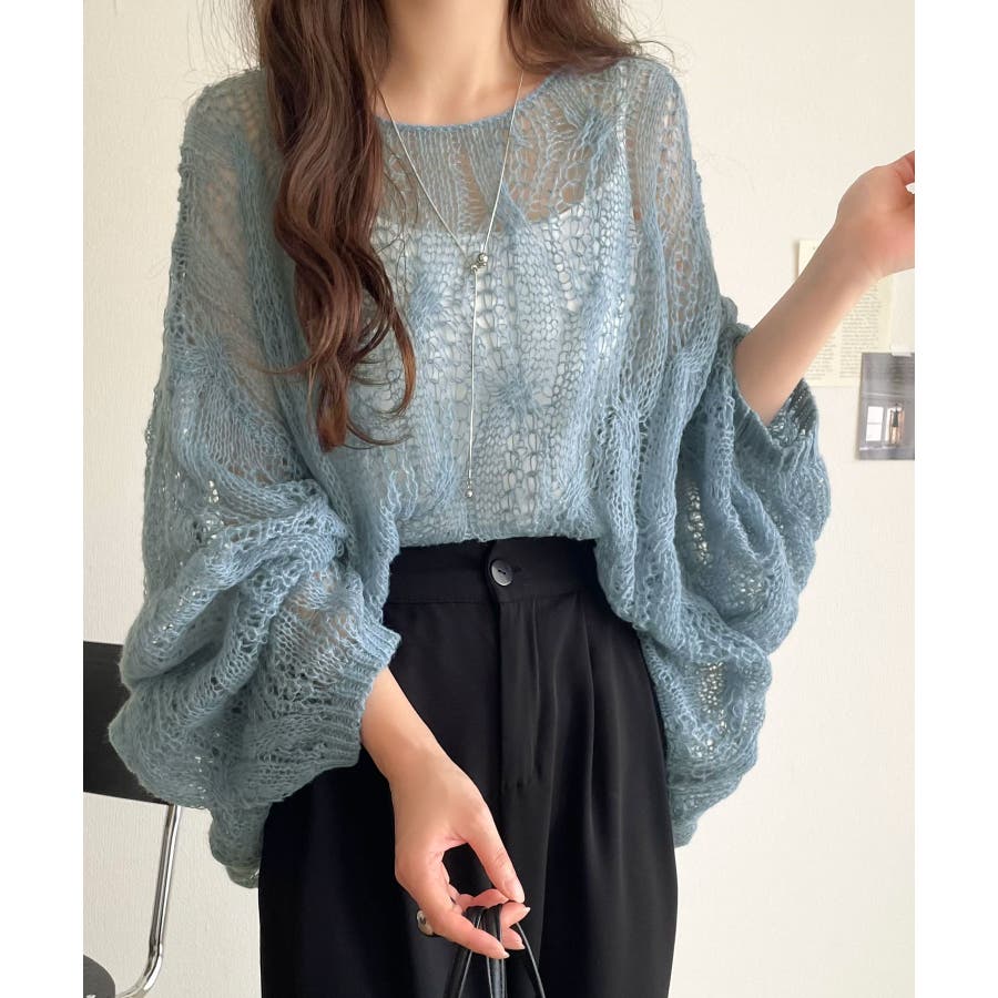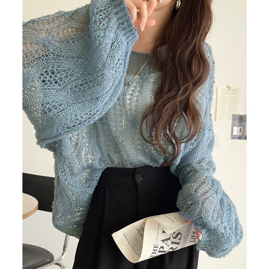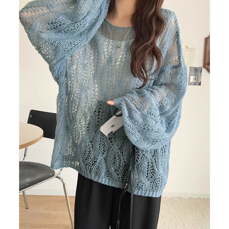 ゆるっと抜け感漂う!透かし編みケーブルオーバーサイズニット(長袖)