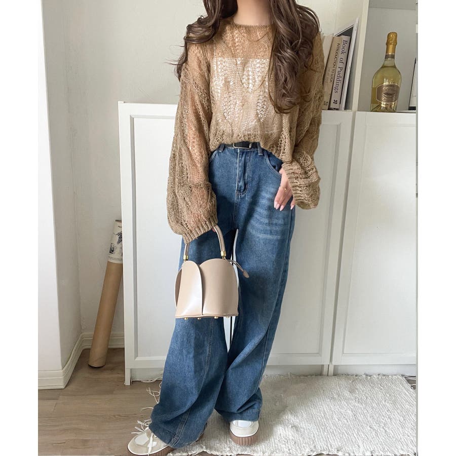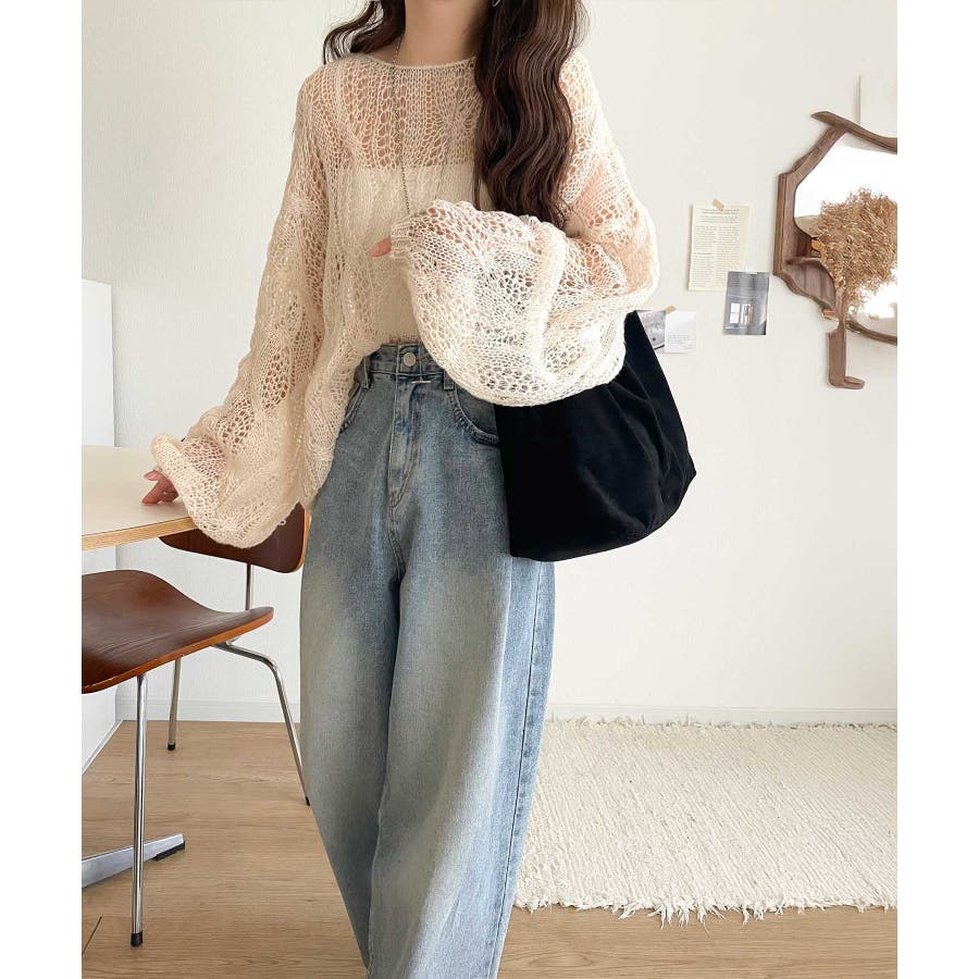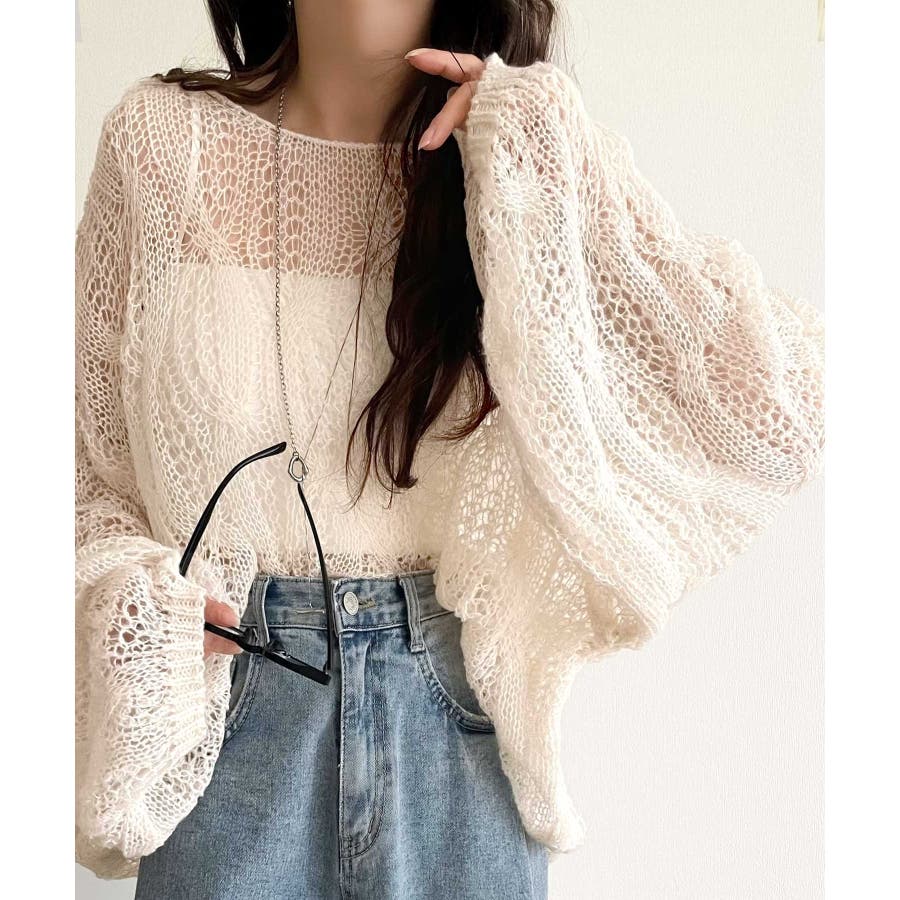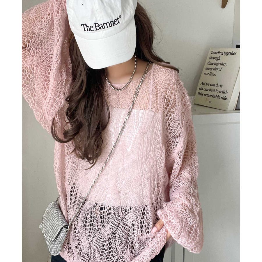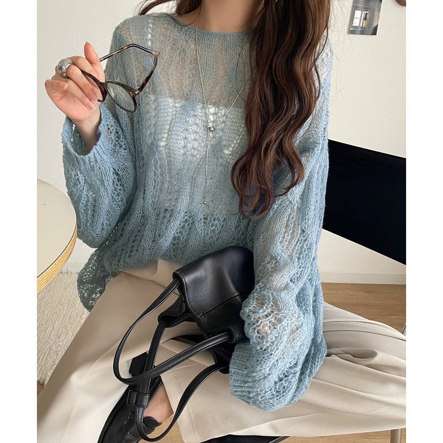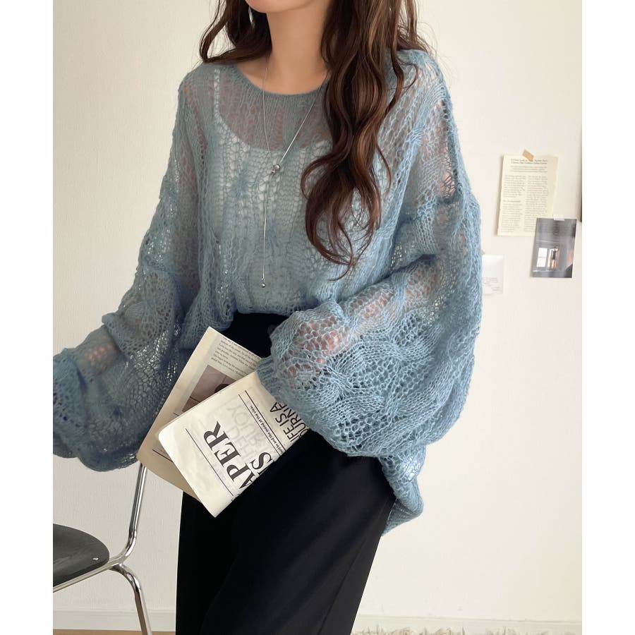 ゆるっと抜け感漂う!透かし編みケーブルオーバーサイズニット(長袖)
