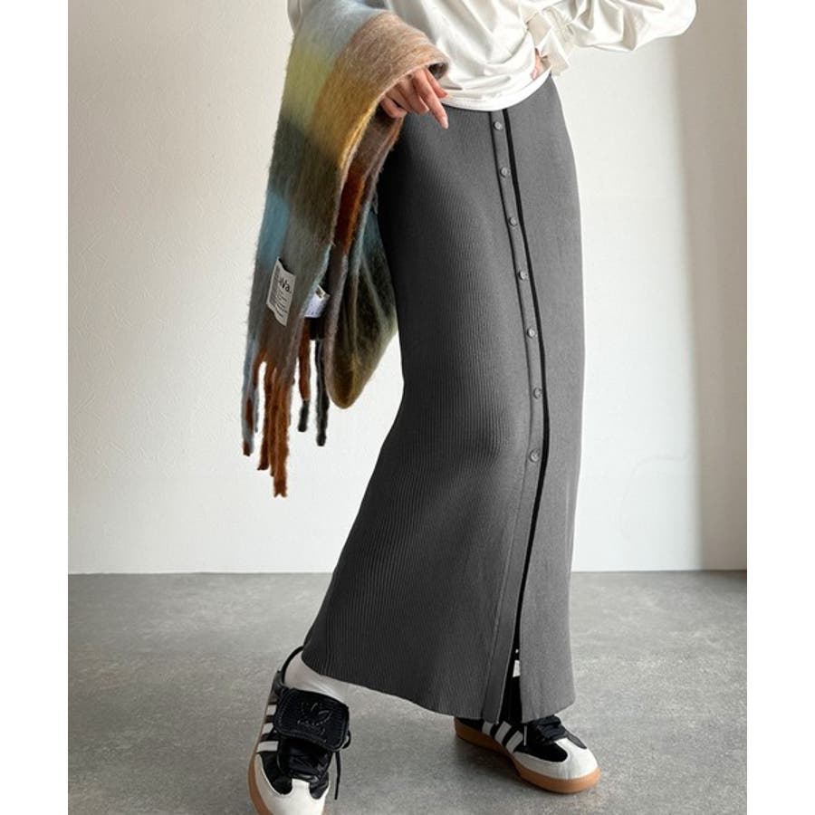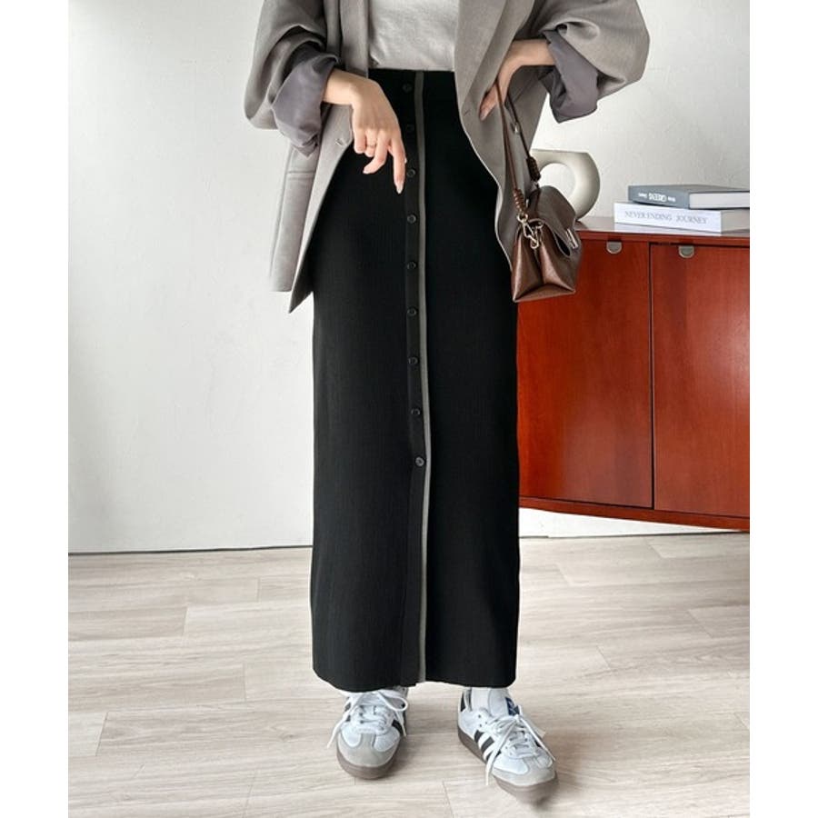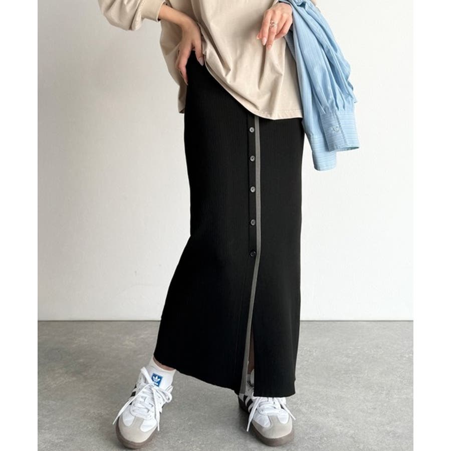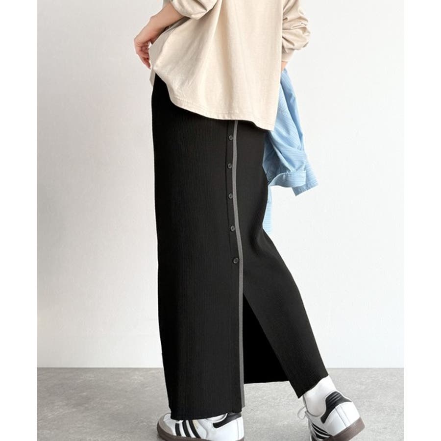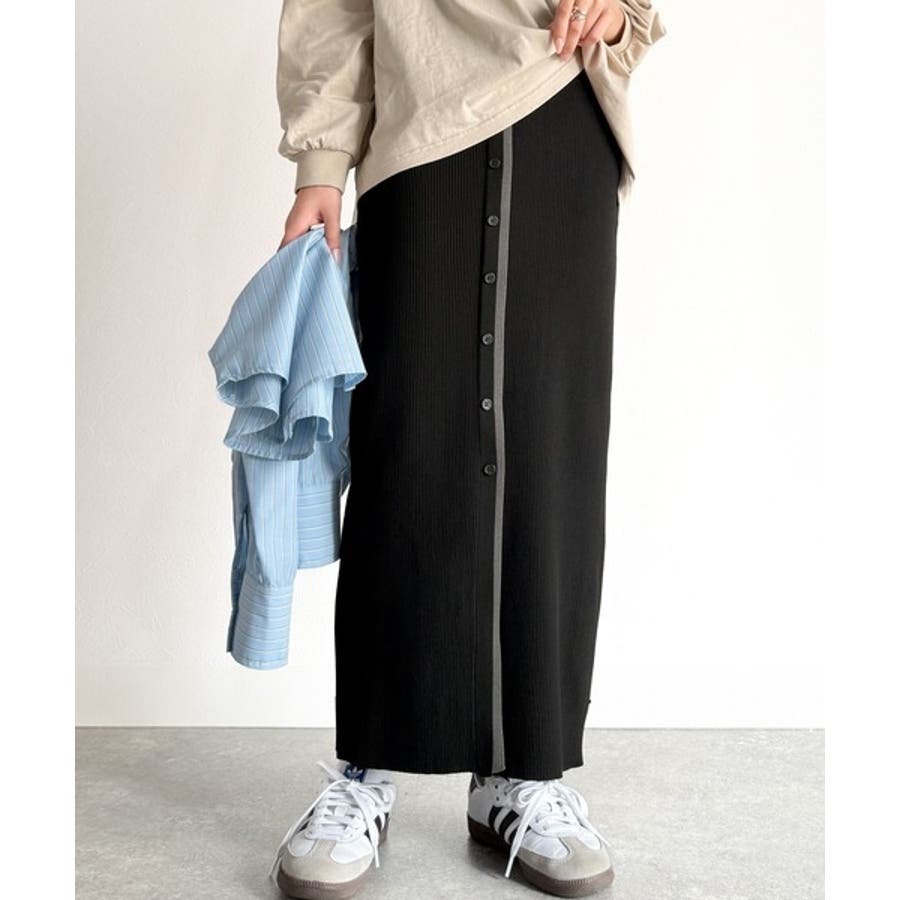 前後2wayで着まわせる!配色ボタンラインリブスカート(ロング丈)