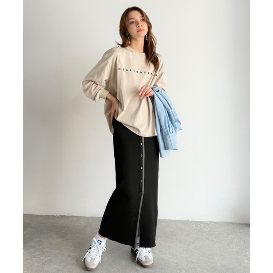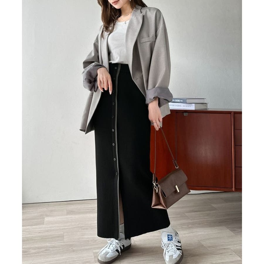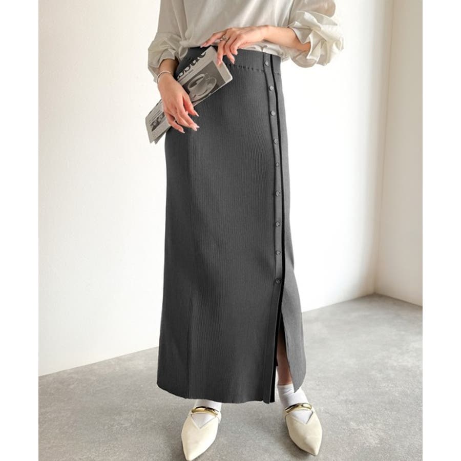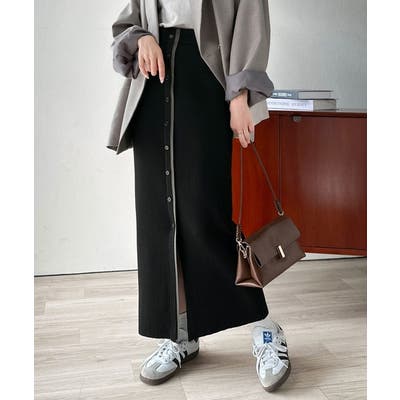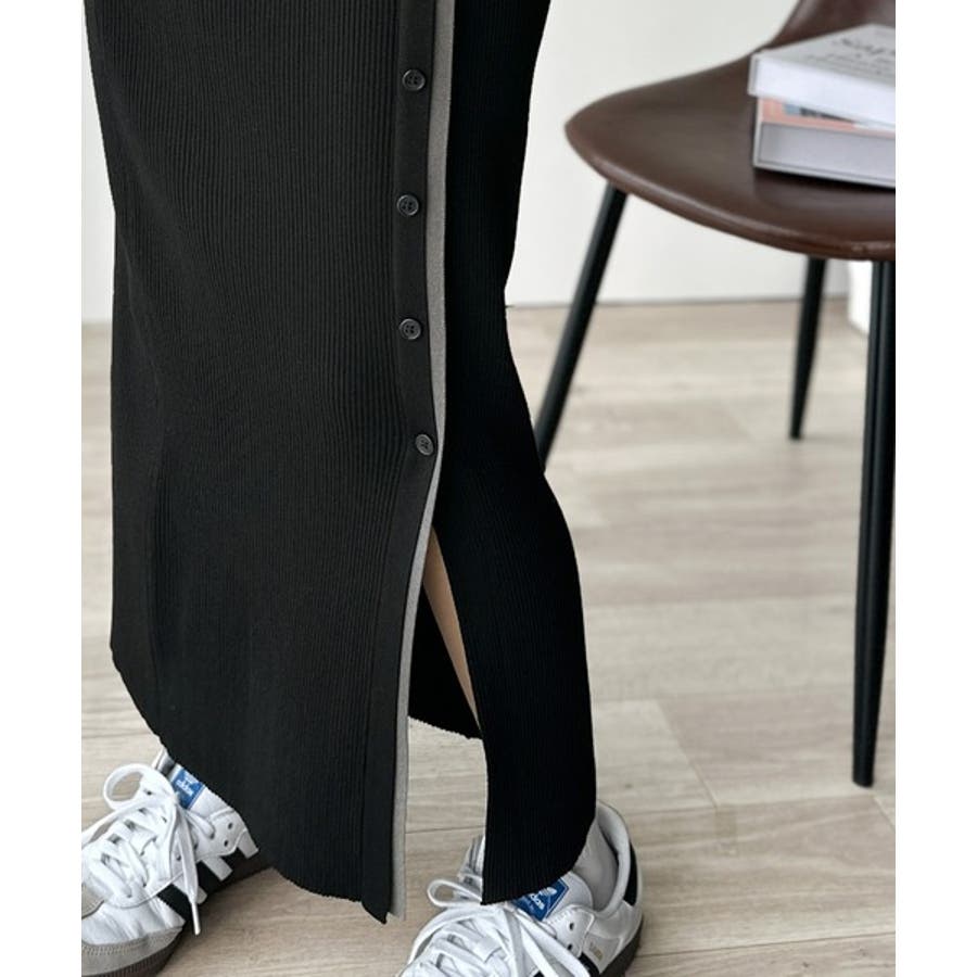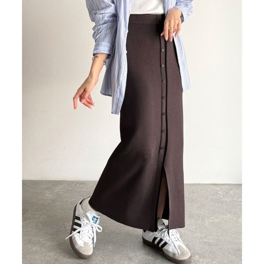 前後2wayで着まわせる!配色ボタンラインリブスカート(ロング丈)