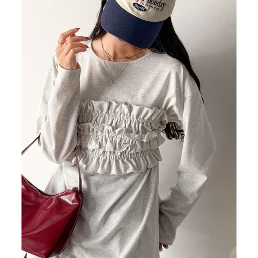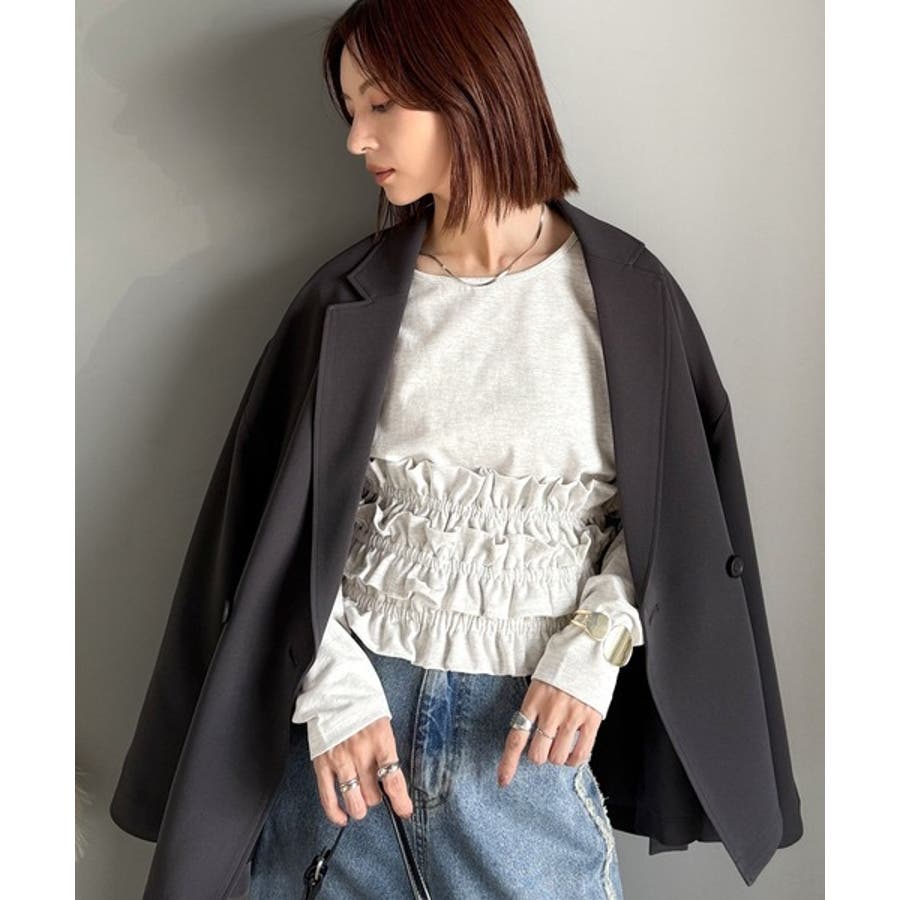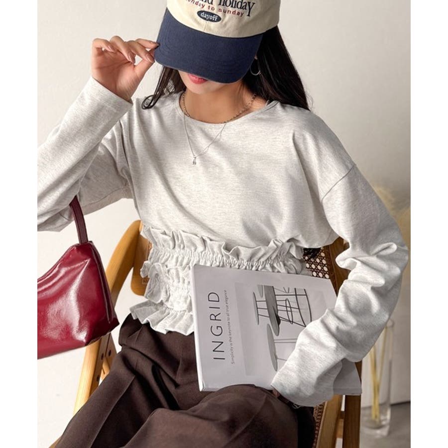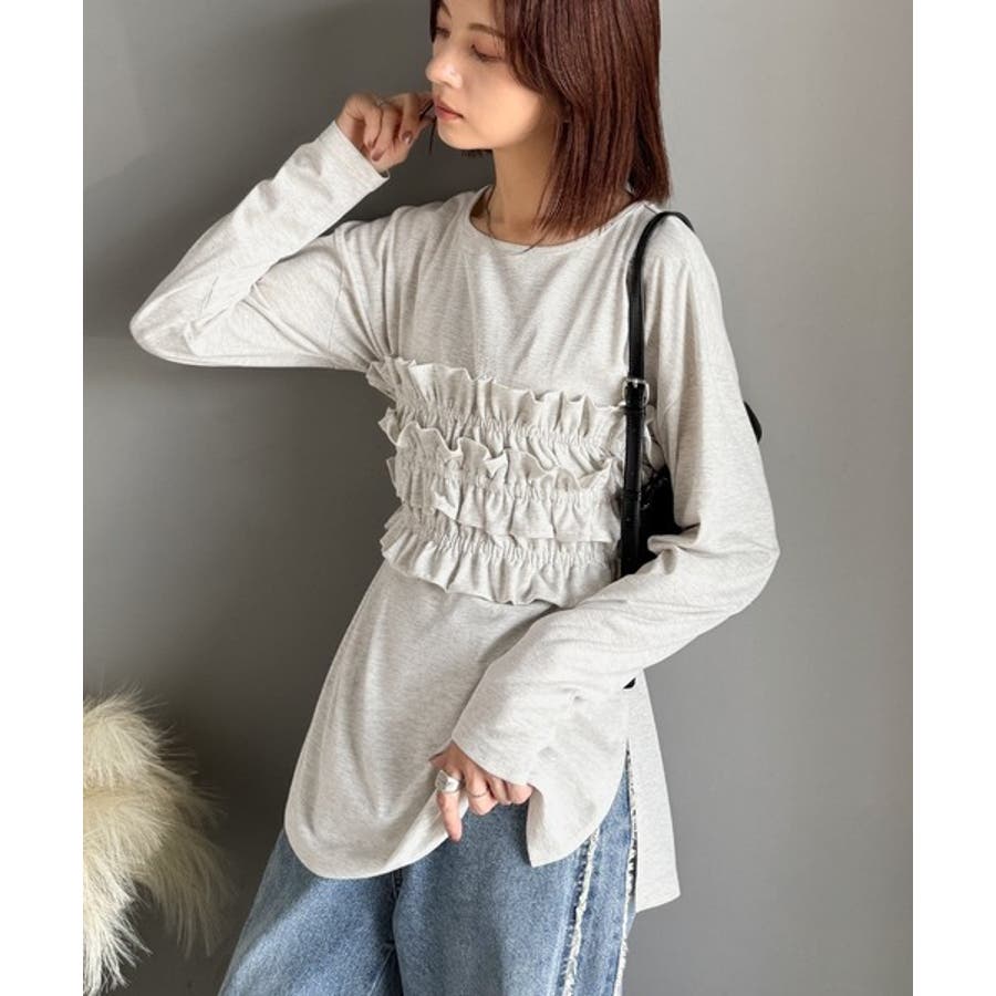 甘すぎない大人なフェミニン◎フリルビスチェベルトセットカットソートップス(長袖)