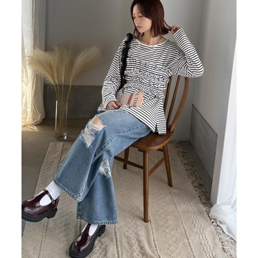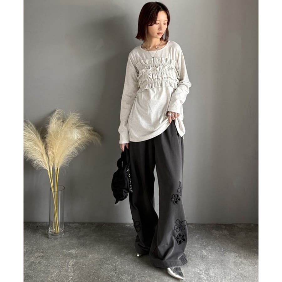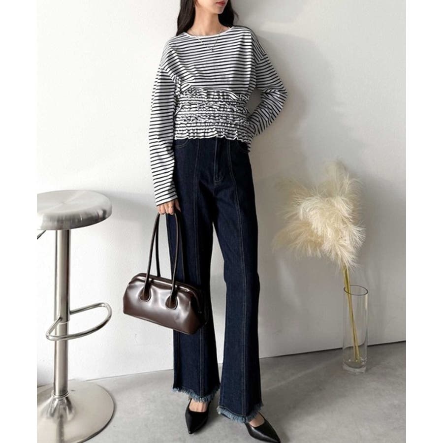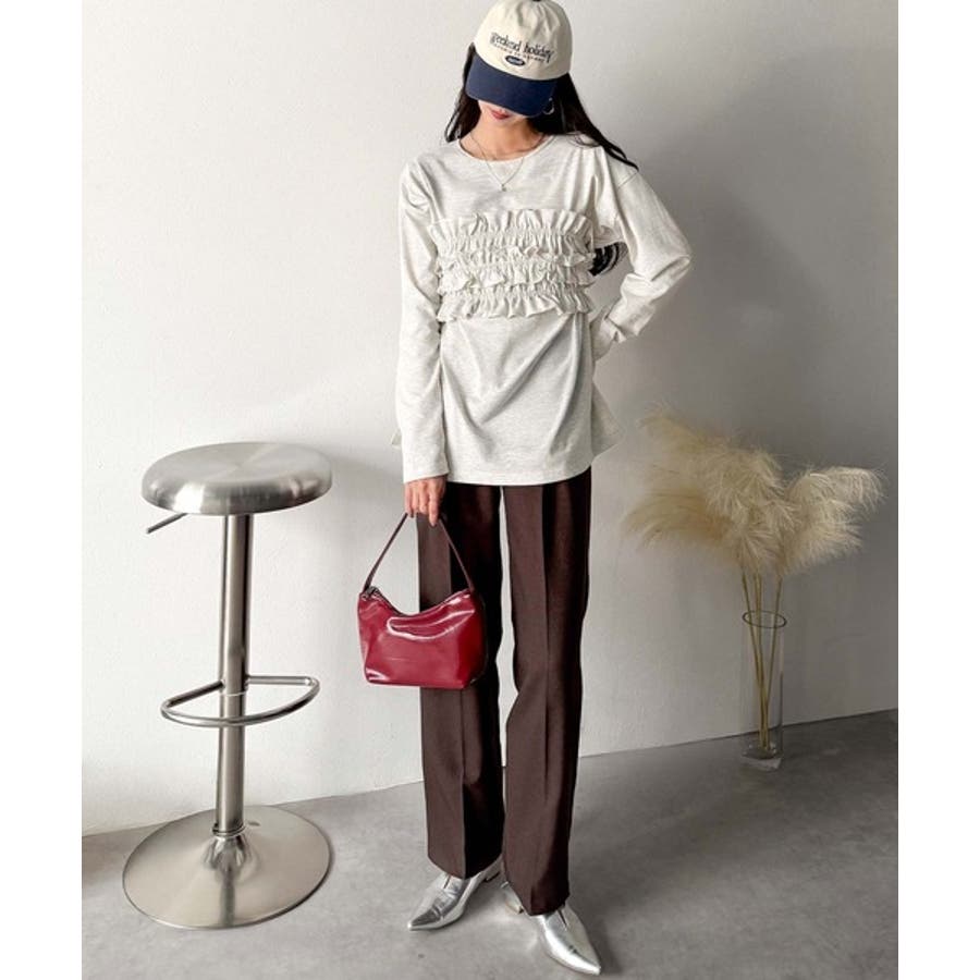甘すぎない大人なフェミニン◎フリルビスチェベルトセットカットソートップス(長袖)
