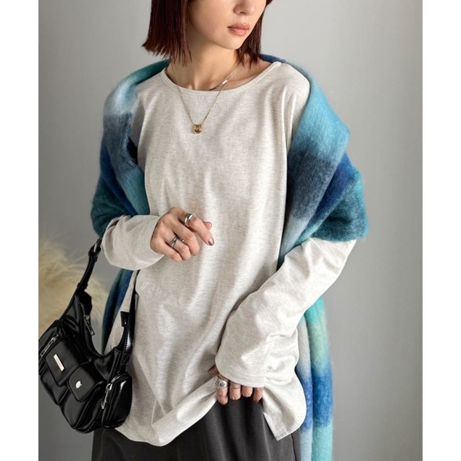 程よい身幅のロンTはシンプルなデザインで、単体でも着用可能。