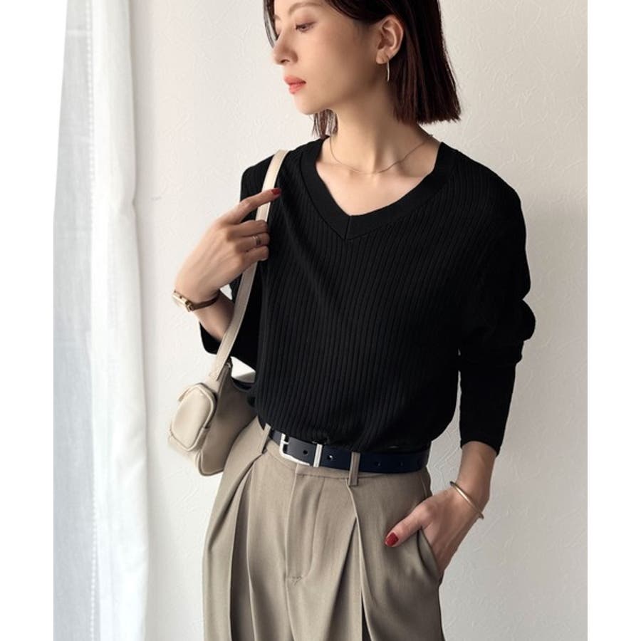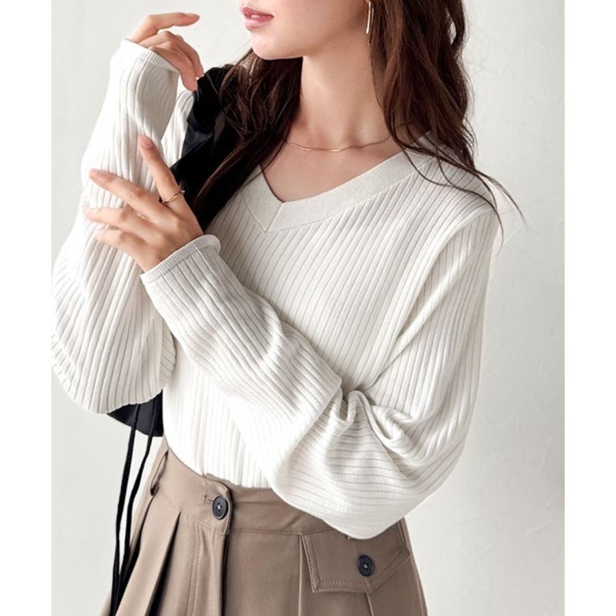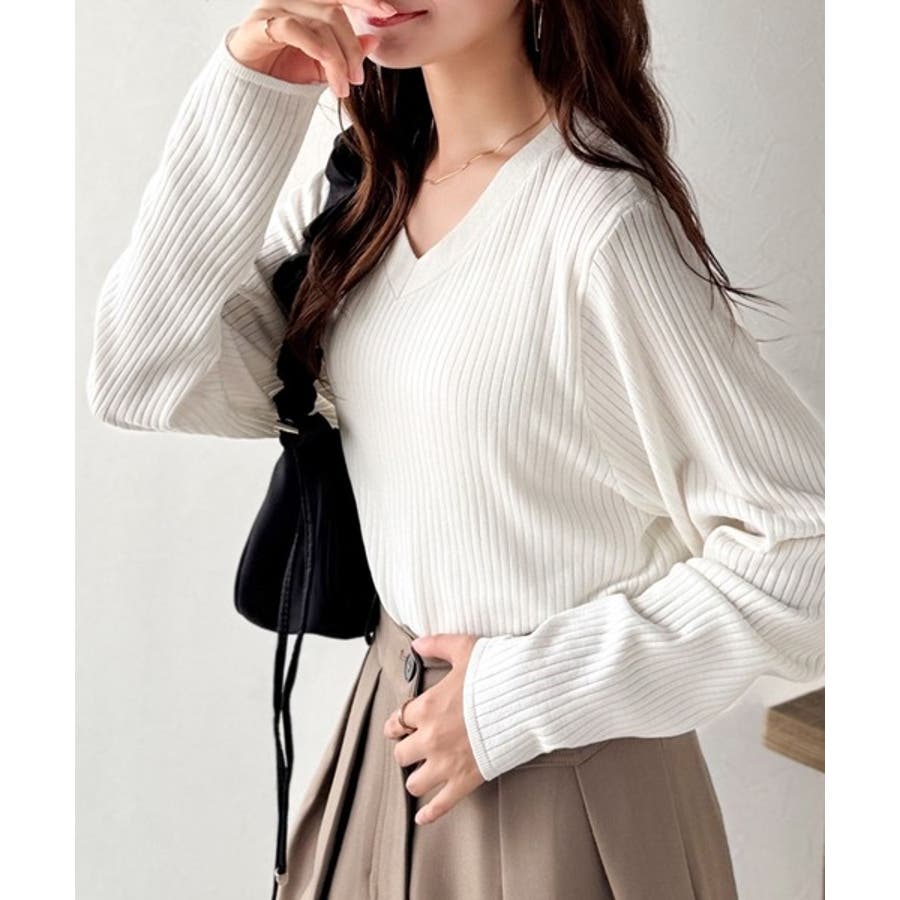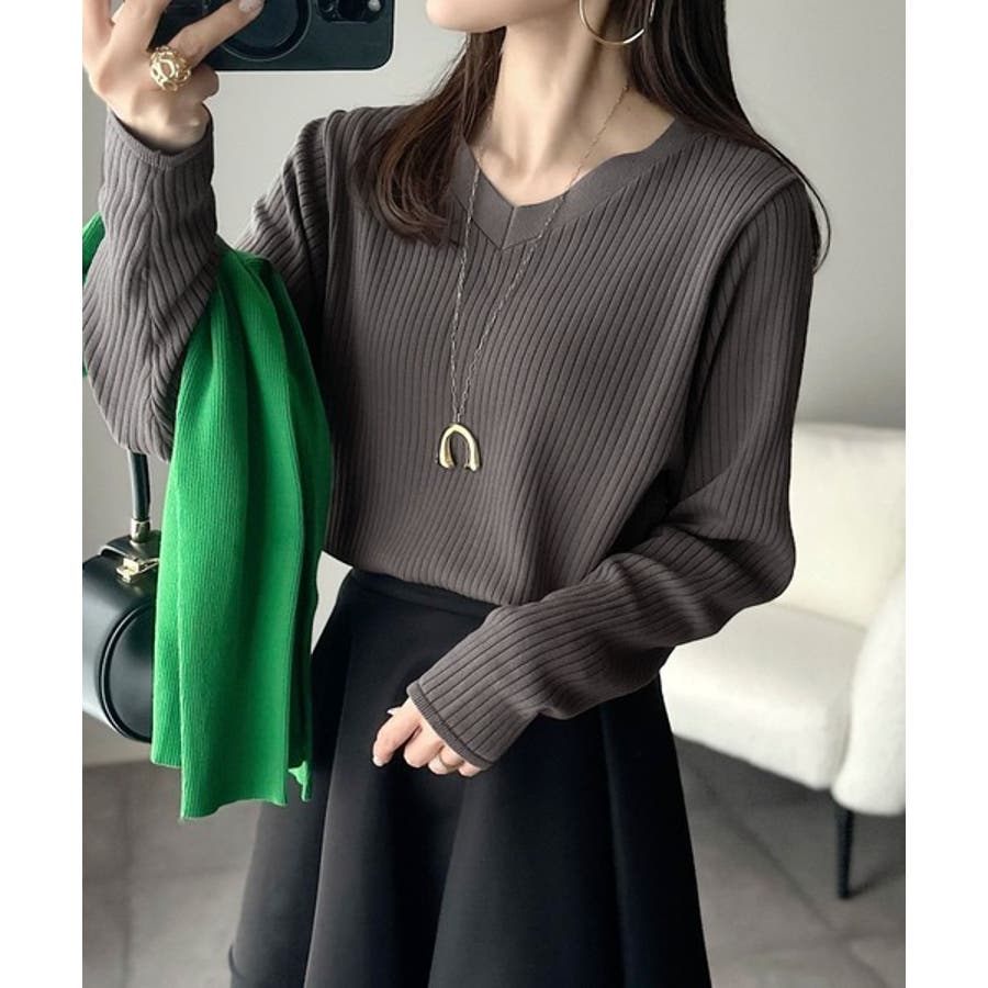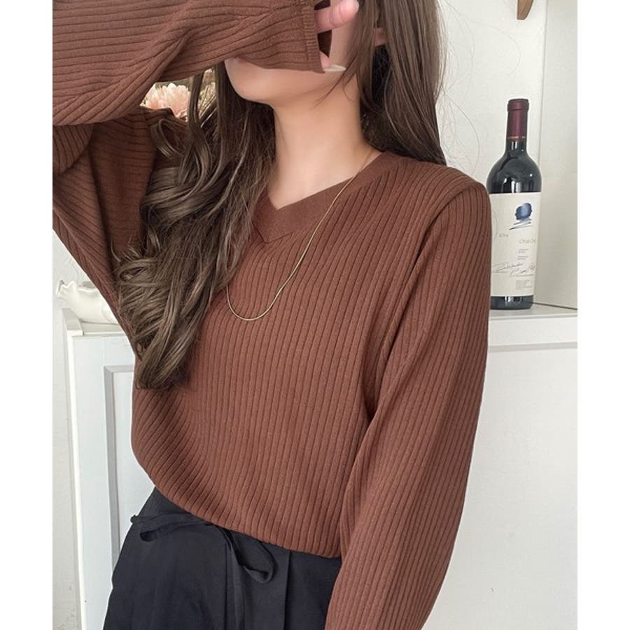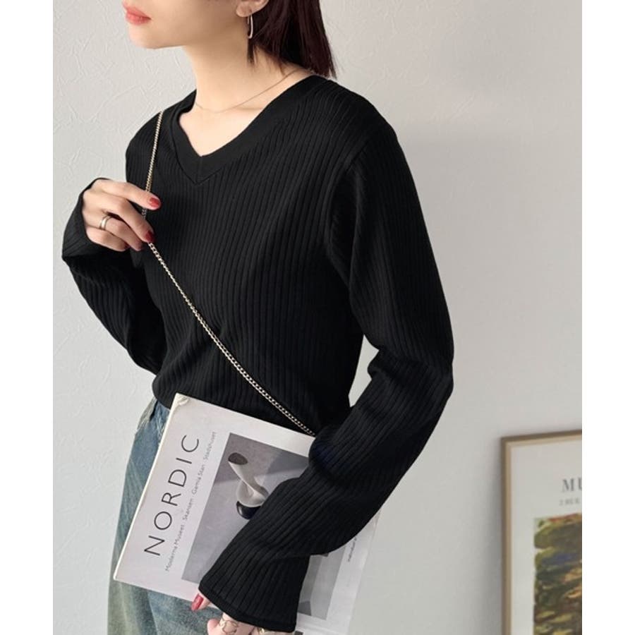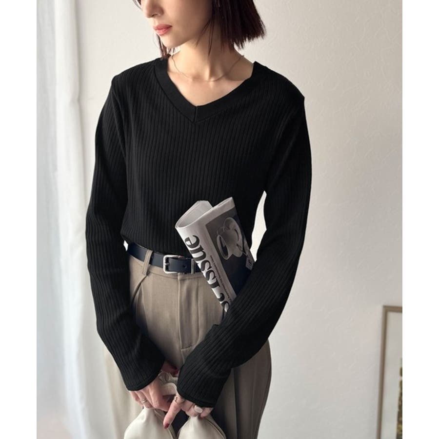デコルテ美人。着映えVネックシンプルリブニット(長袖)
