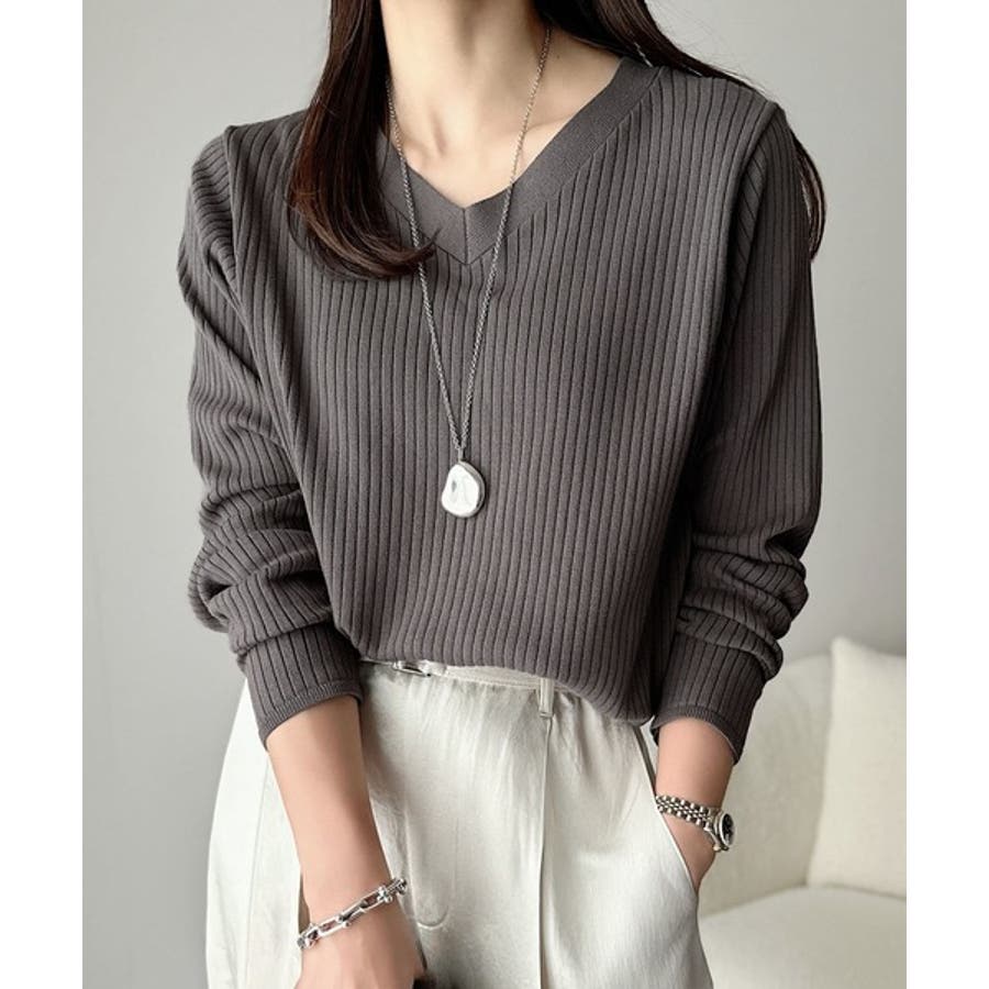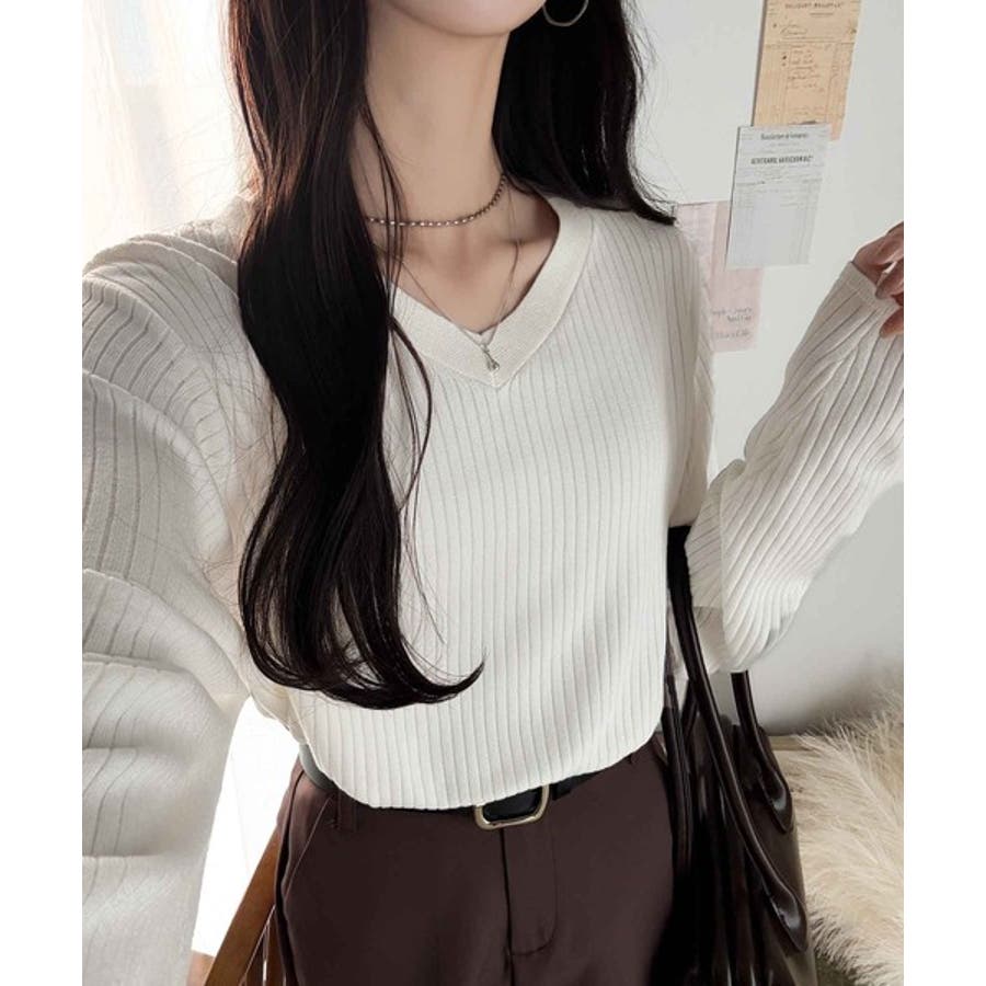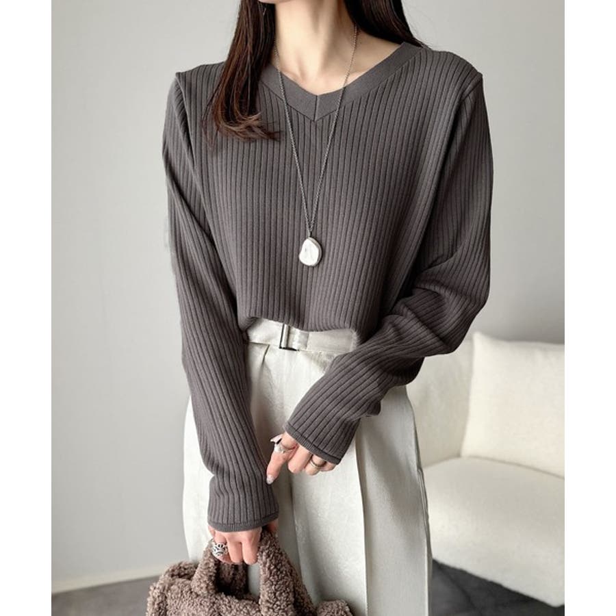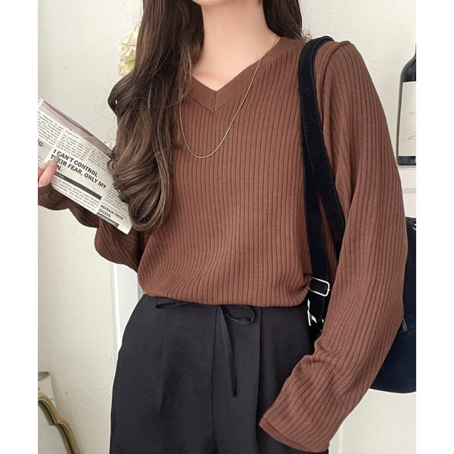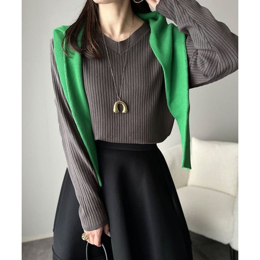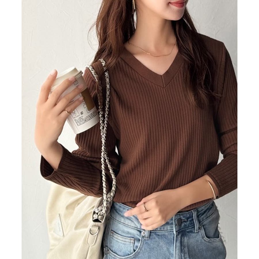デコルテ美人。着映えVネックシンプルリブニット(長袖)