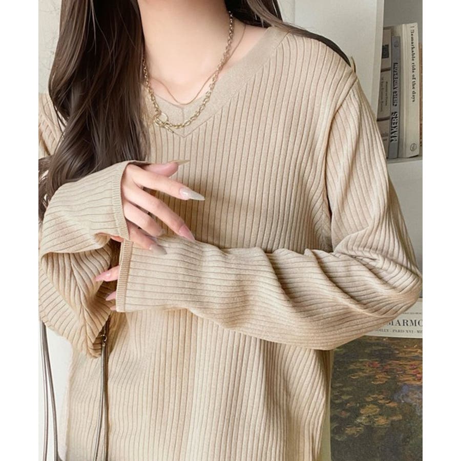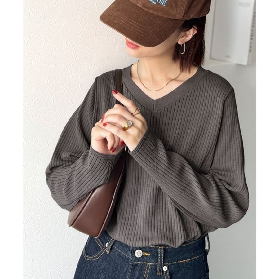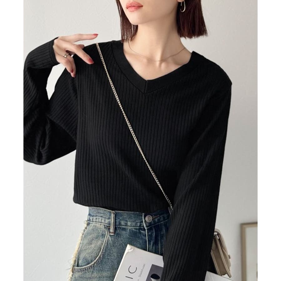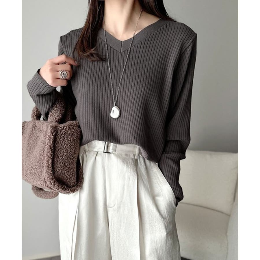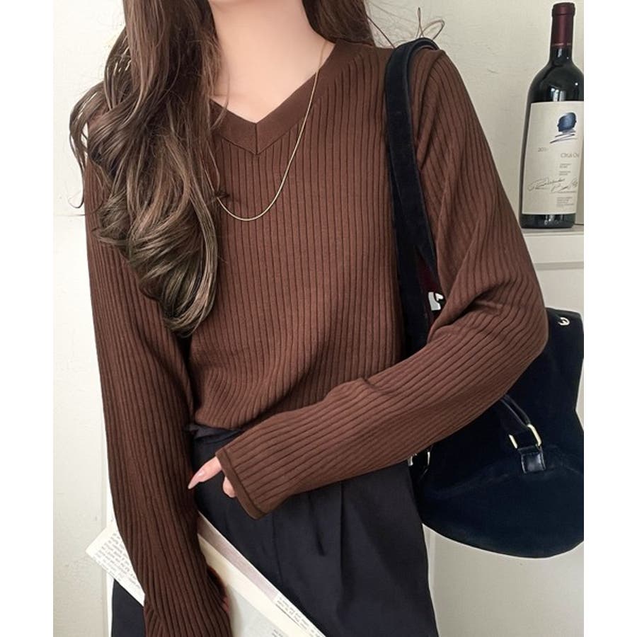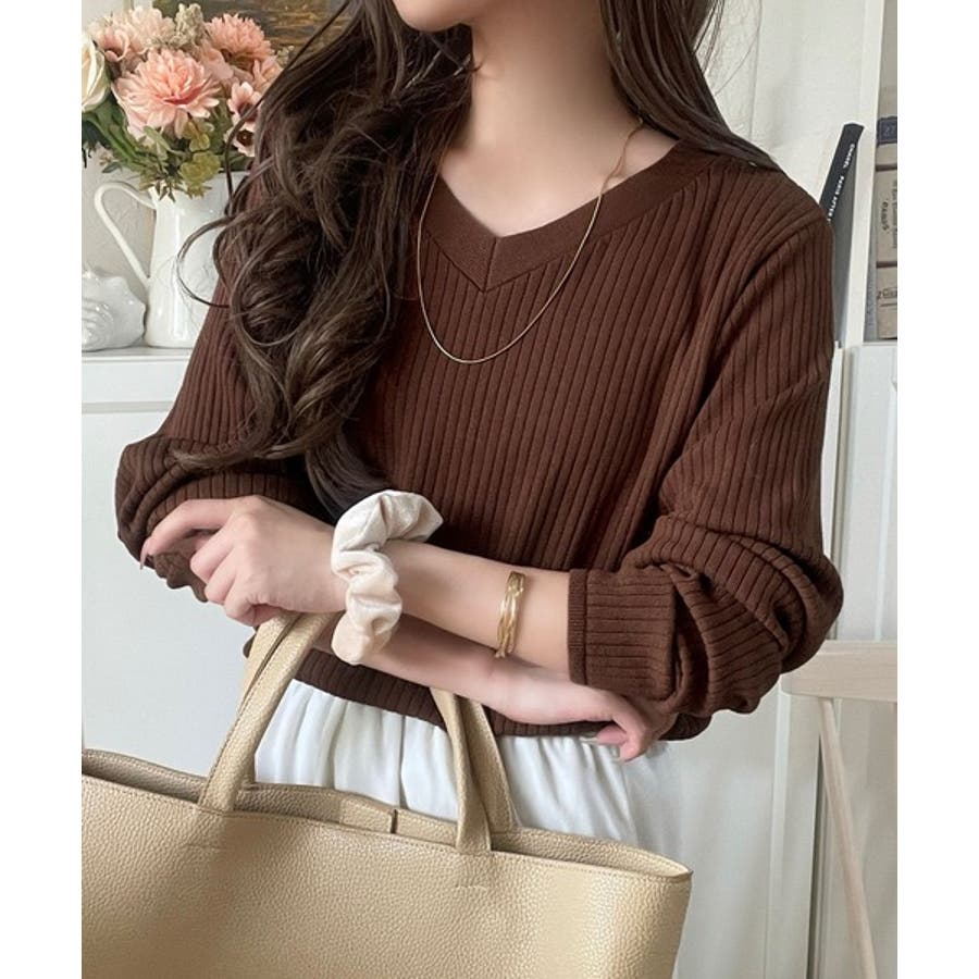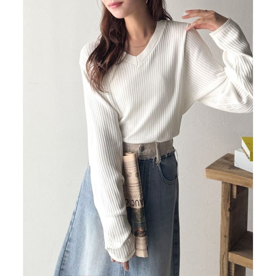 デコルテ美人。着映えVネックシンプルリブニット(長袖)