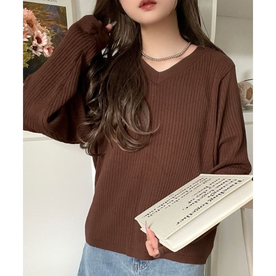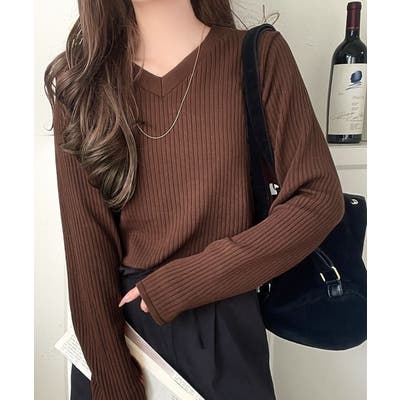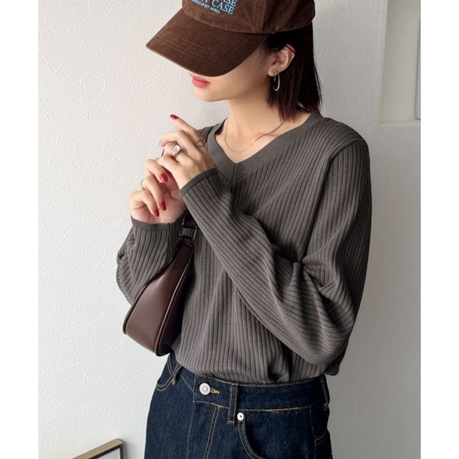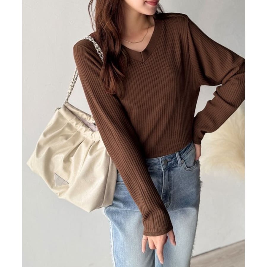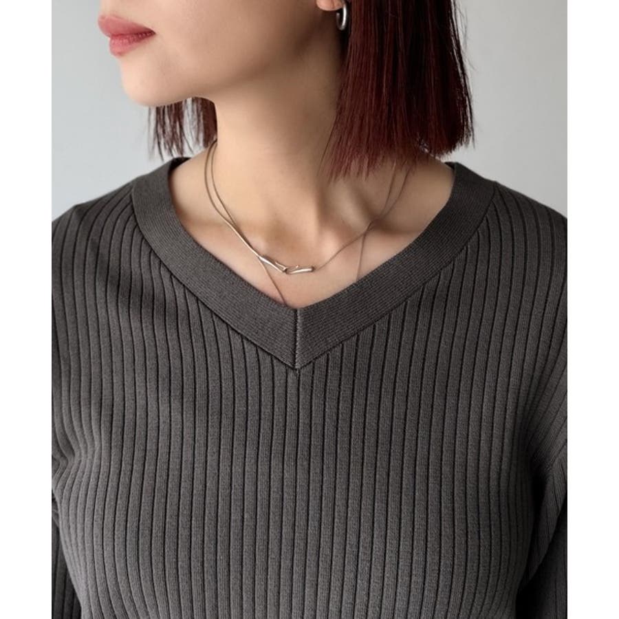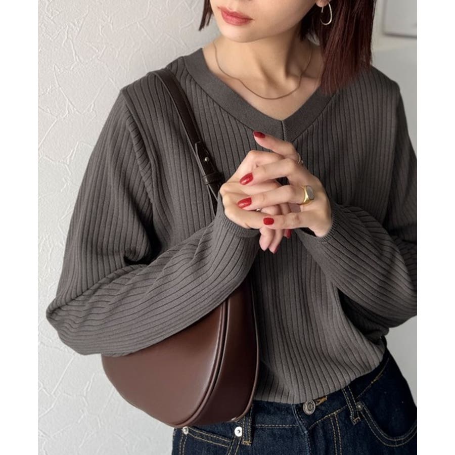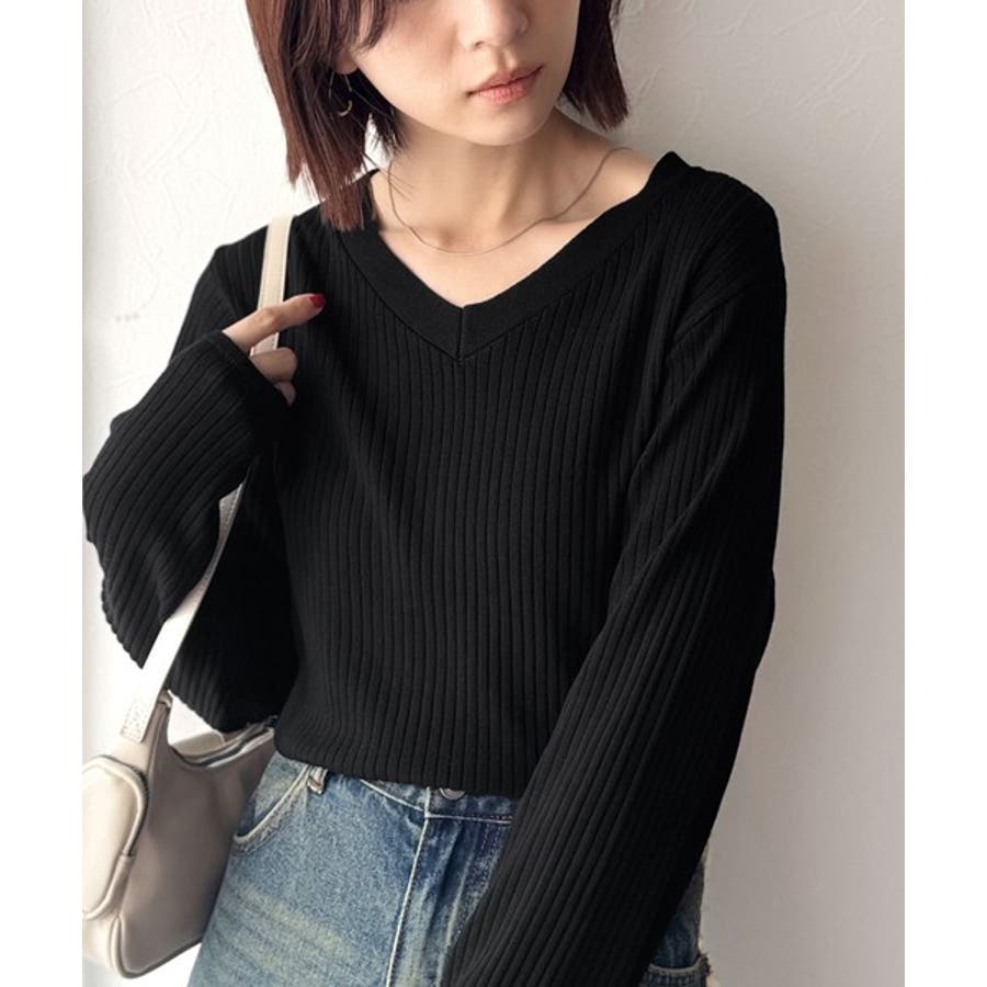 デコルテ美人。着映えVネックシンプルリブニット(長袖)