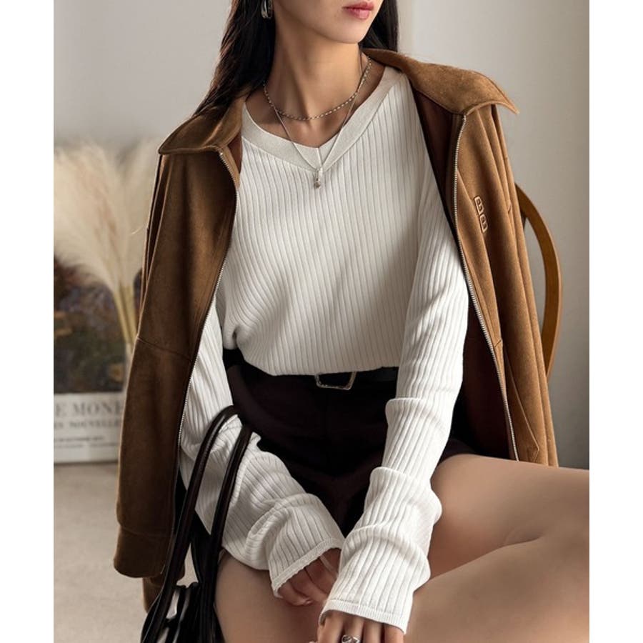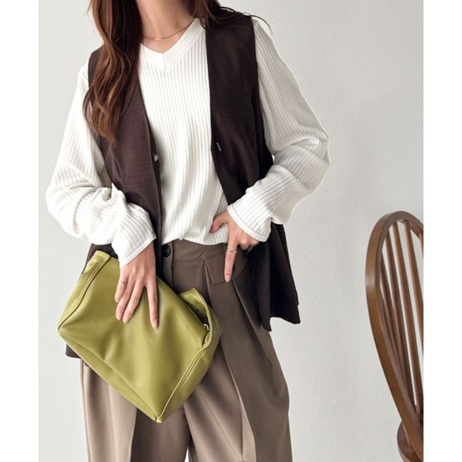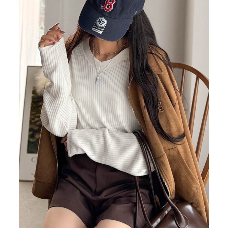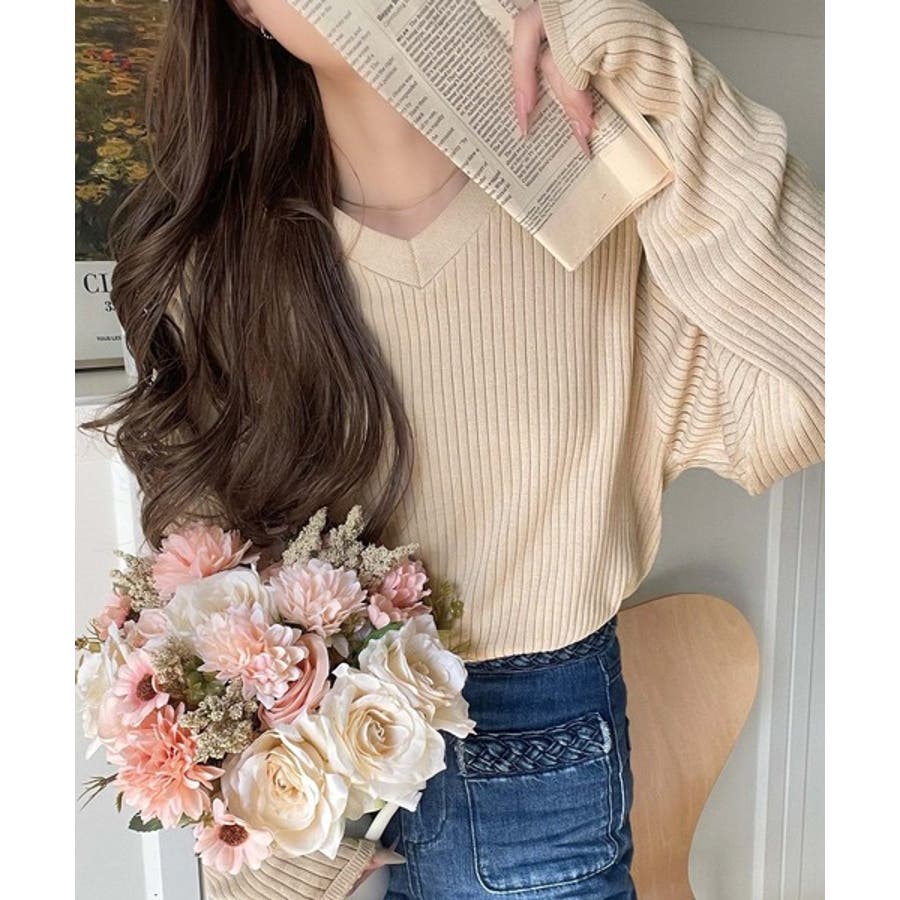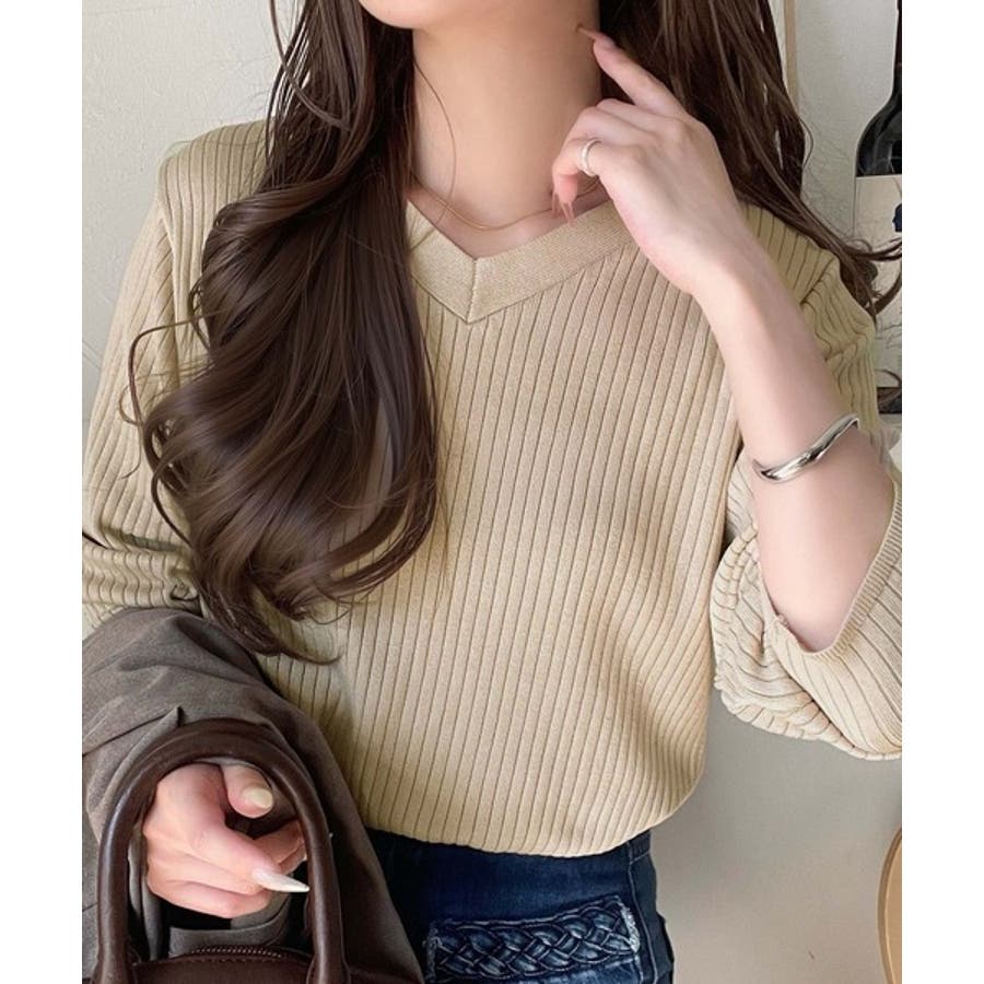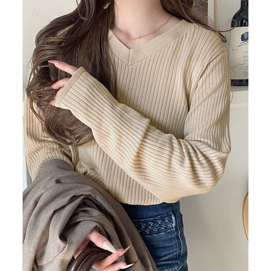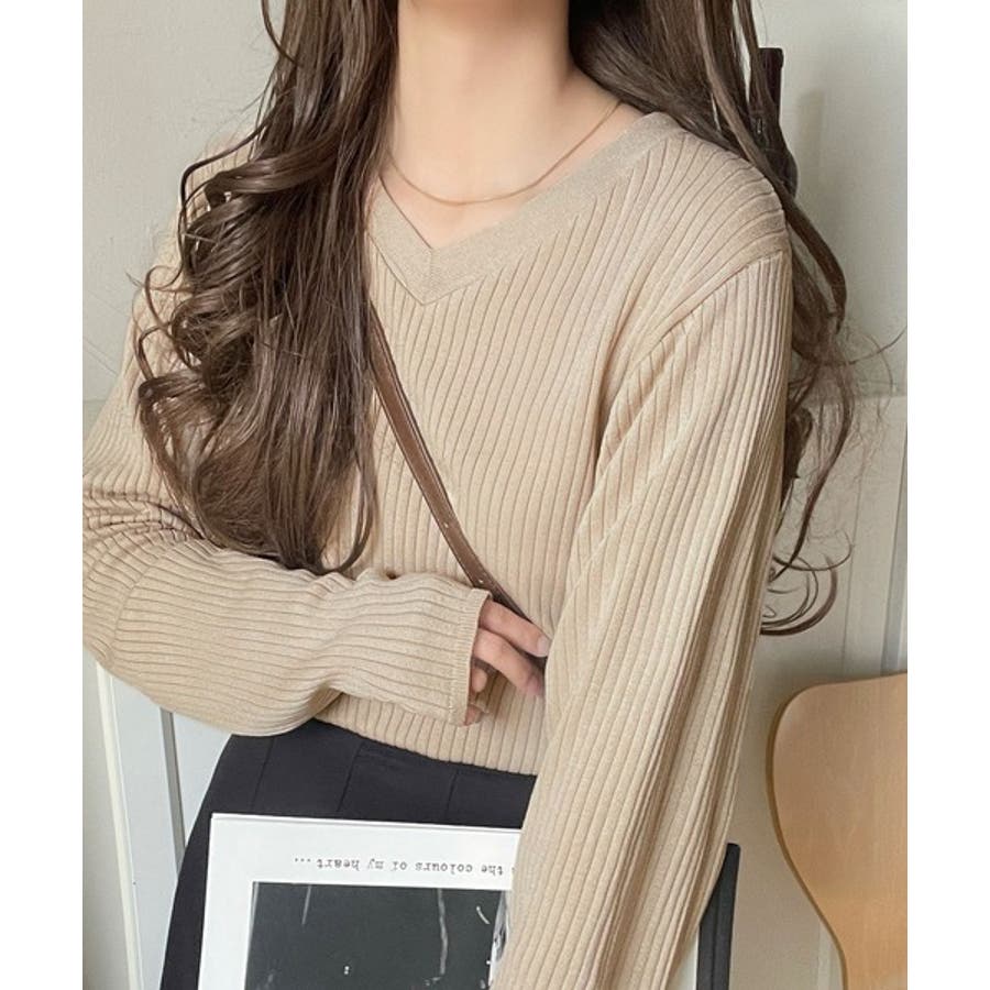デコルテ美人。着映えVネックシンプルリブニット(長袖)