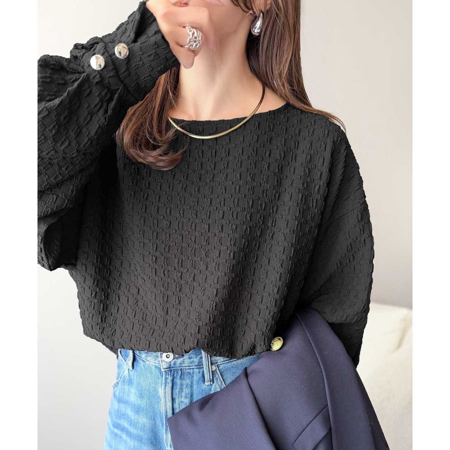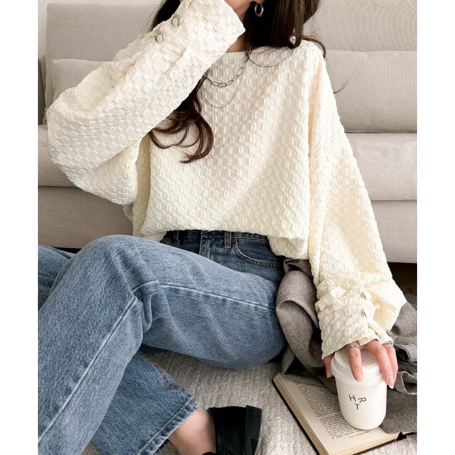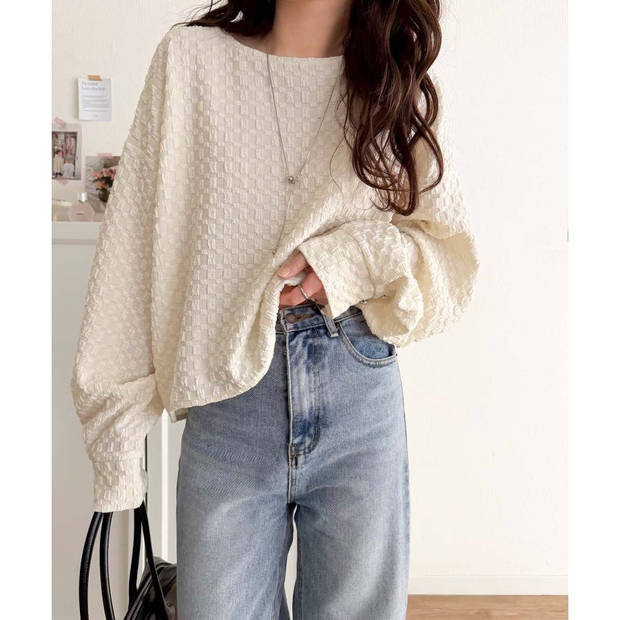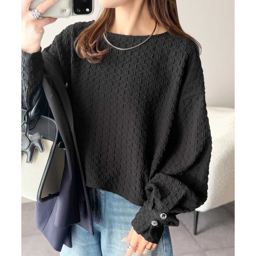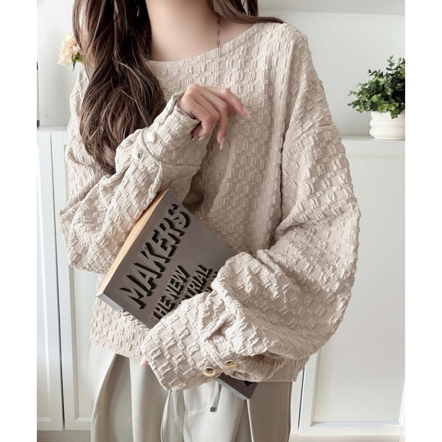 凹凸感のある素材とワイドシルエットが特徴的なプルオーバー。