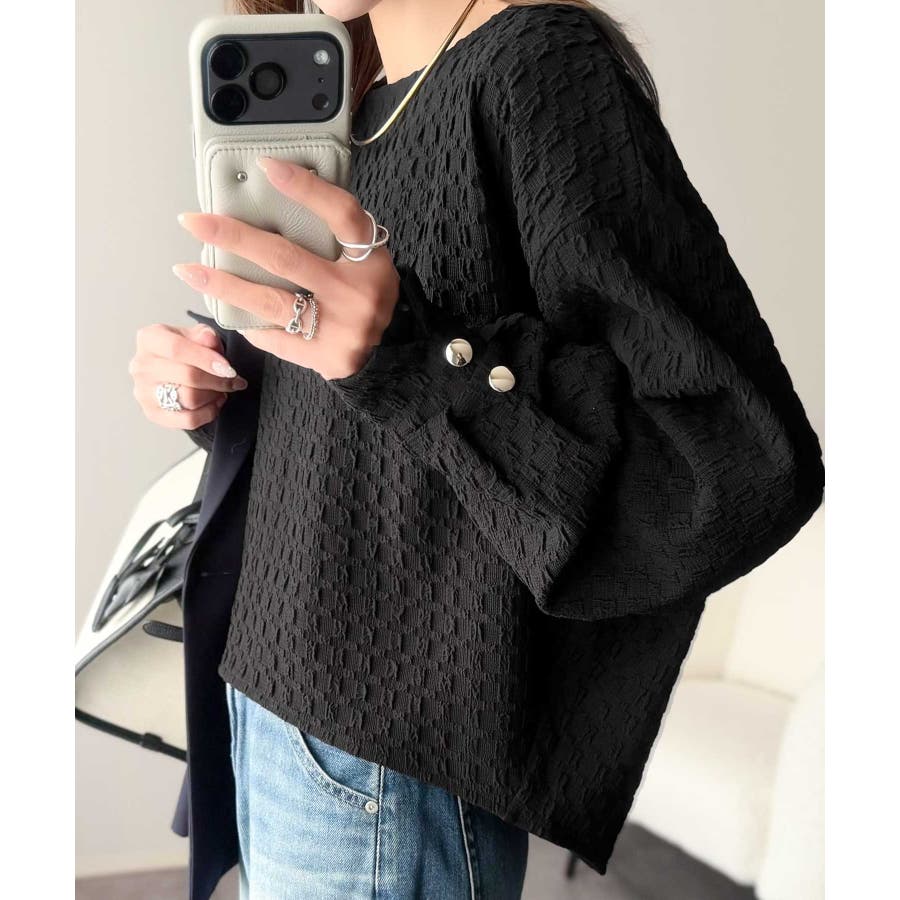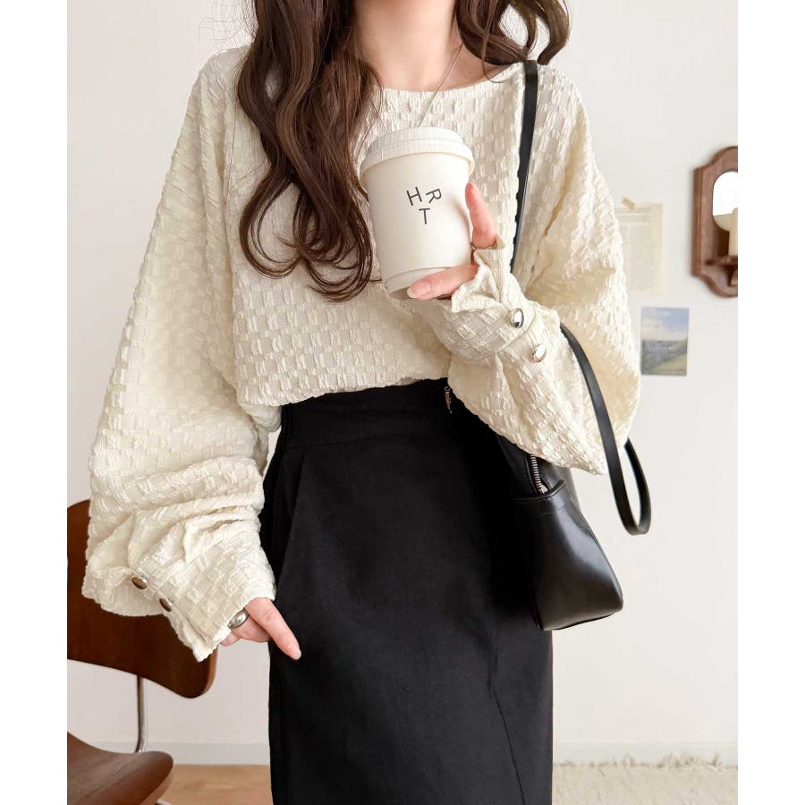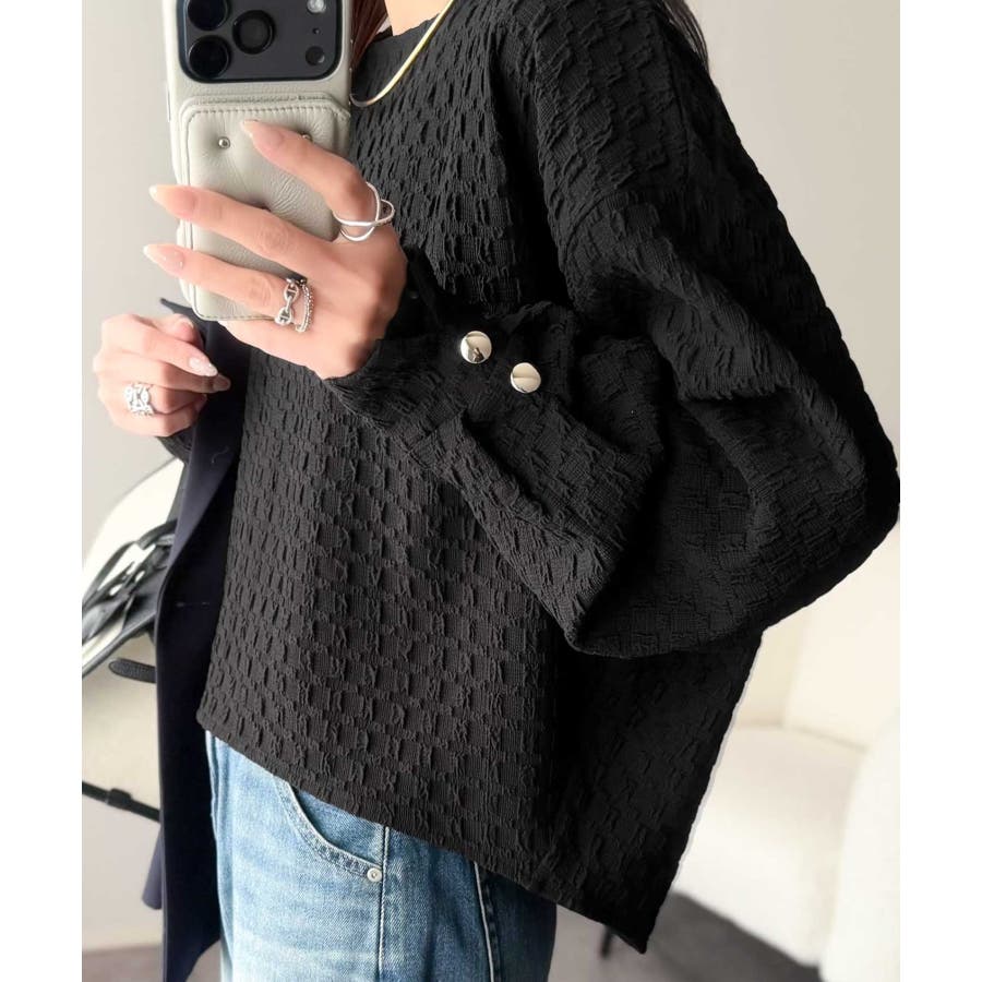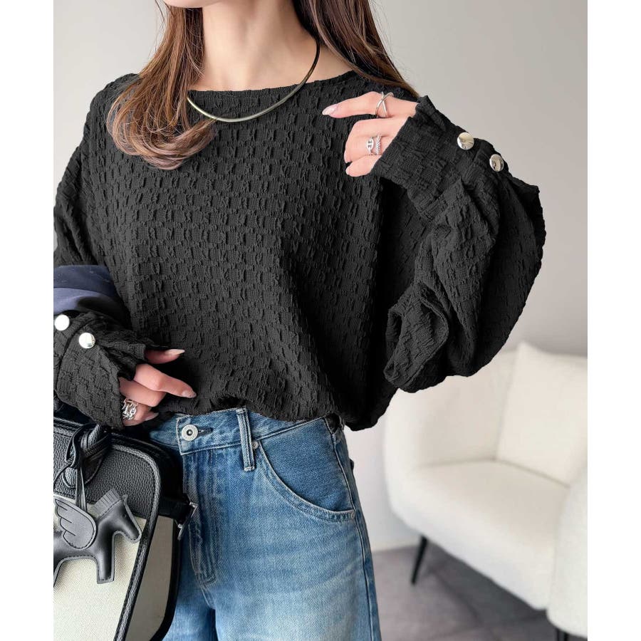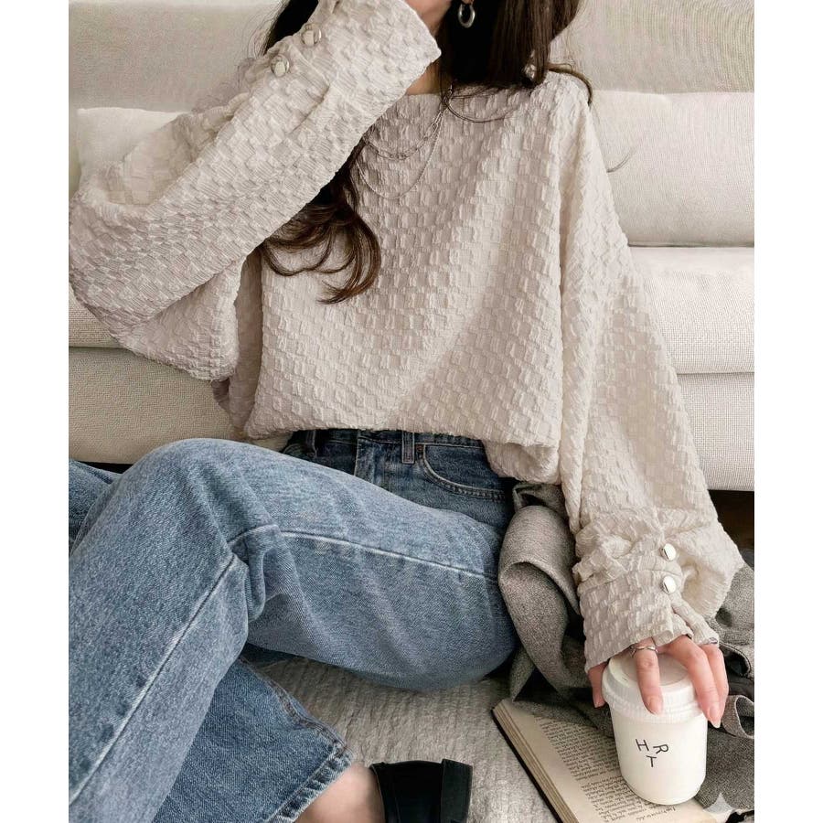 凹凸感のある素材とワイドシルエットが特徴的なプルオーバー。