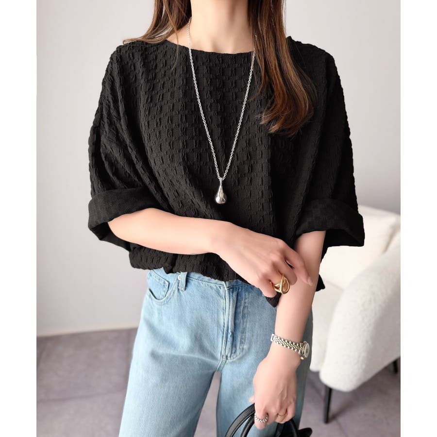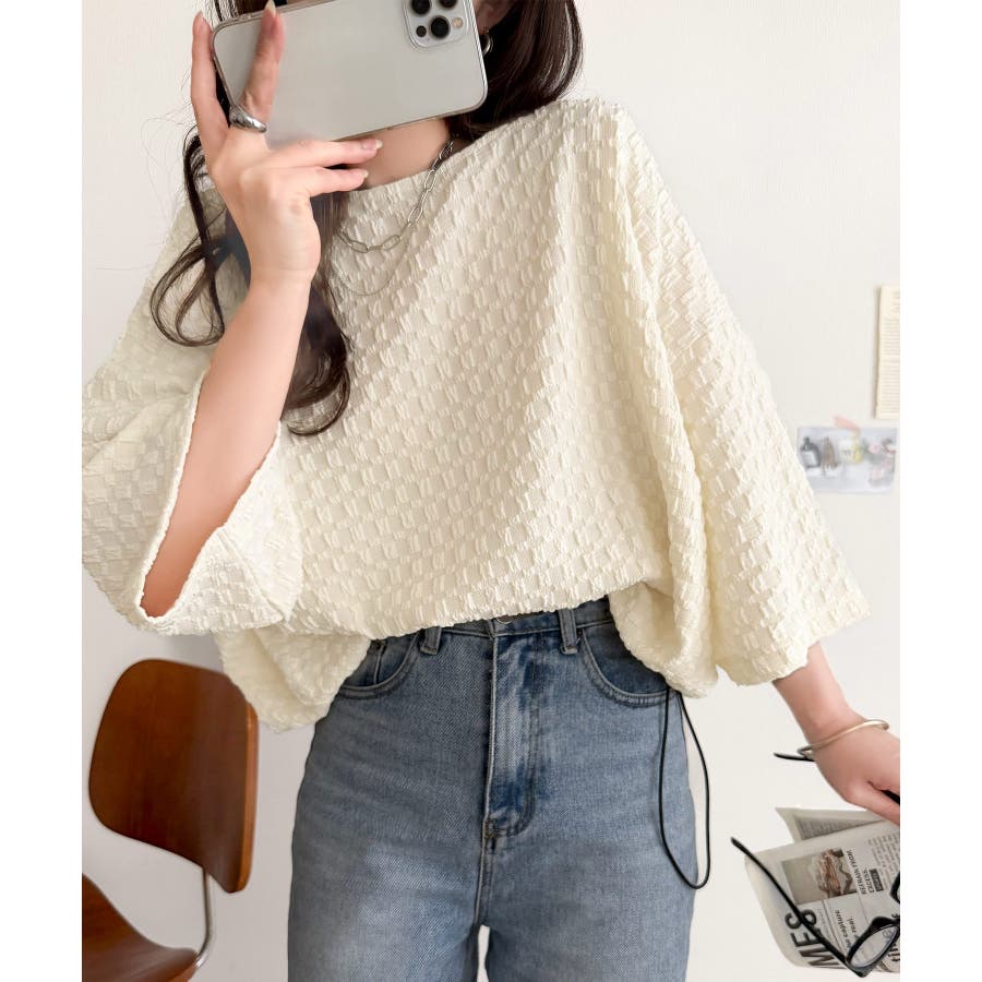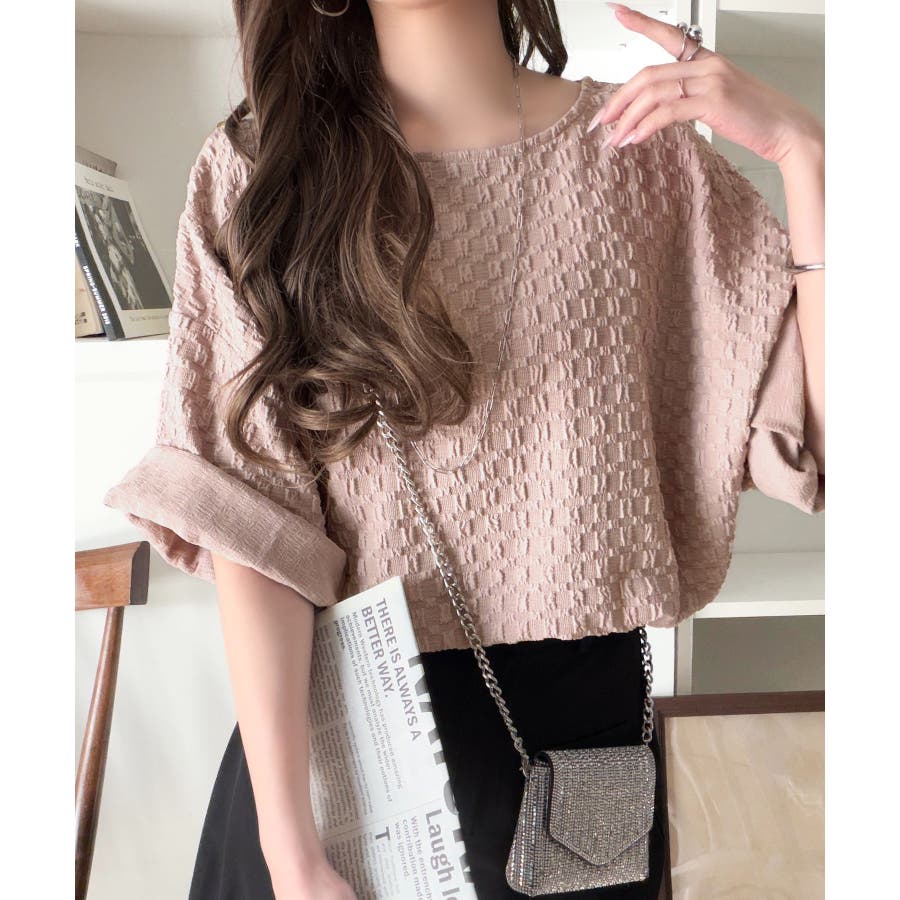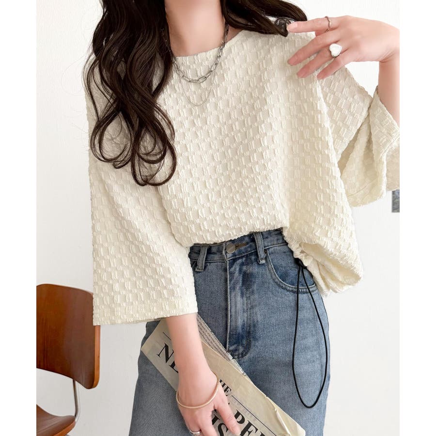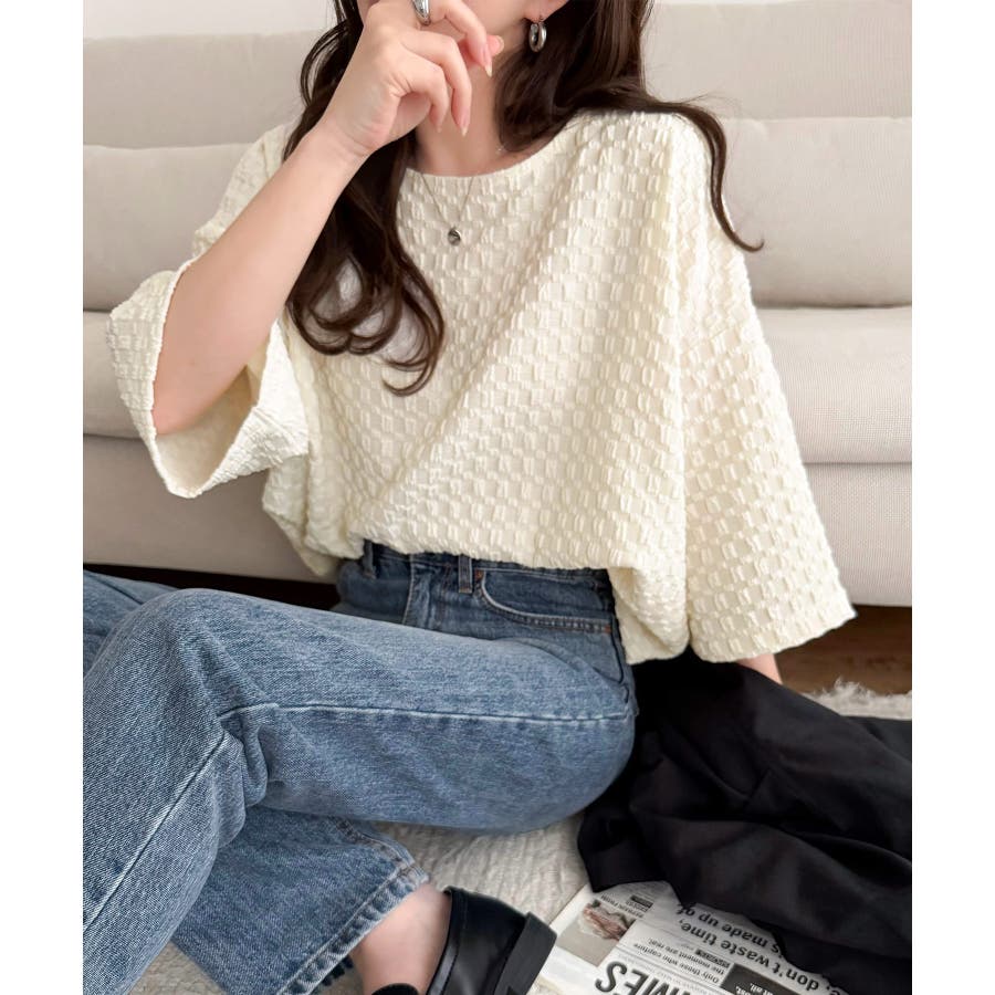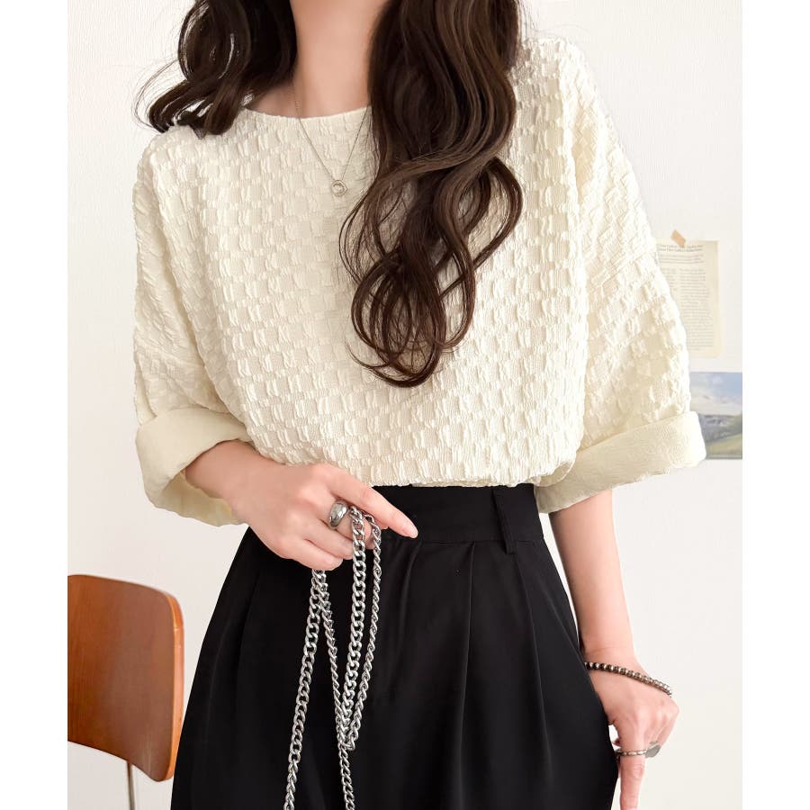 膨らみのあるカットジャガード素材を使用した半袖プルオーバー♪