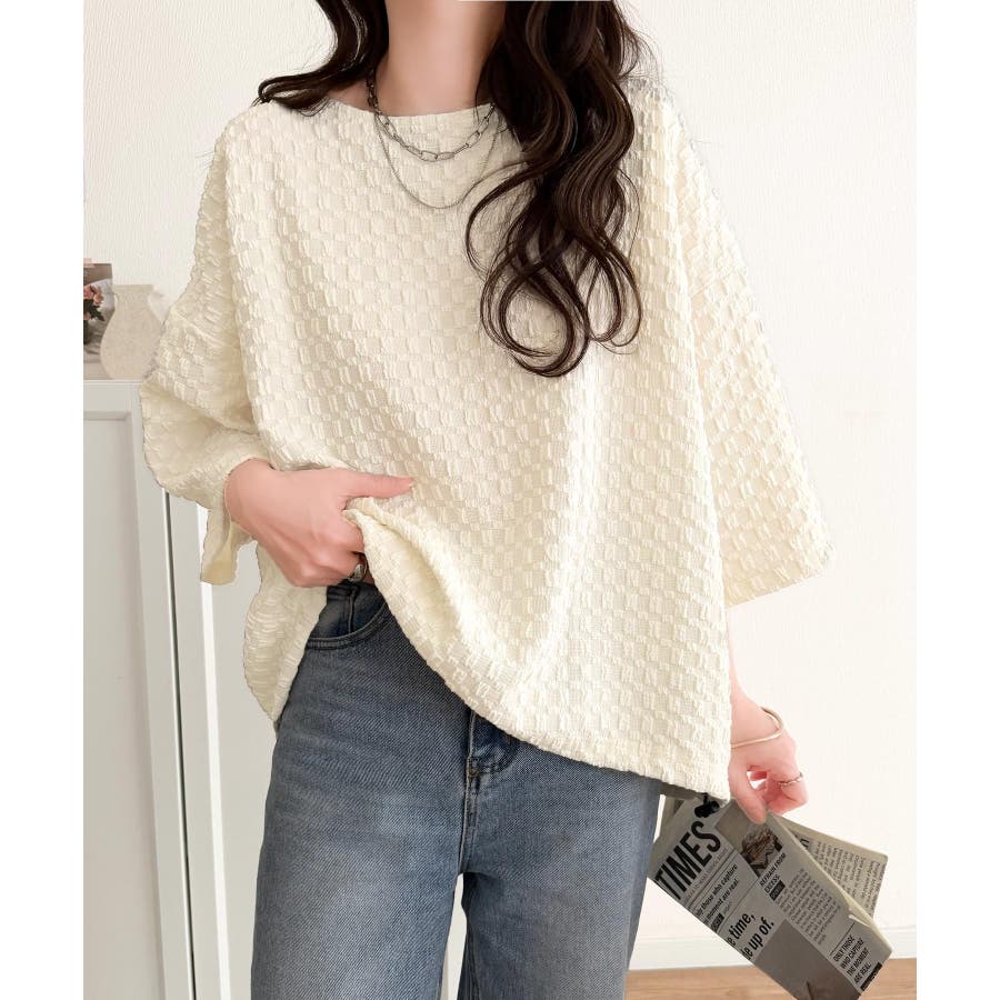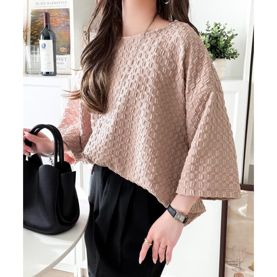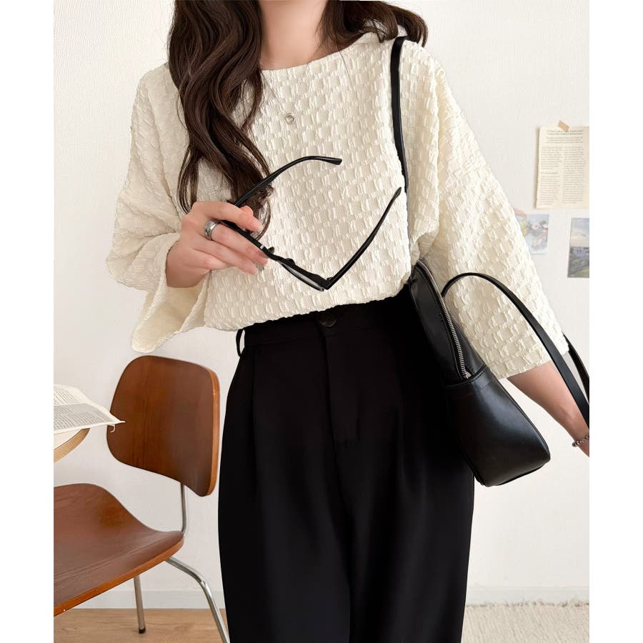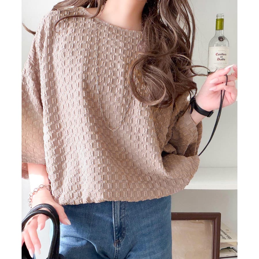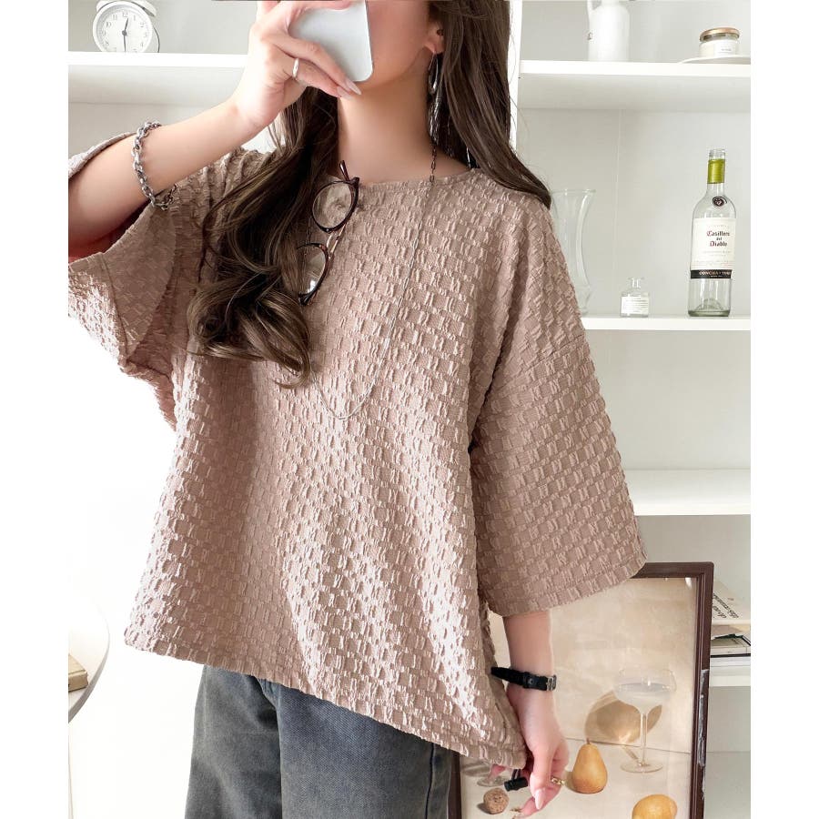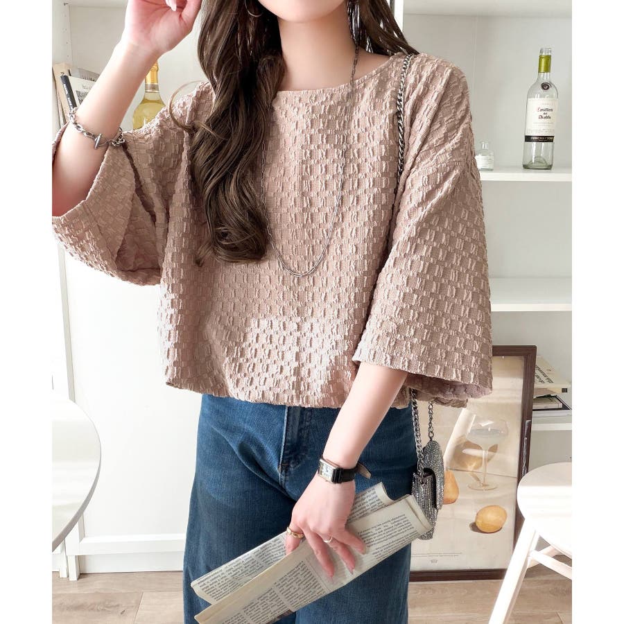膨らみのあるカットジャガード素材を使用した半袖プルオーバー♪