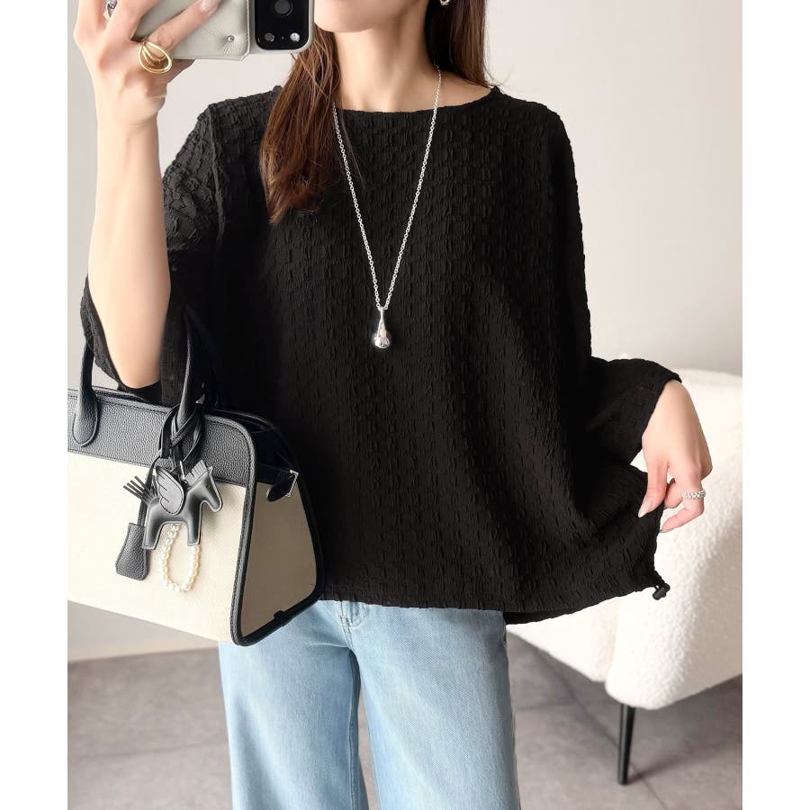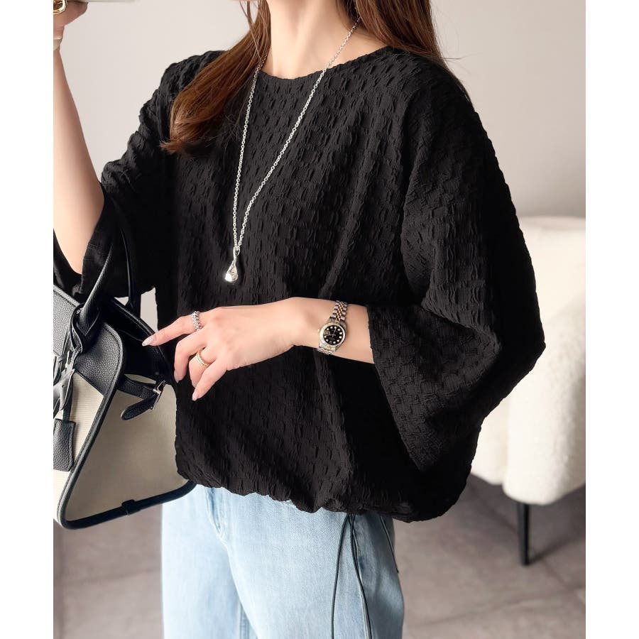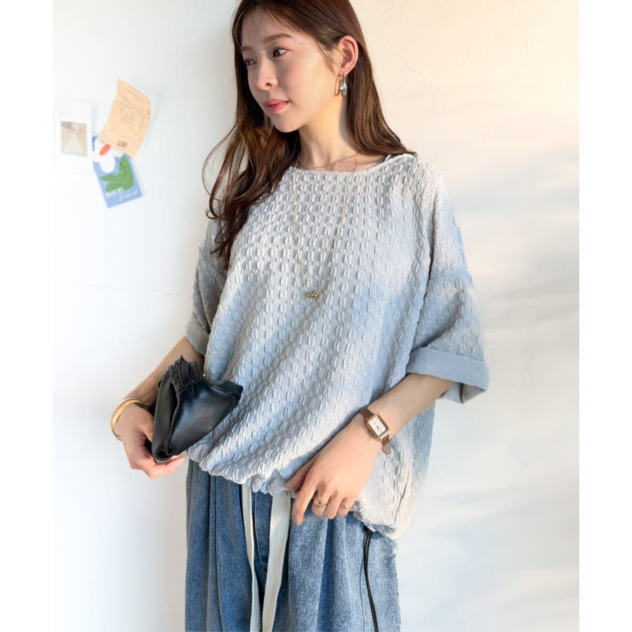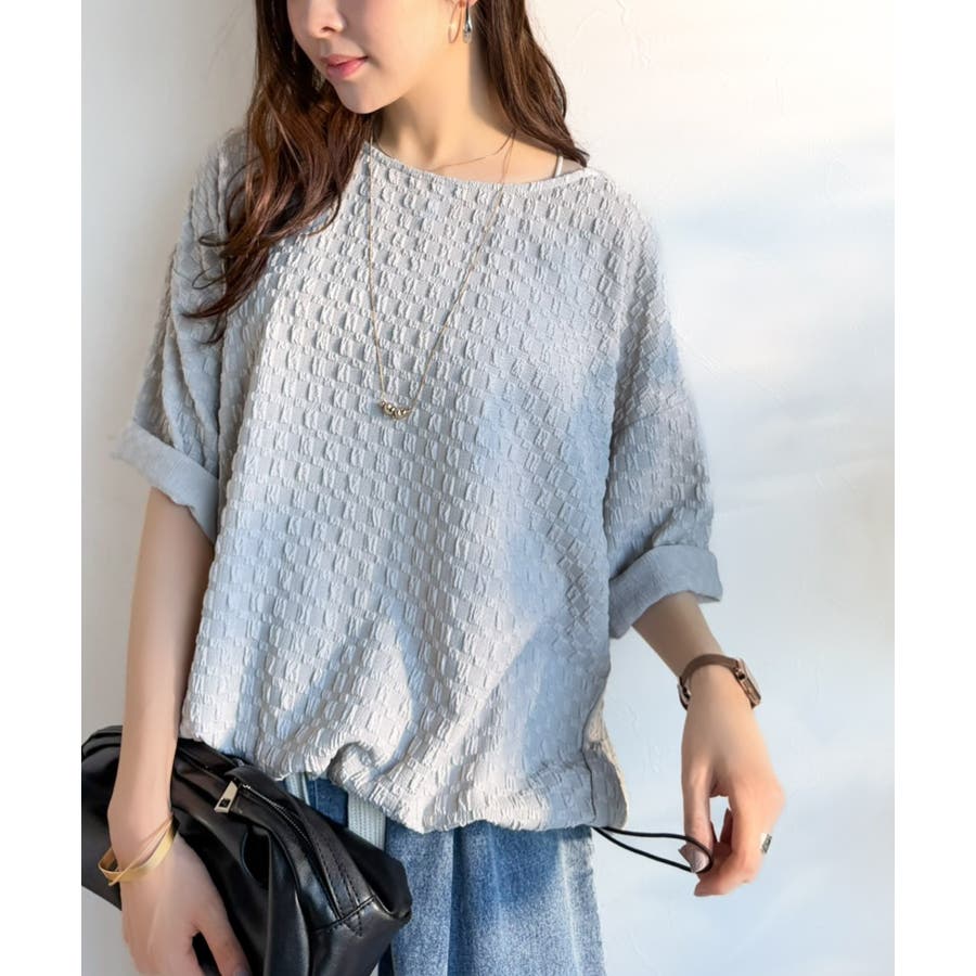 凹凸がコーデを上品に彩る♪前後差フクレジャガードドロストプルオーバー (半袖)
