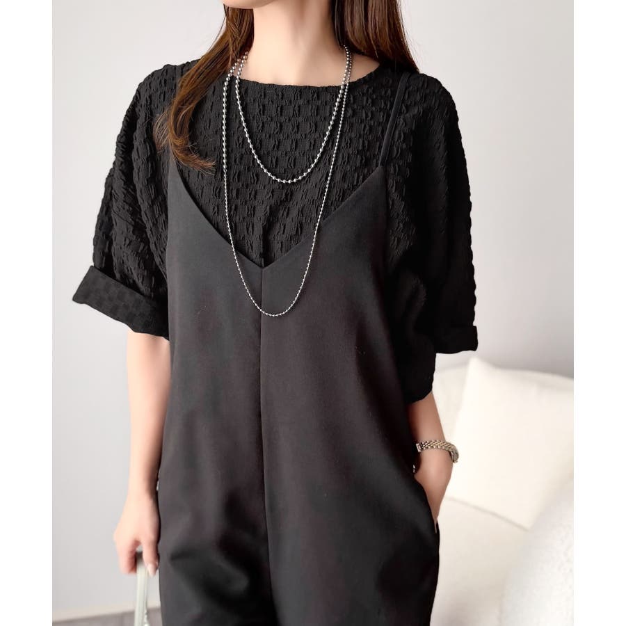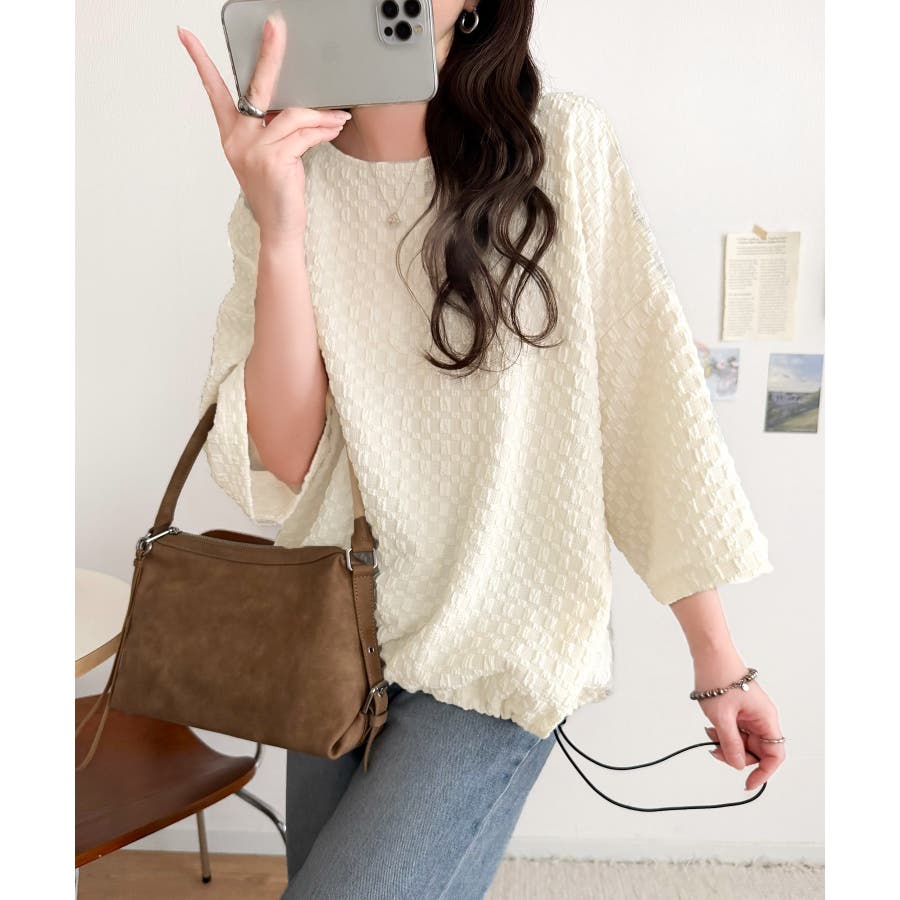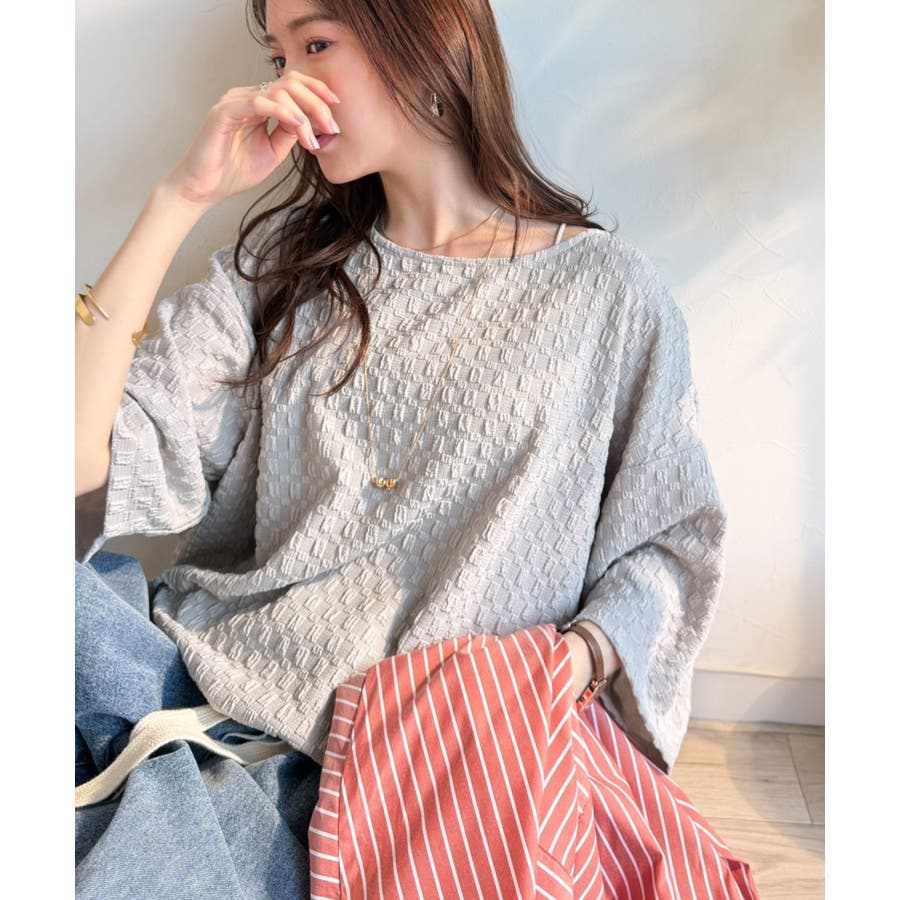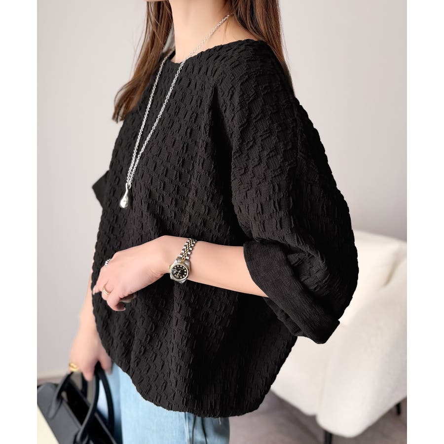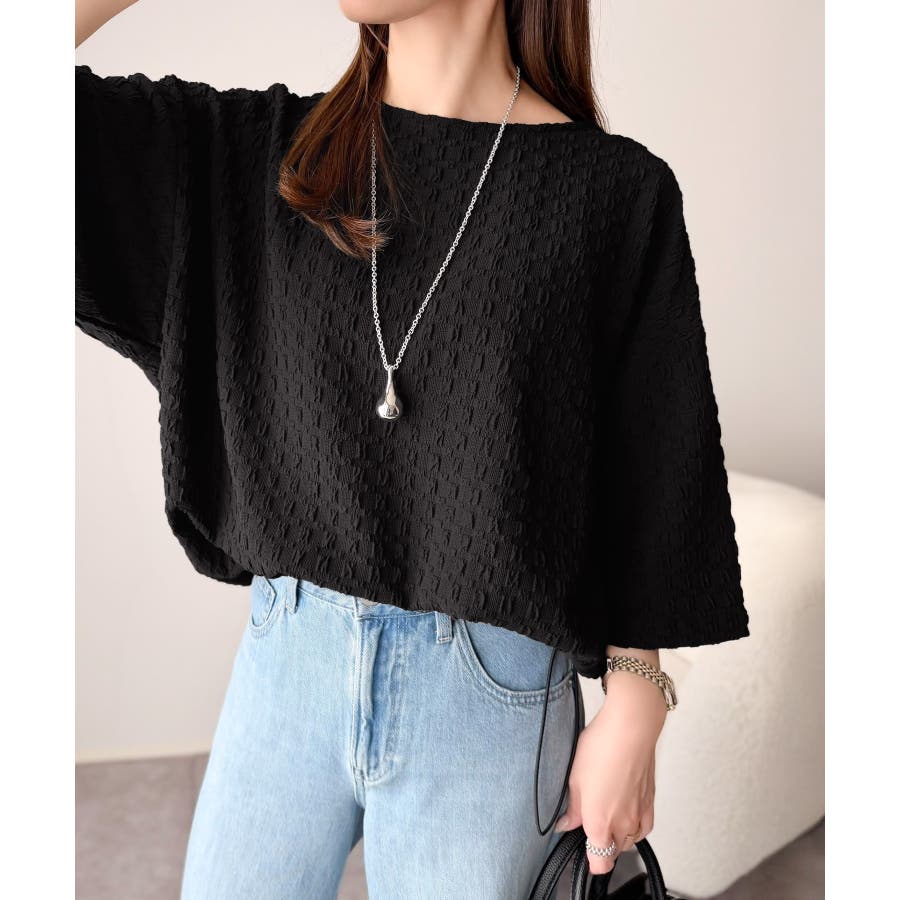 凹凸がコーデを上品に彩る♪前後差フクレジャガードドロストプルオーバー (半袖)