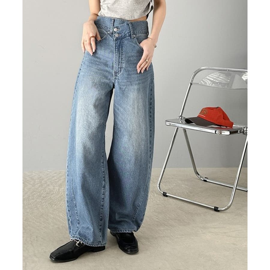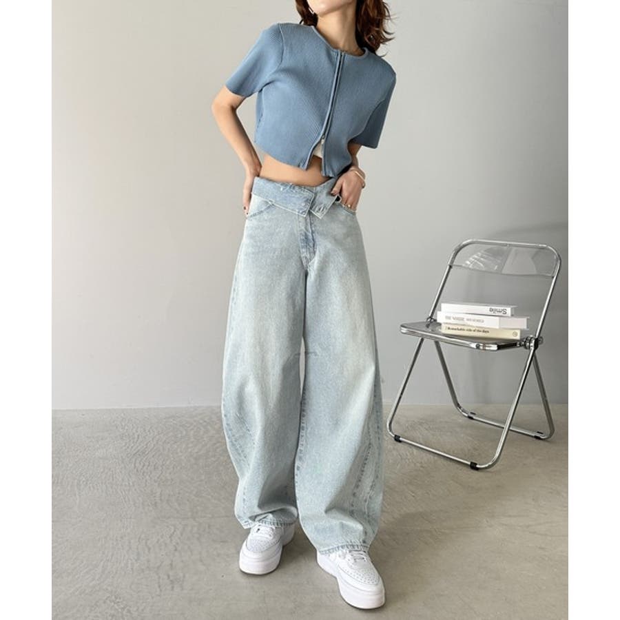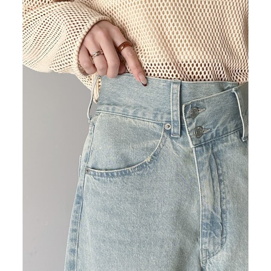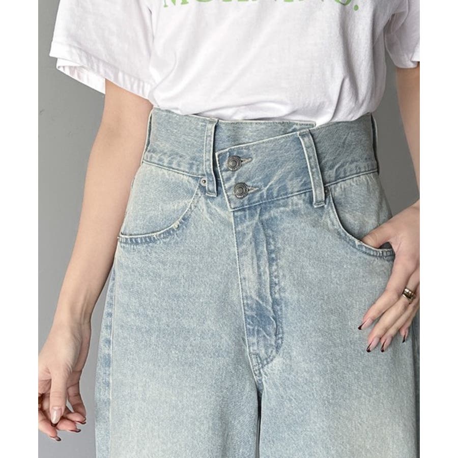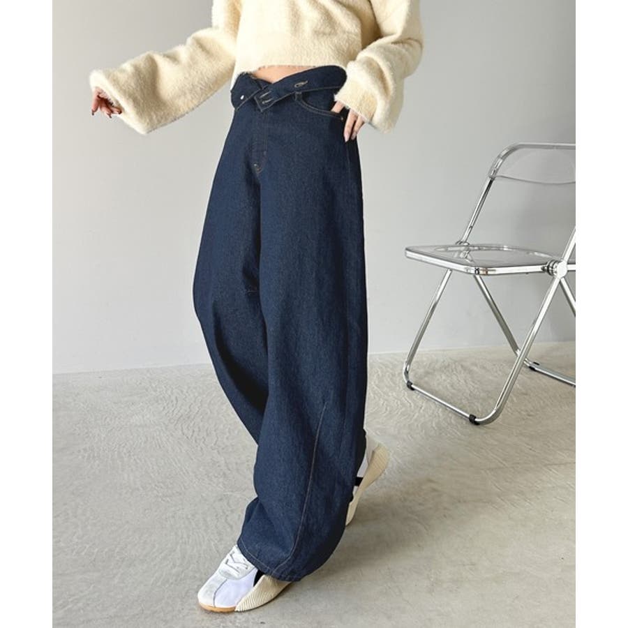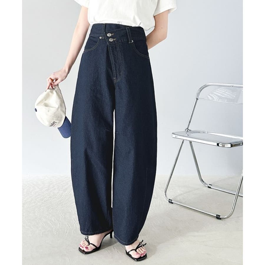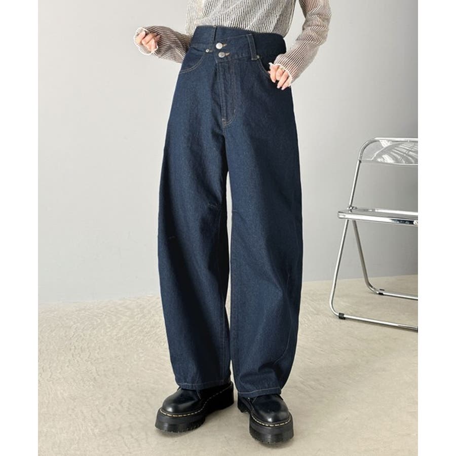 トレンド感抜群。コットン100%アシメウエストカーブデニムパンツ