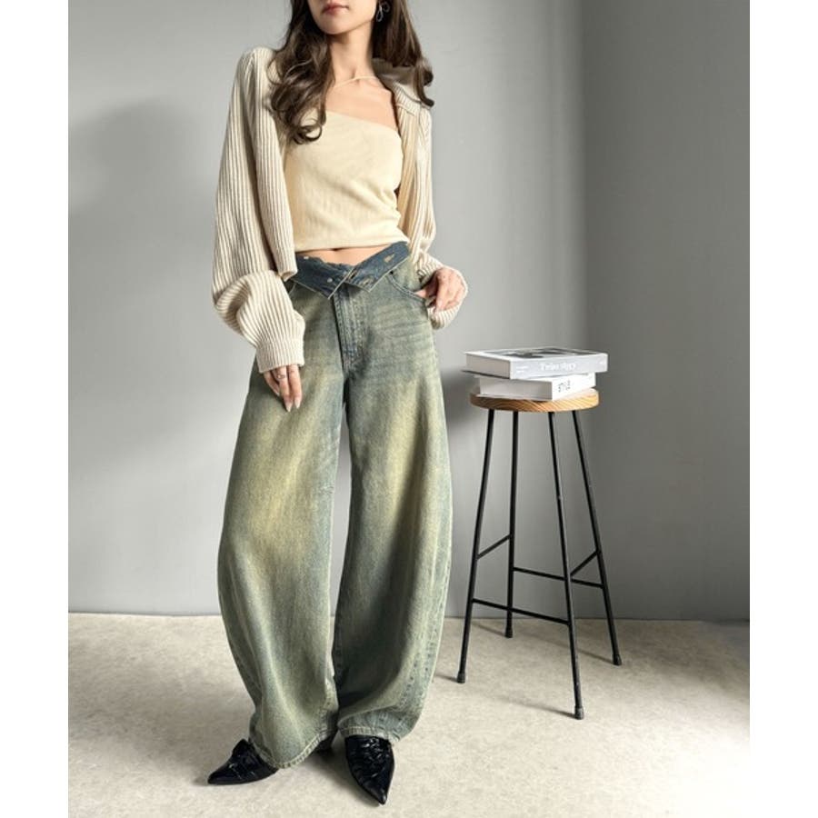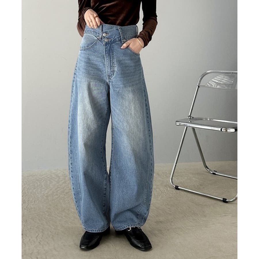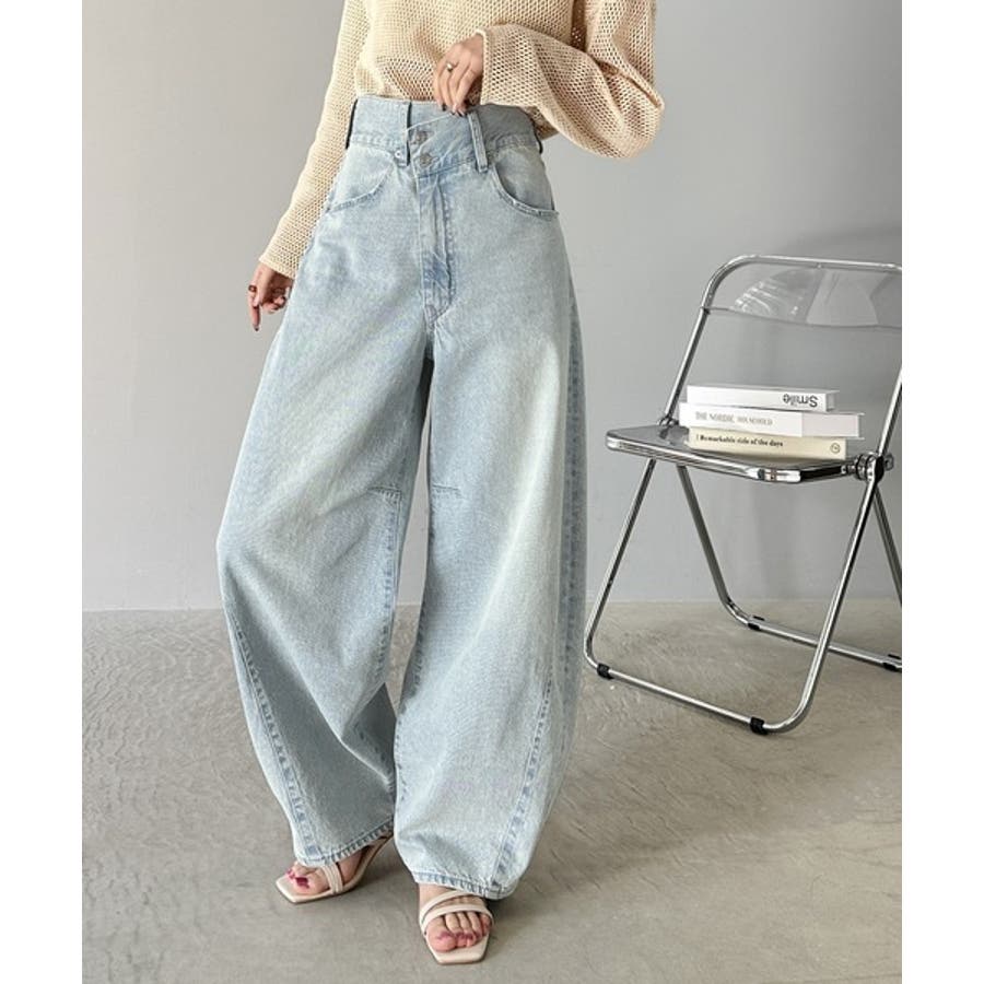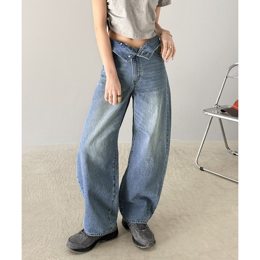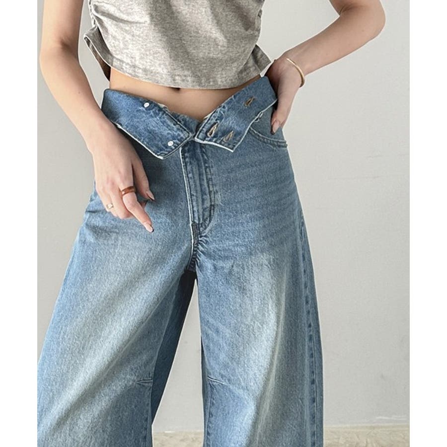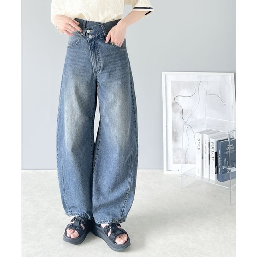 トレンド感抜群。コットン100%アシメウエストカーブデニムパンツ