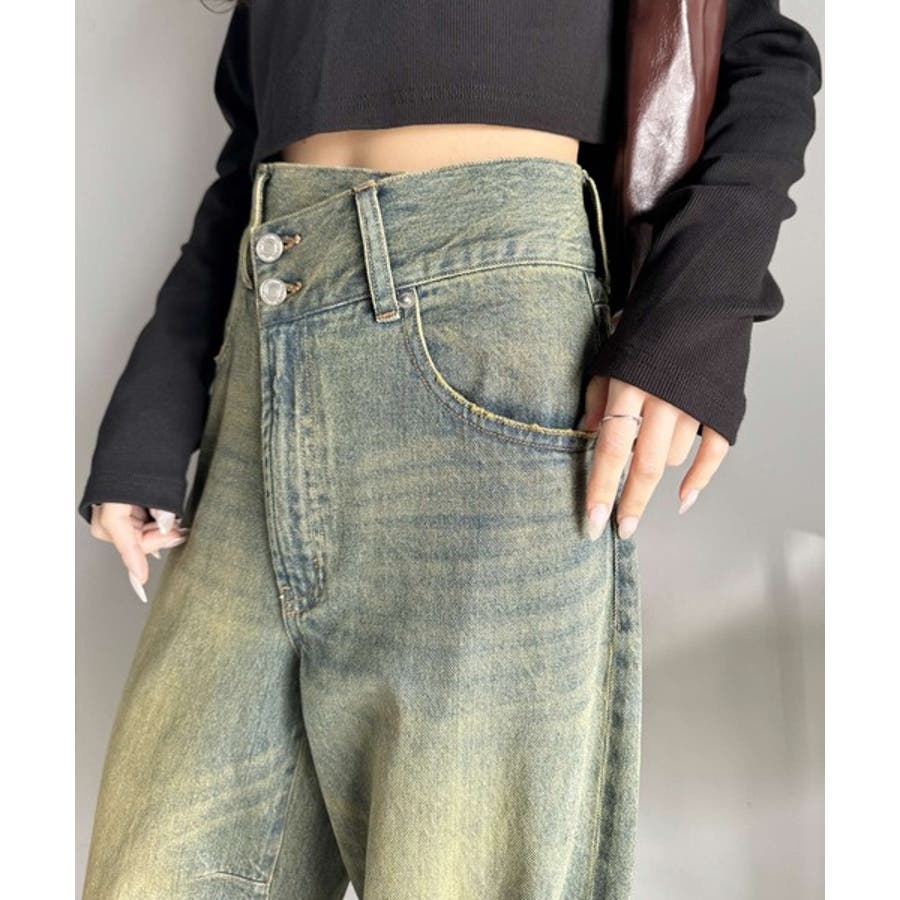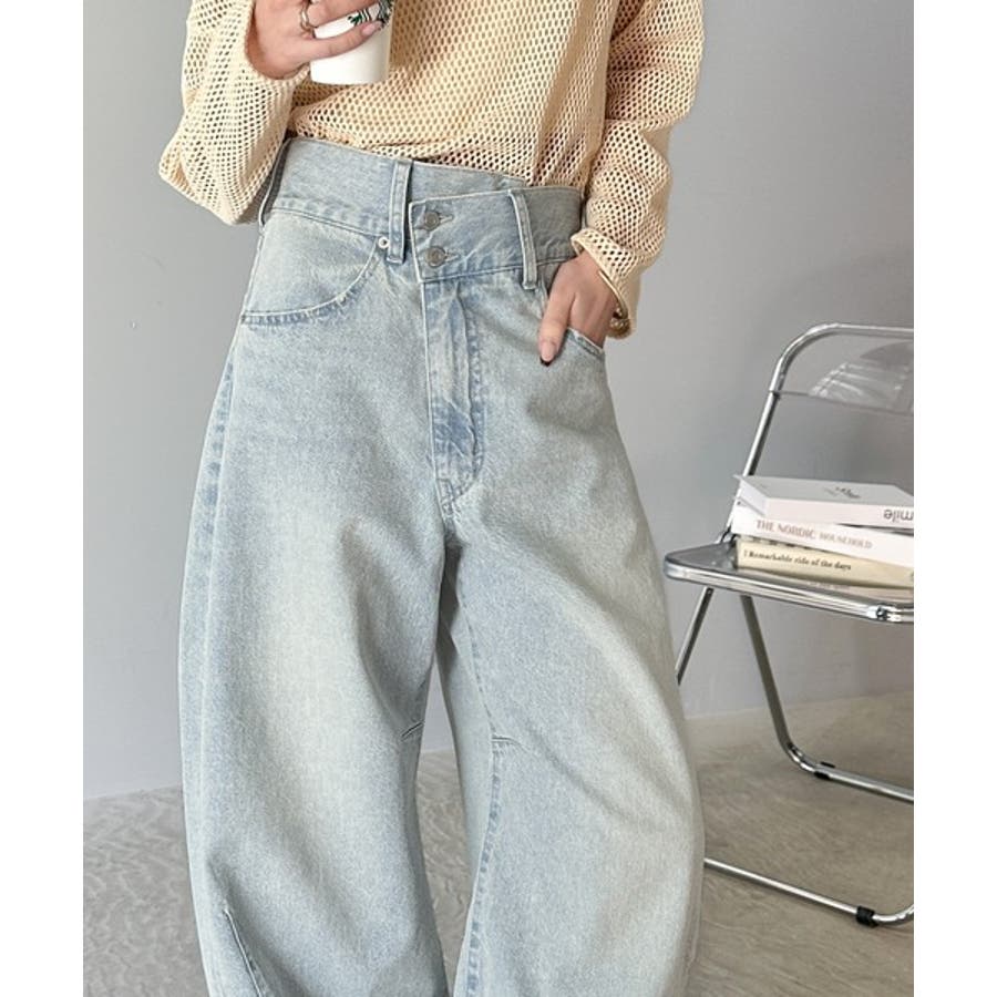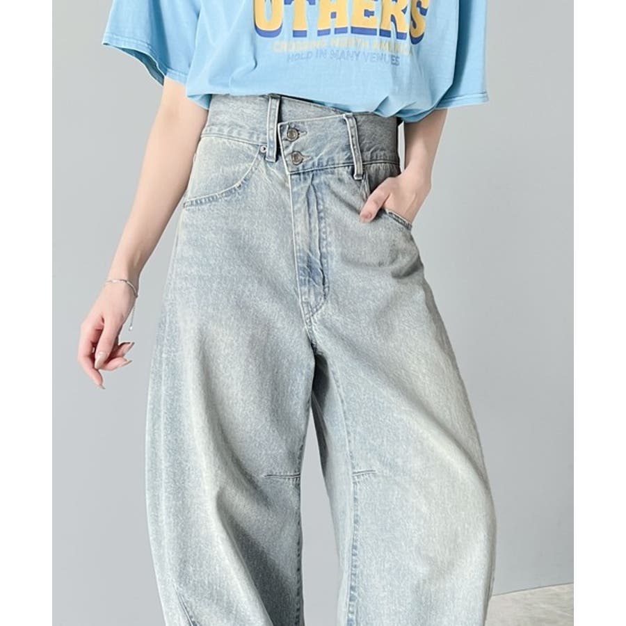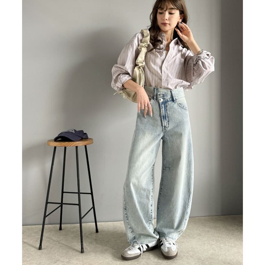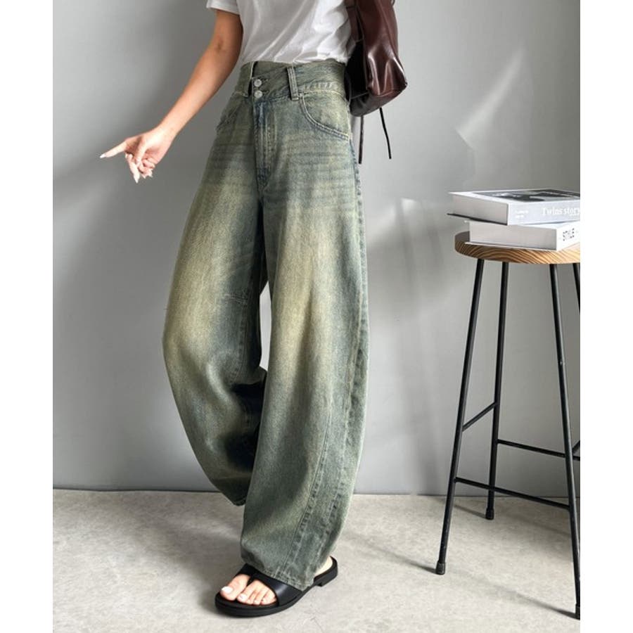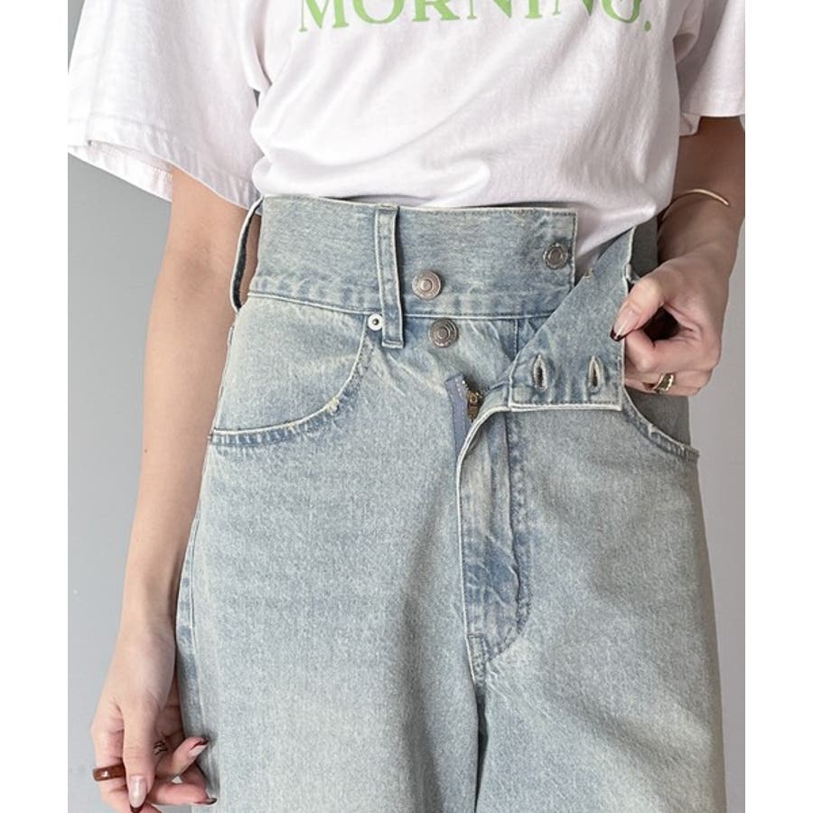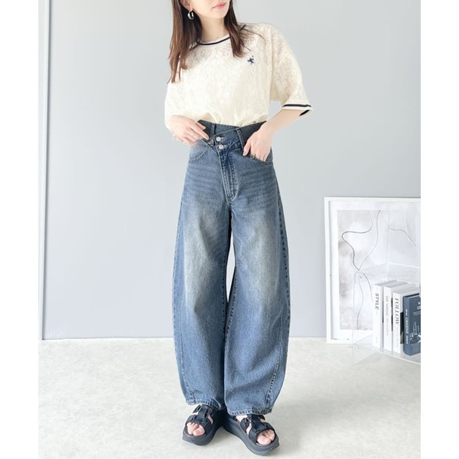 トレンド感抜群。コットン100%アシメウエストカーブデニムパンツ