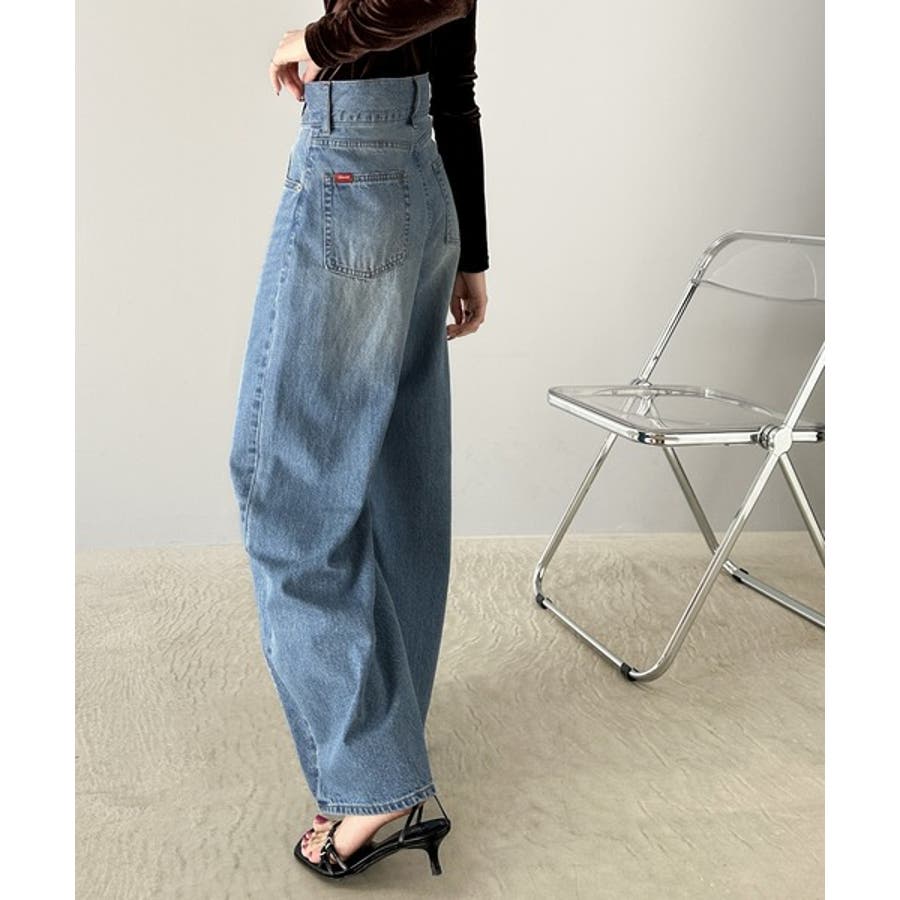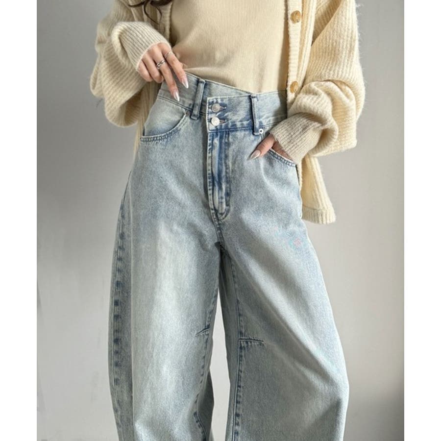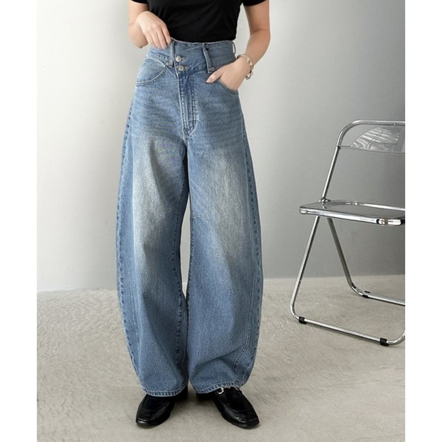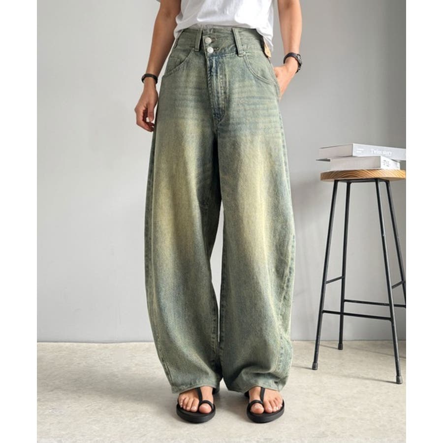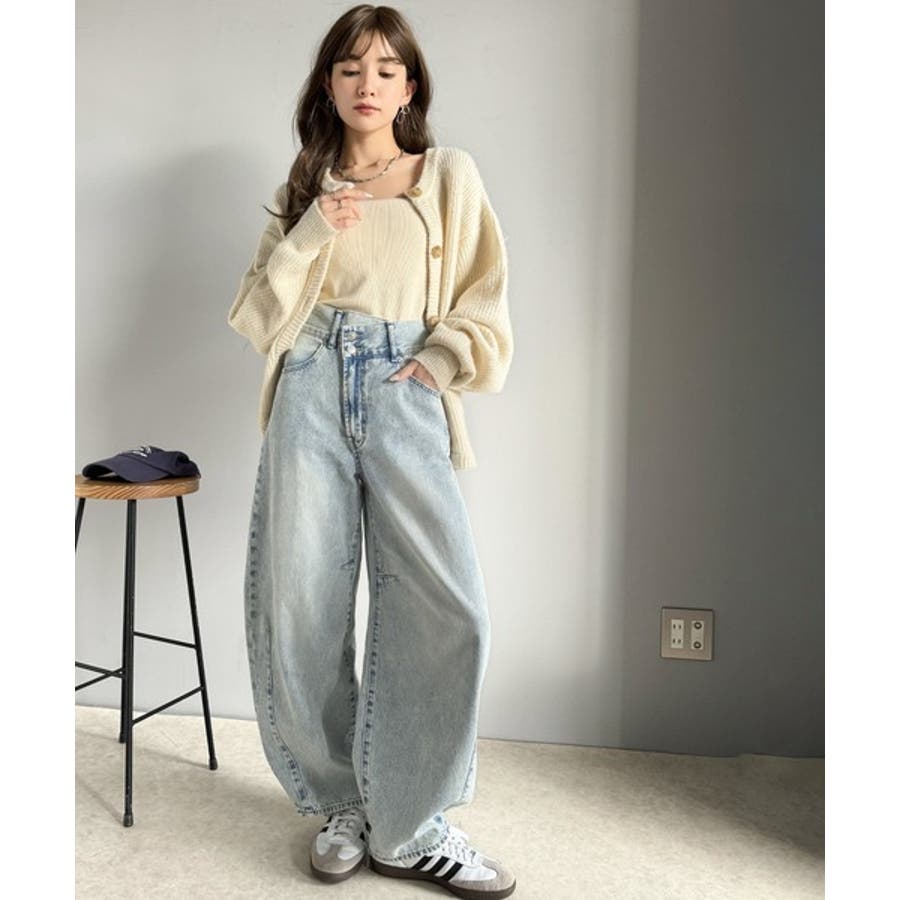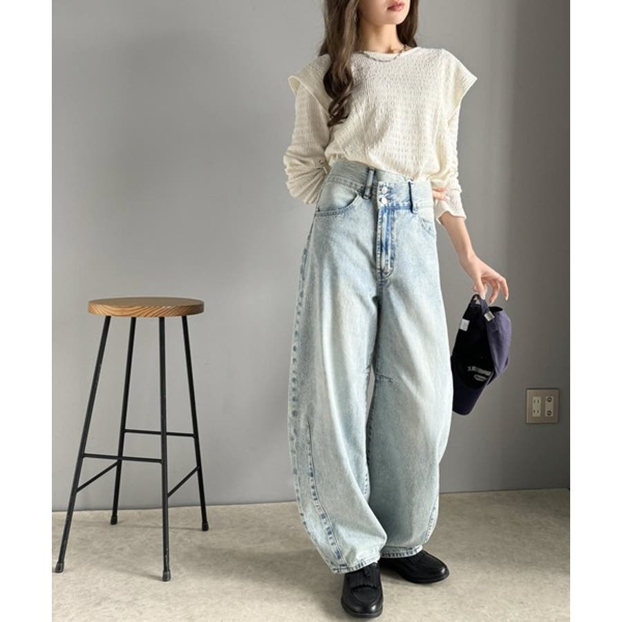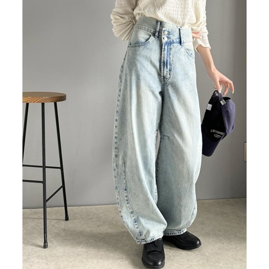 エッグパンツとも呼ばれるおしゃれ見え抜群のデニムパンツ。