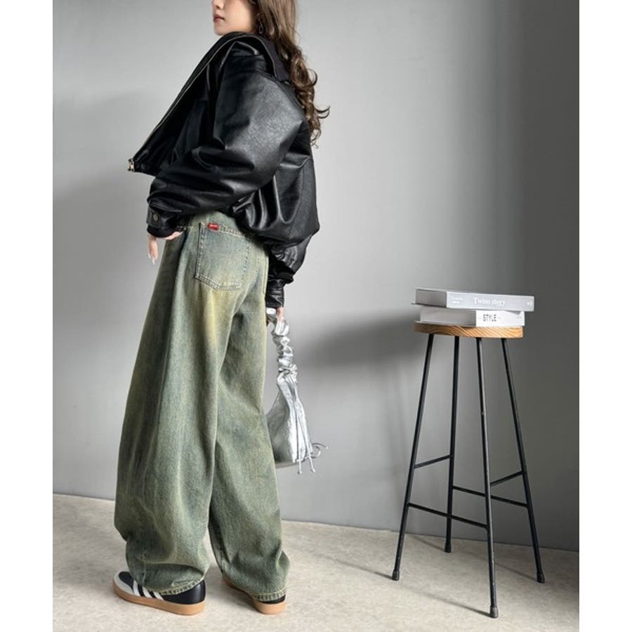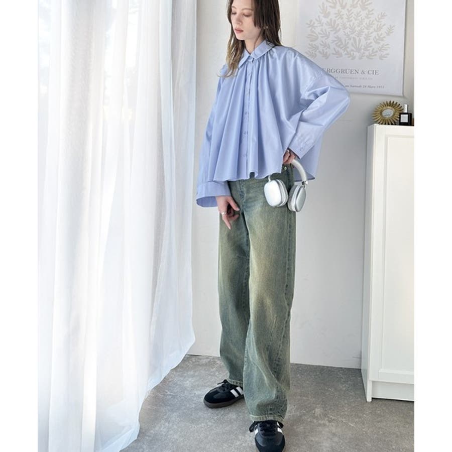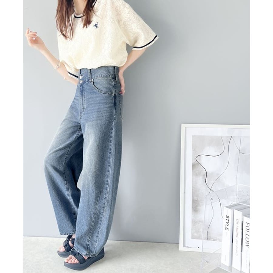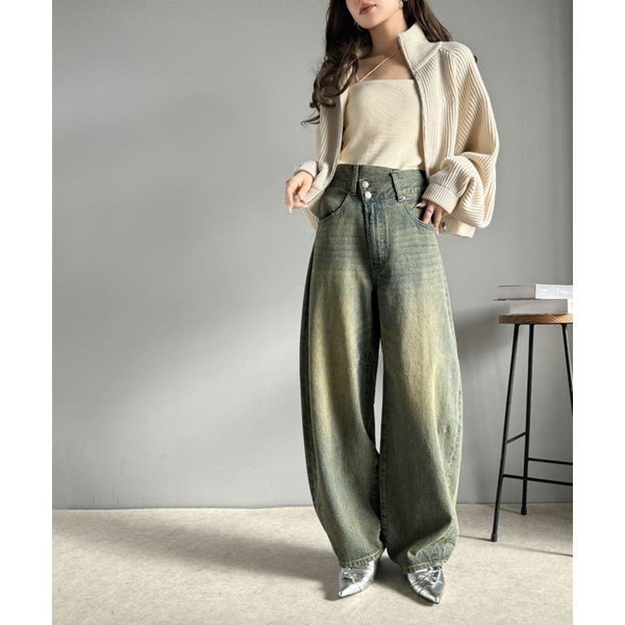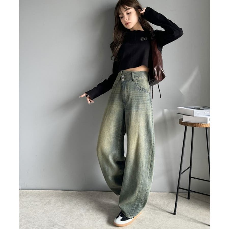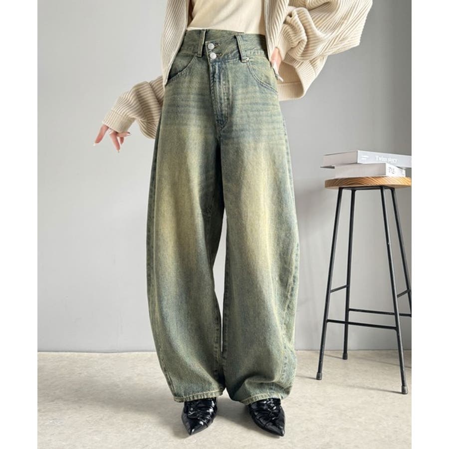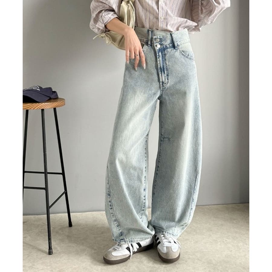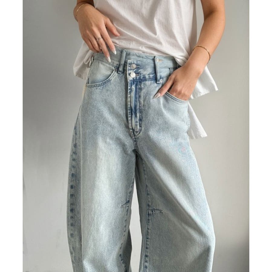 エッグパンツとも呼ばれるおしゃれ見え抜群のデニムパンツ。