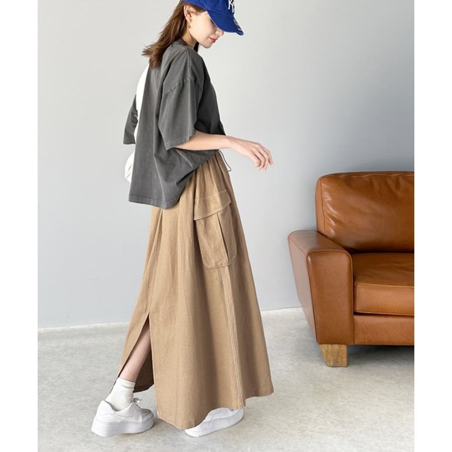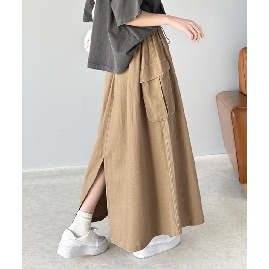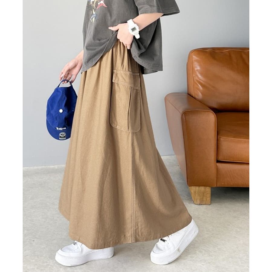 変形カーゴポケットがアクセントになったロング丈スカート。