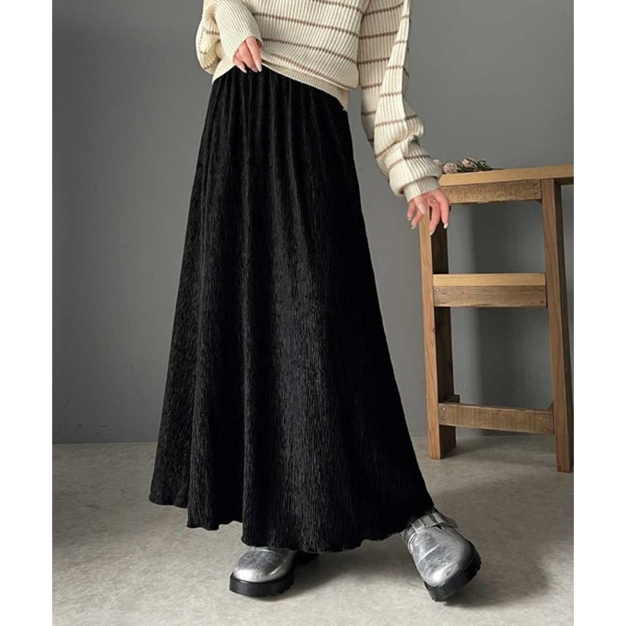 ラクな着心地なのに、スタイルアップも実現できる上品なベロアナロースカートです!