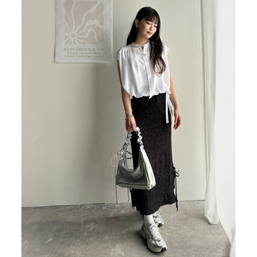 裾のリボンを絞って自在にニュアンス変化を楽しめるがポイント◎