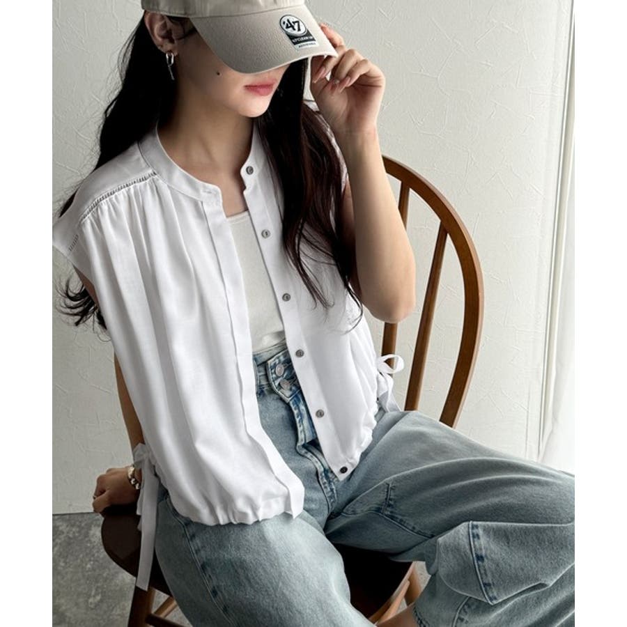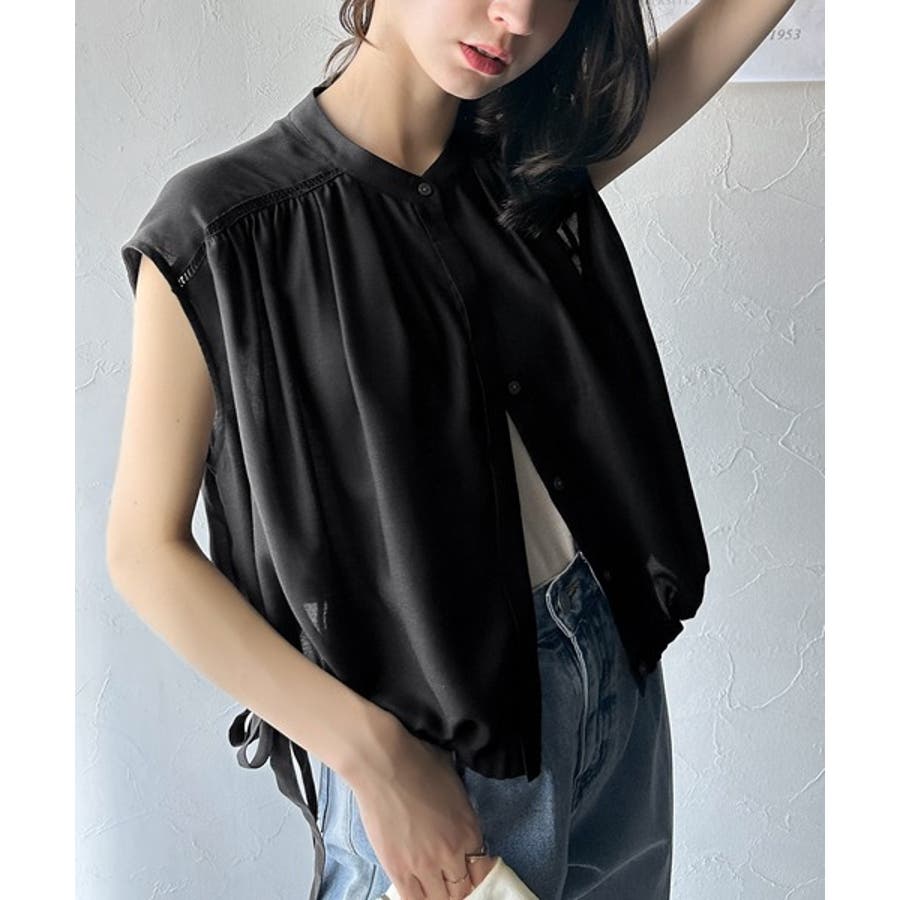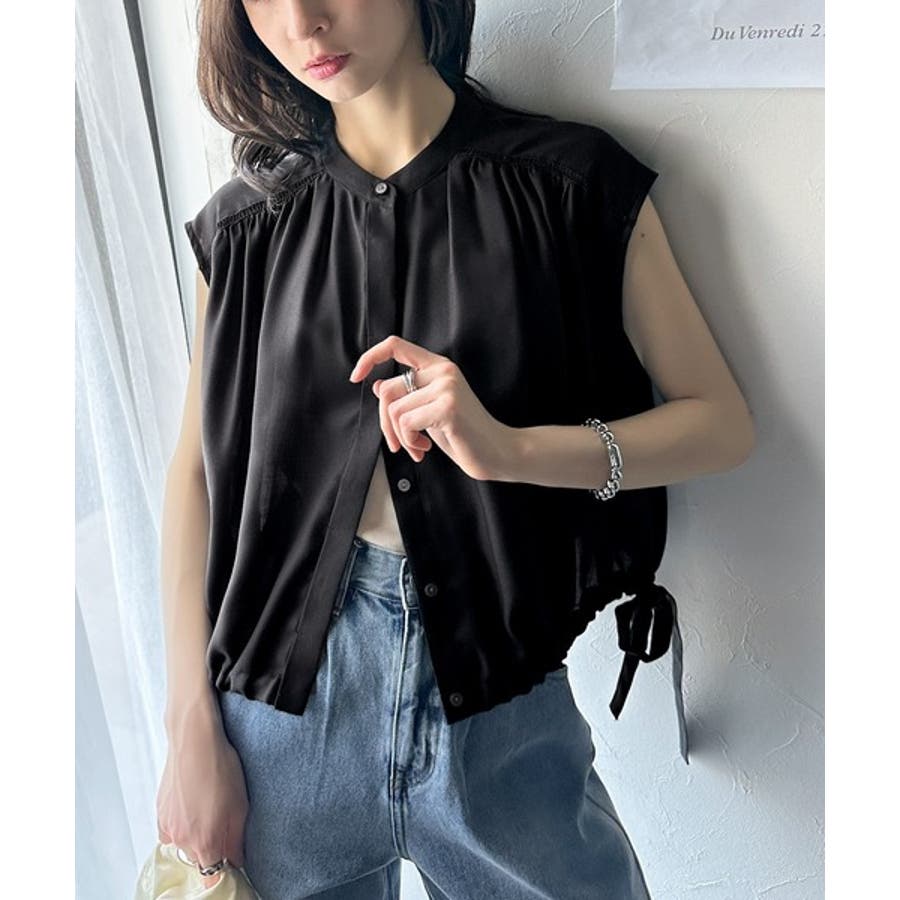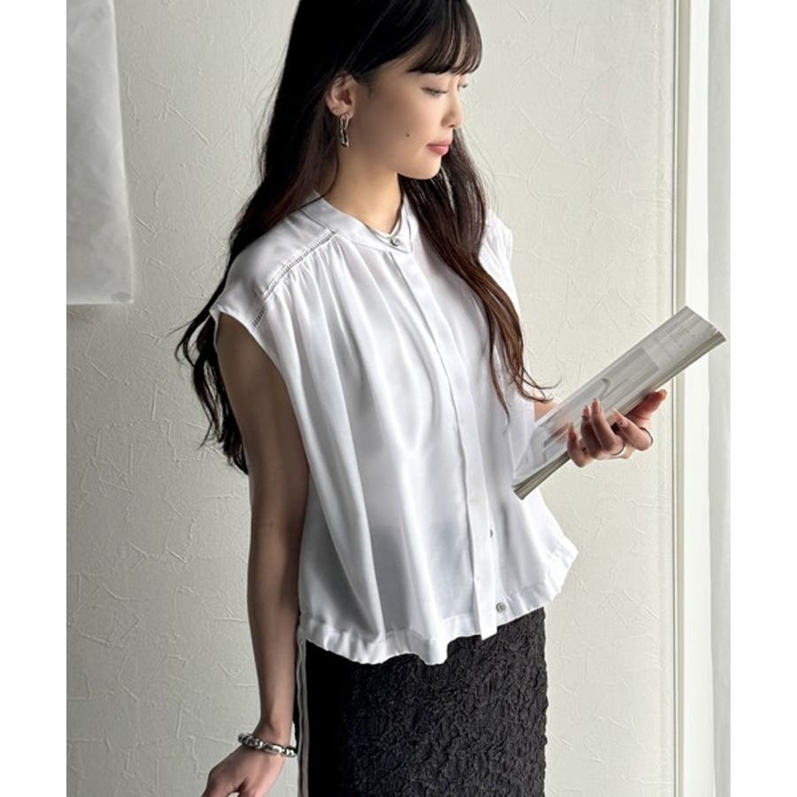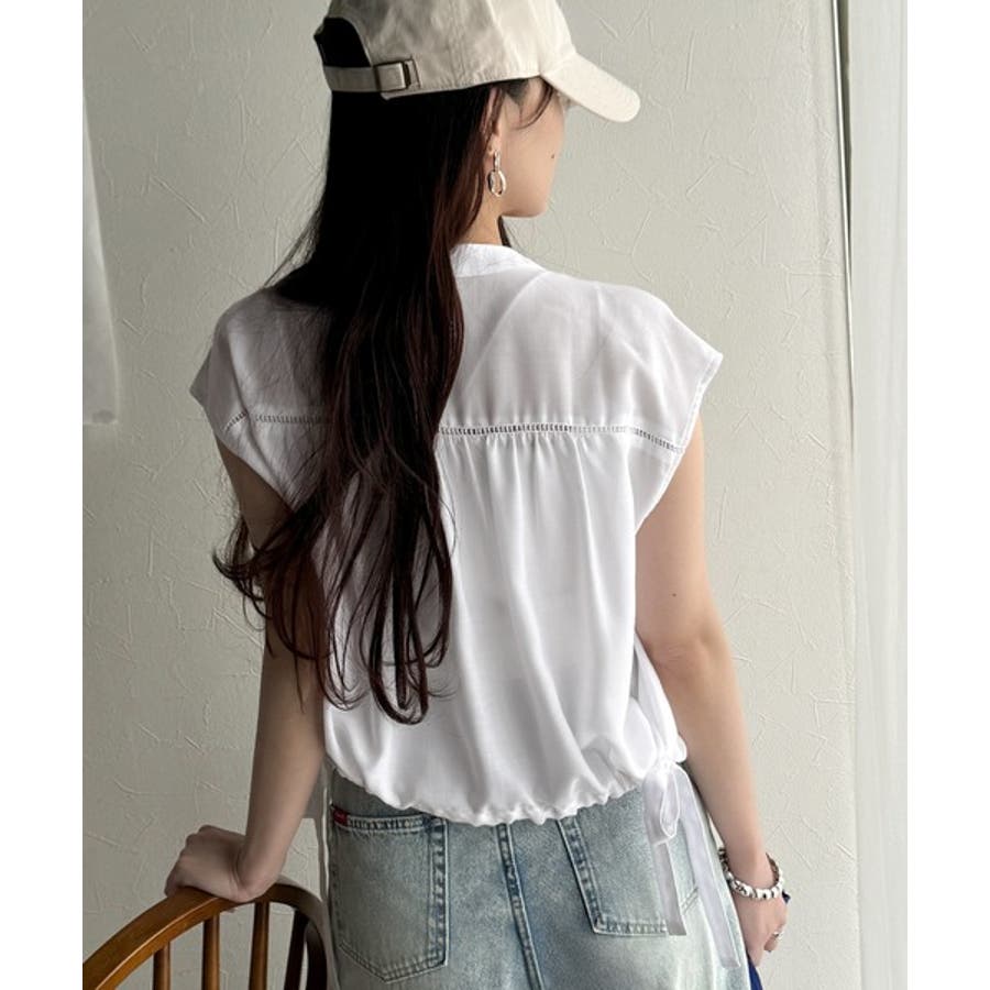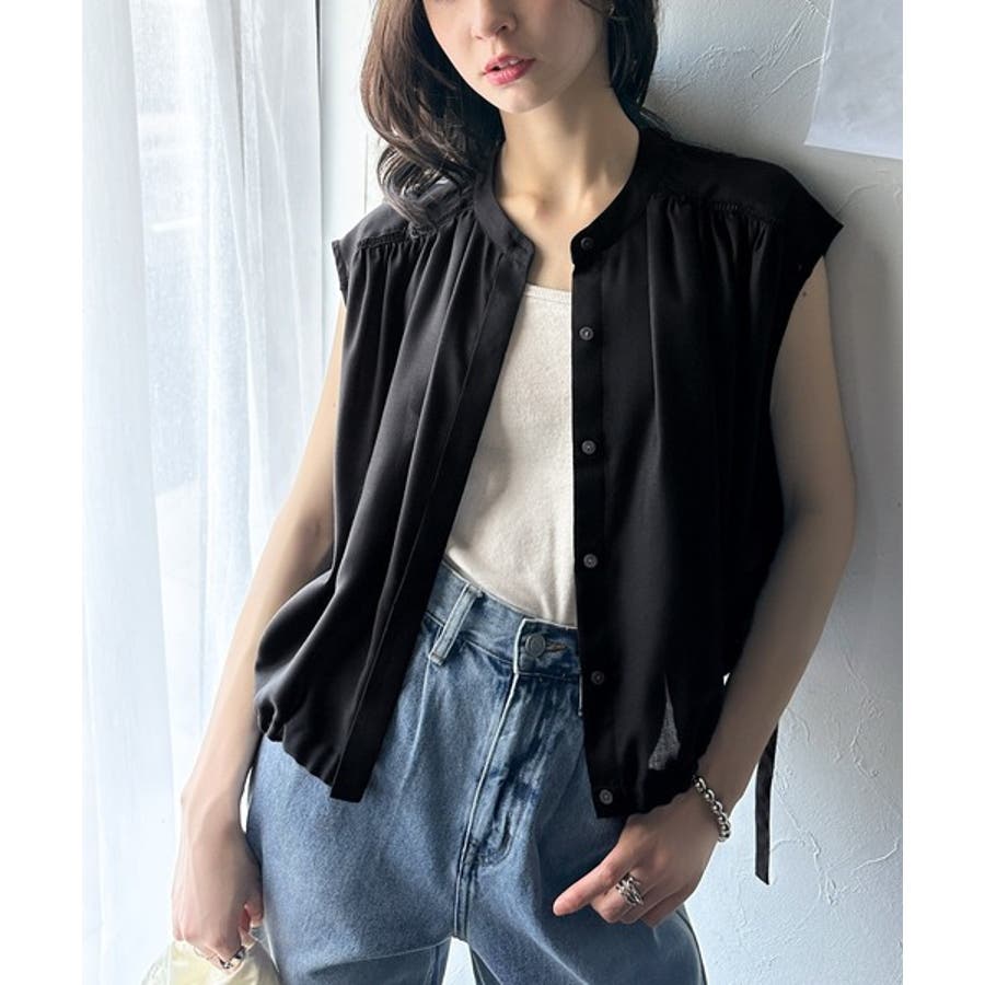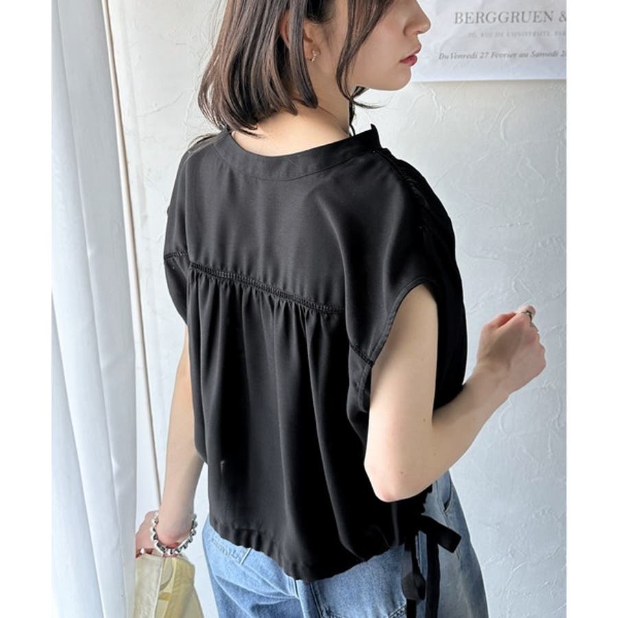 清楚感に大人の甘さをプラス。リボンヘムクロップドギャザーブラウス(ショート丈)