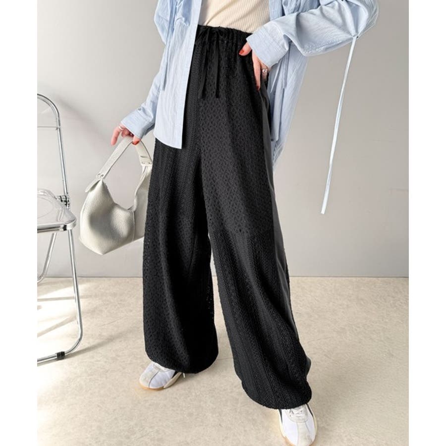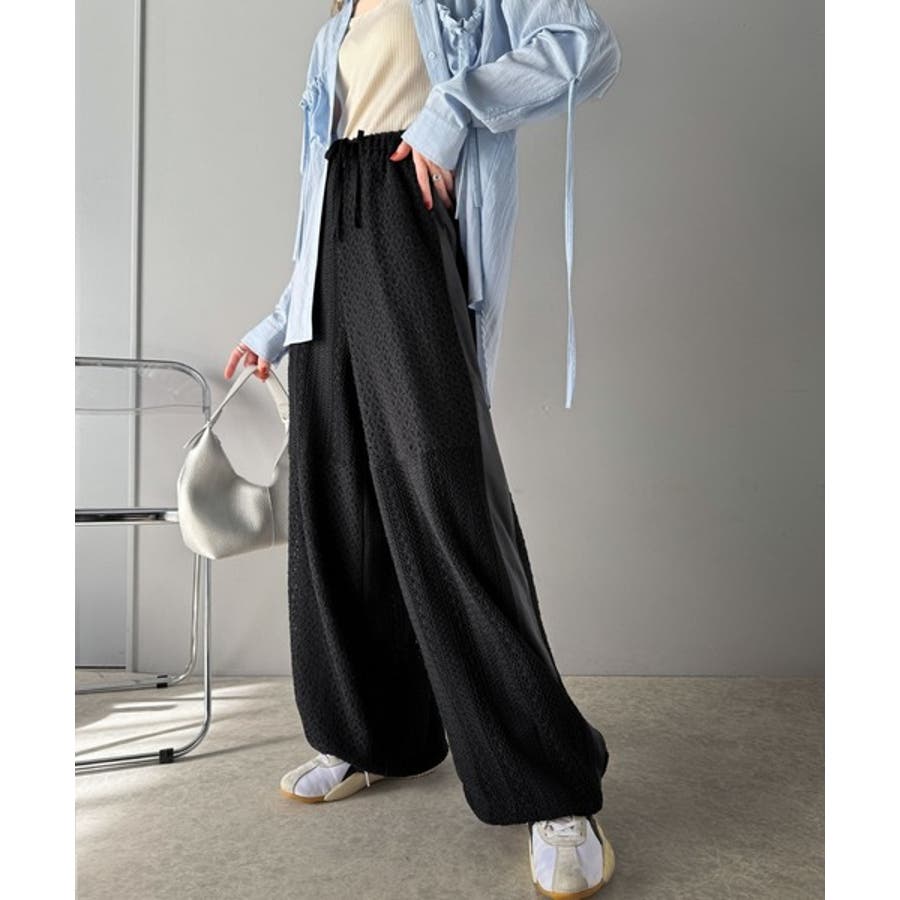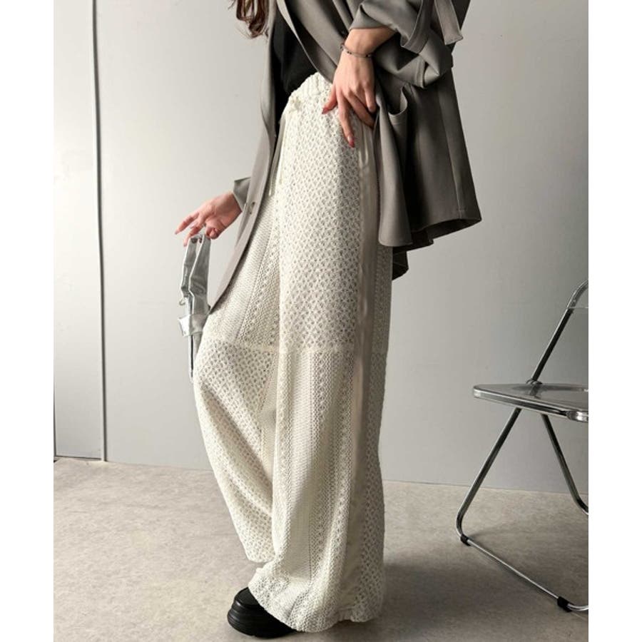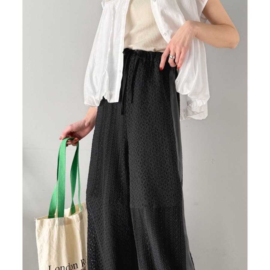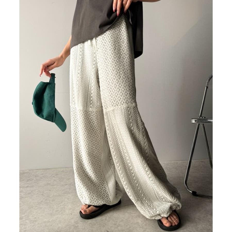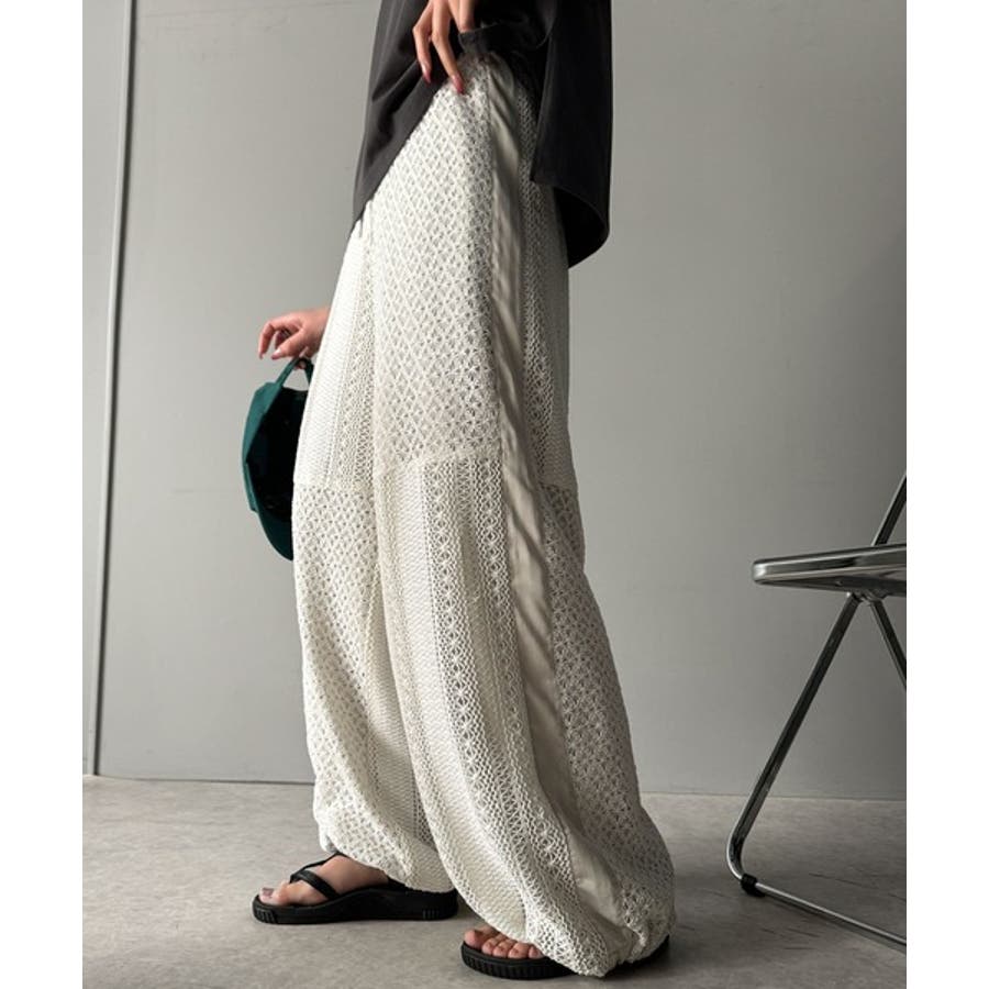 大人華やかリラクシー。レース切替パラシュートパンツ