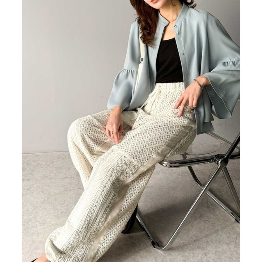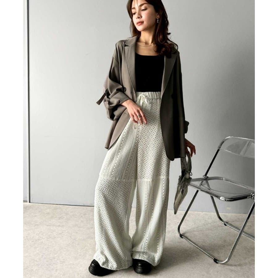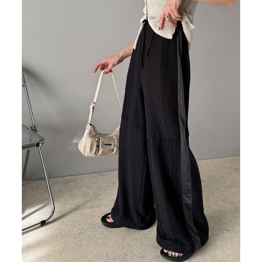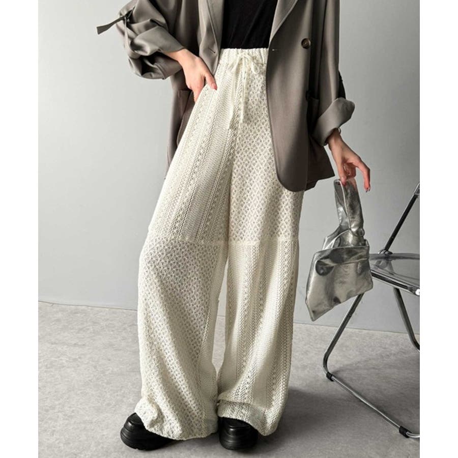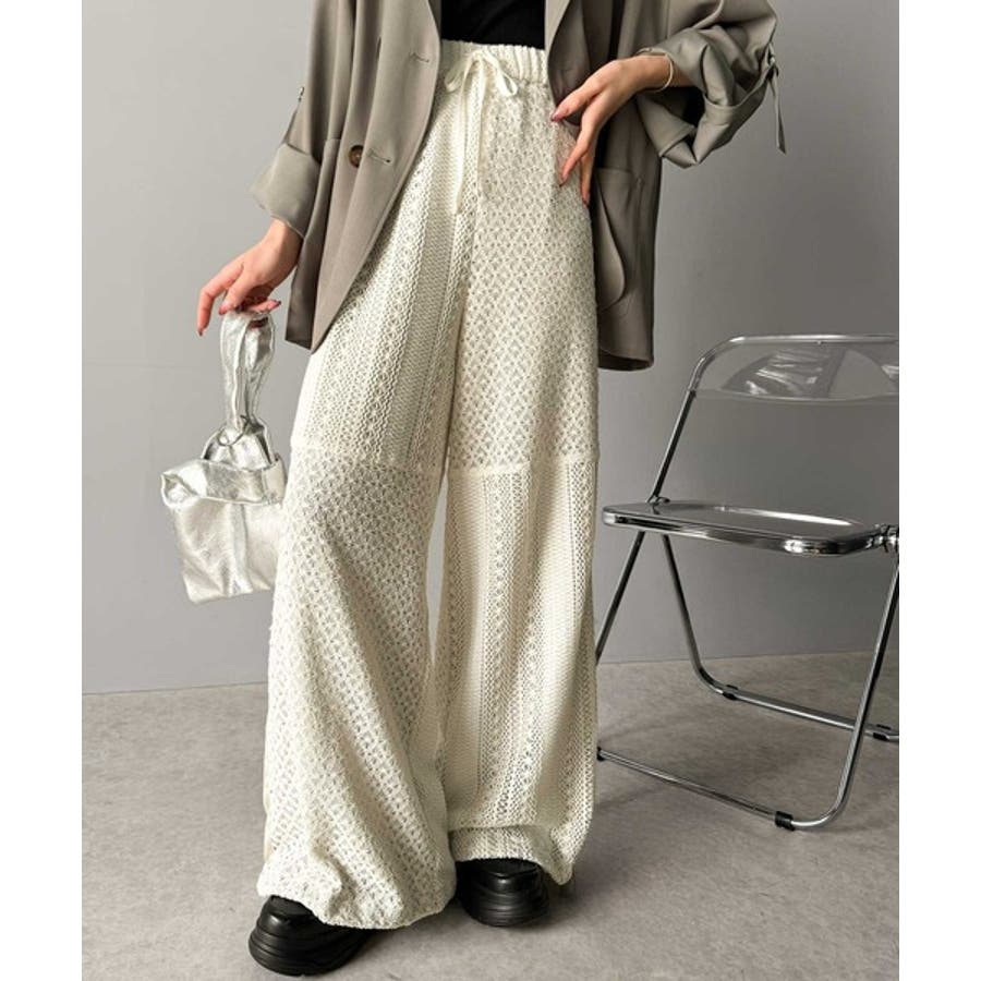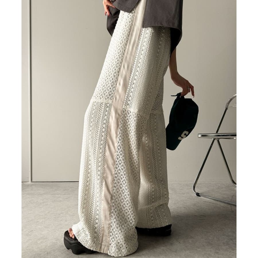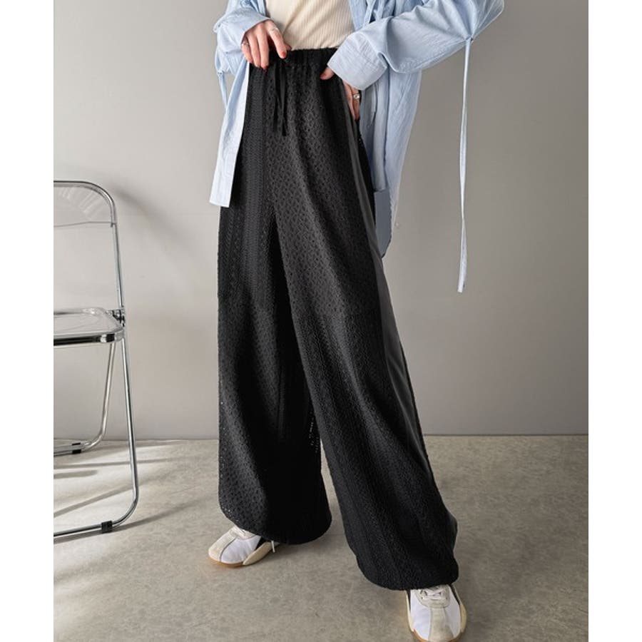 大人華やかリラクシー。レース切替パラシュートパンツ