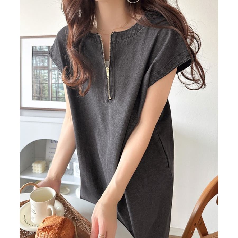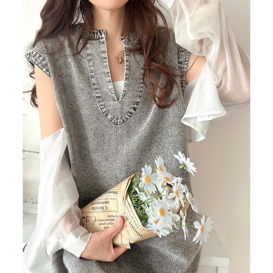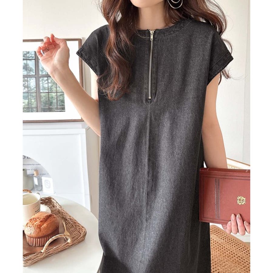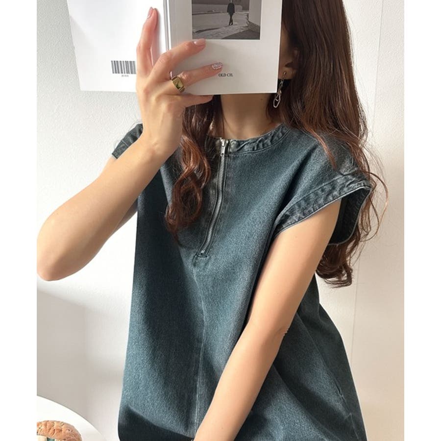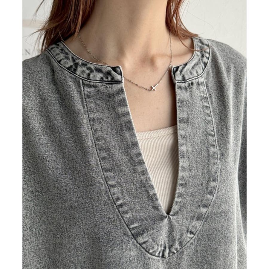 胸元が程よく空いているので、デコルテがさりげなく見えて良い感じです。ジーンズ地だけど、しっかりした素材で色も落ち着いているので、カジュアルになりすぎない。