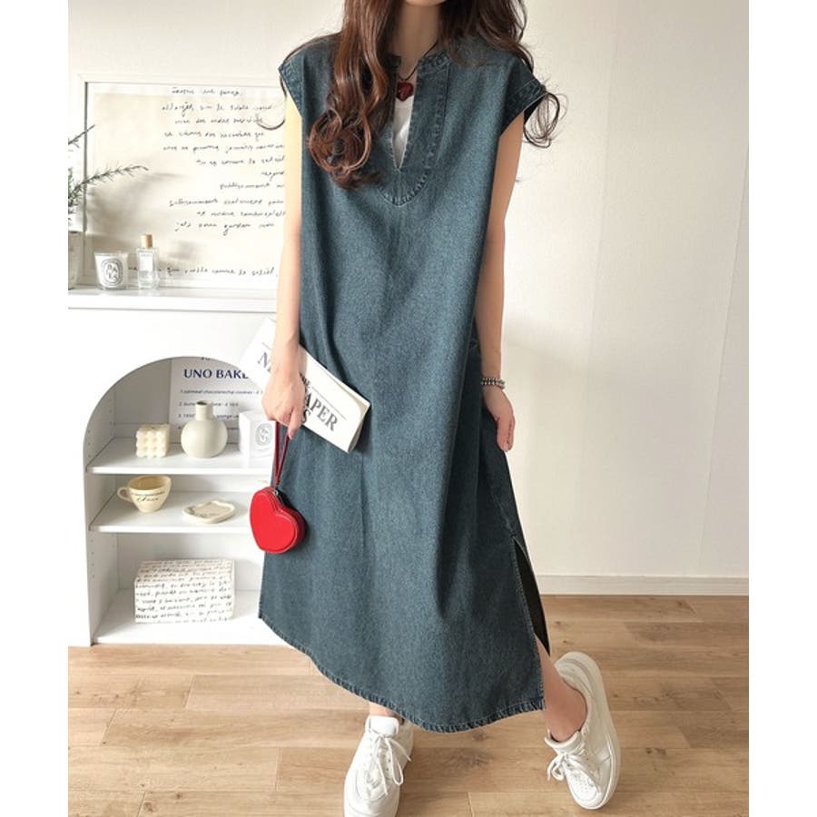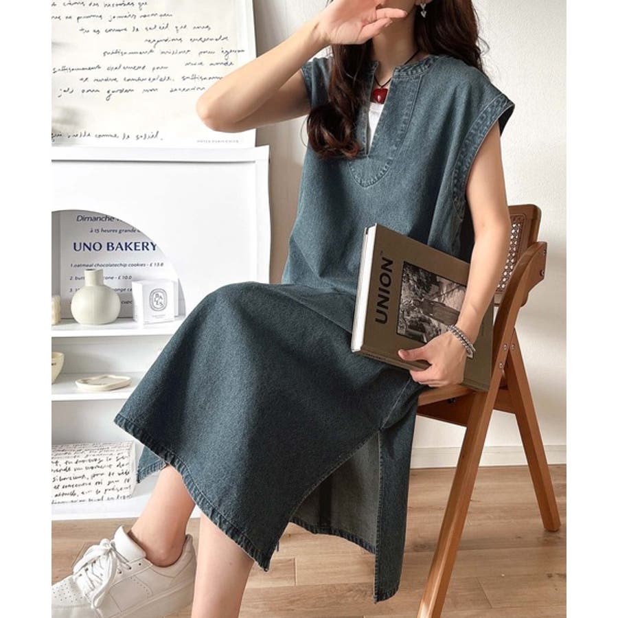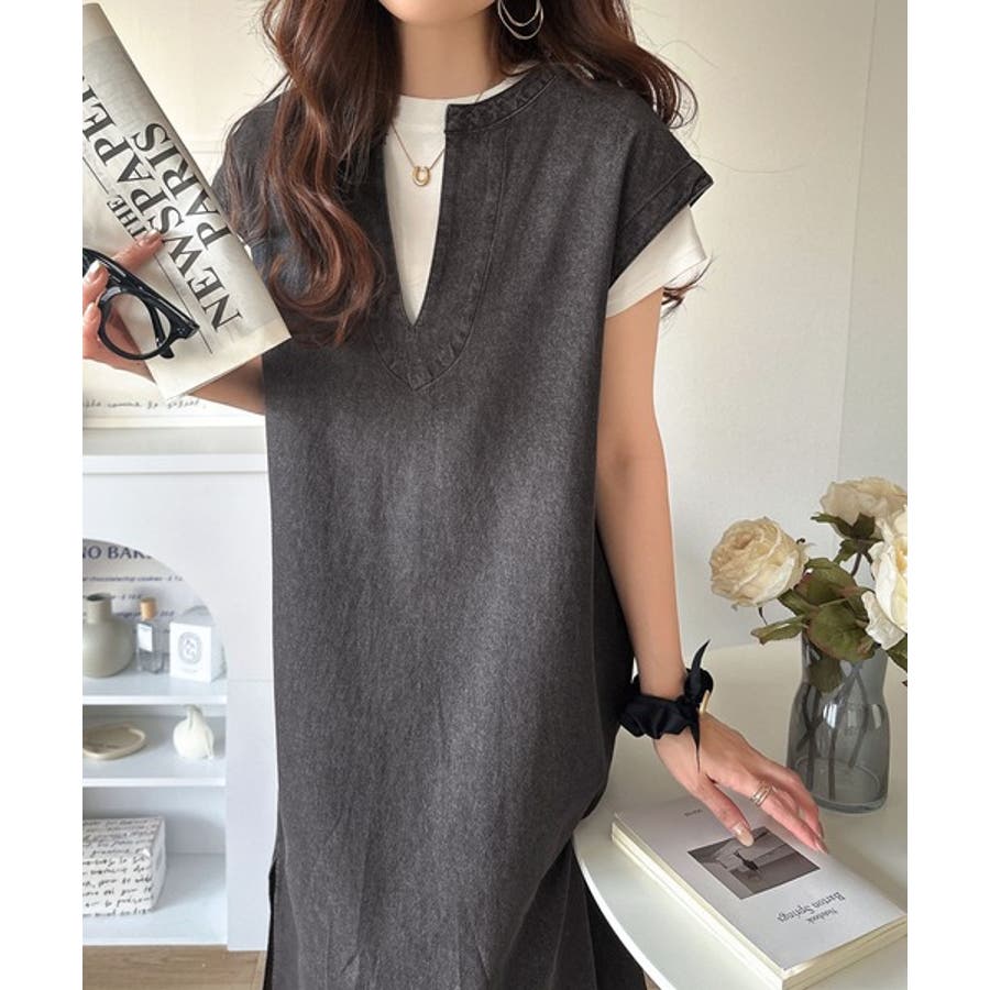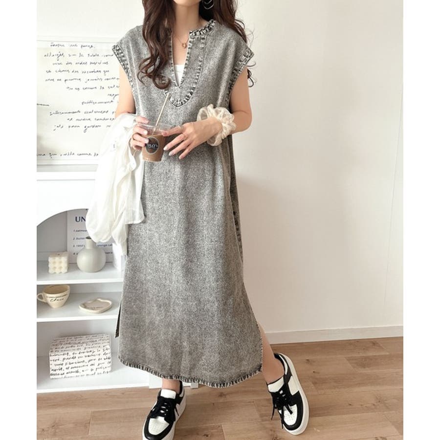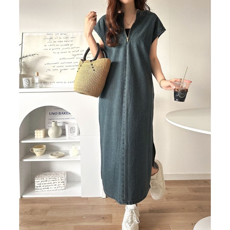 AWに登場した大人気商品、カフタン調サイドスリット圧縮ニットワンピース「ce0940074」のデニムバージョン。