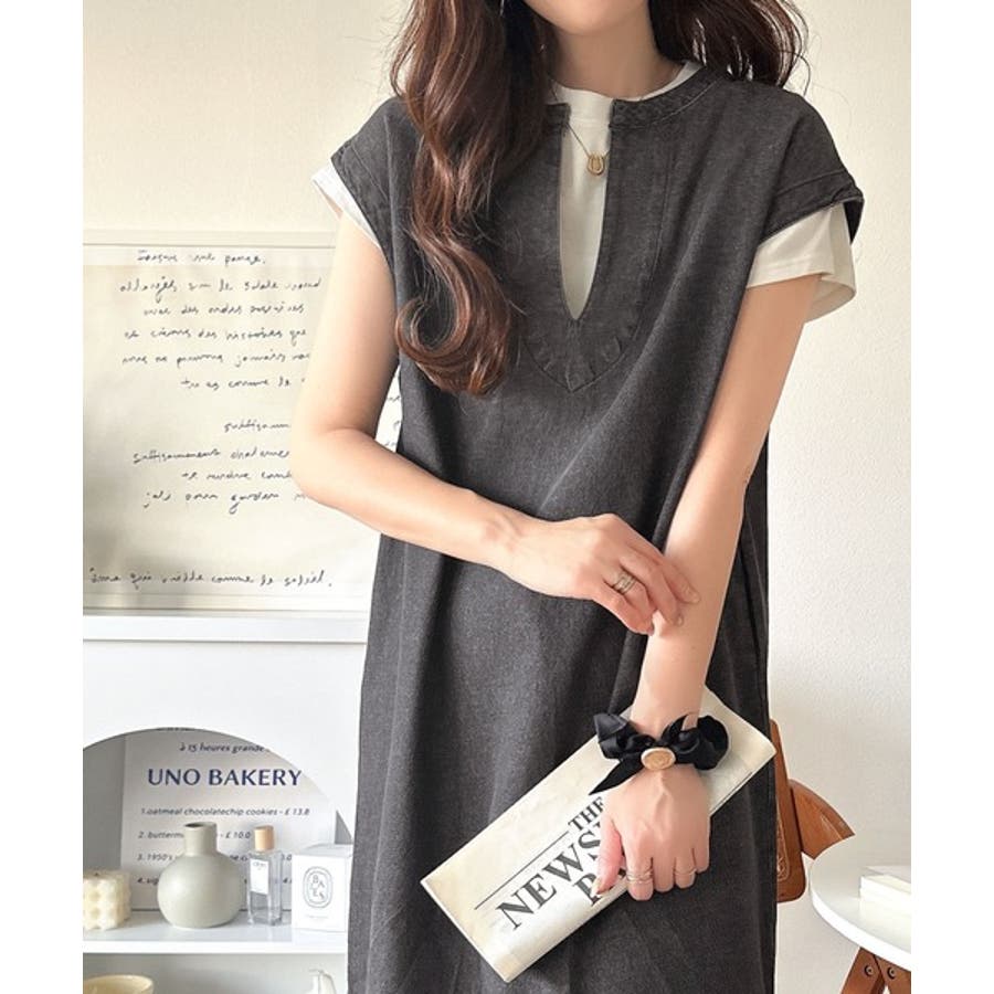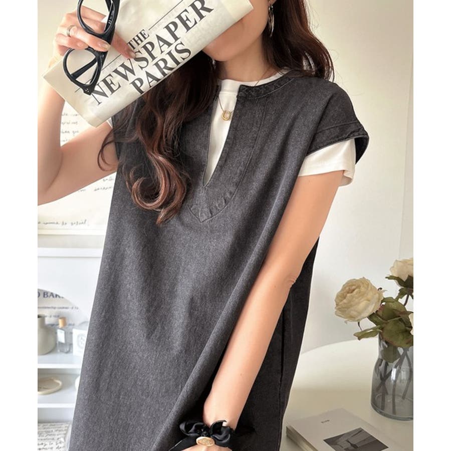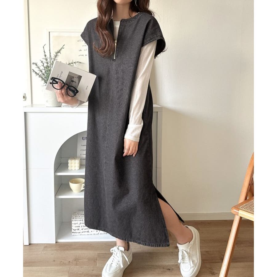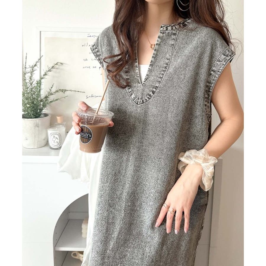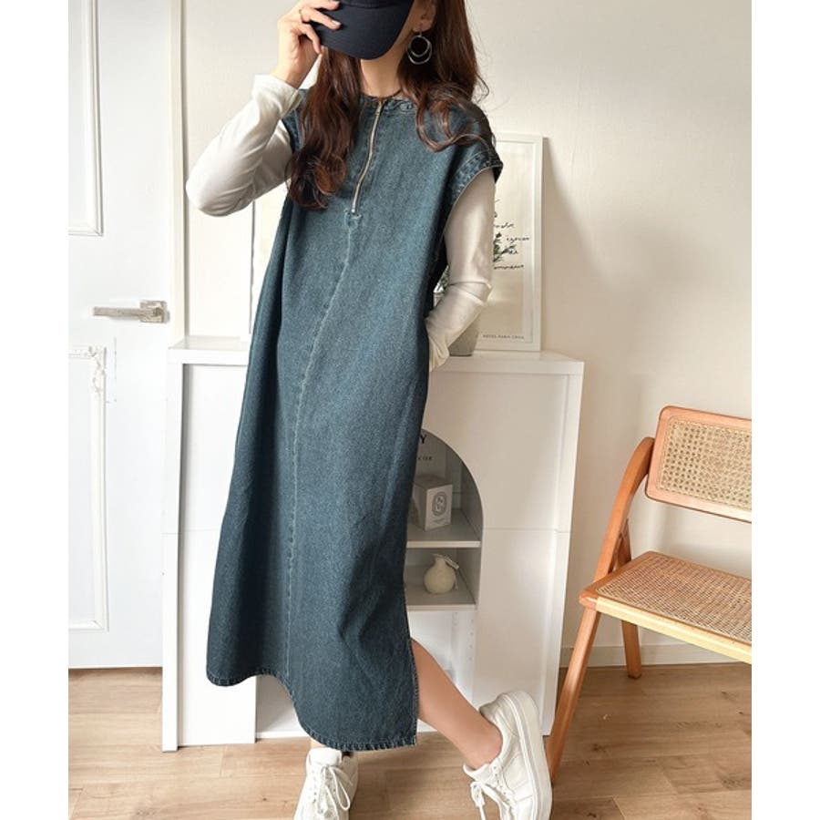 AWに登場した大人気商品、カフタン調サイドスリット圧縮ニットワンピース「ce0940074」のデニムバージョン。