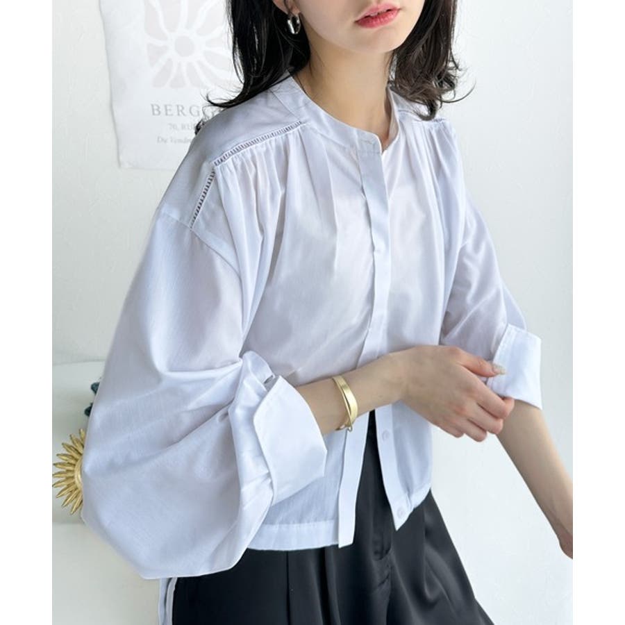 長めでボリュームたっぷりのギャザースリーブがエレガントさをプラスし、